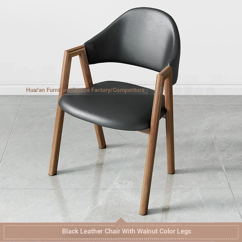 深灰色の皮の椅子+胡桃色の椅子フレーム