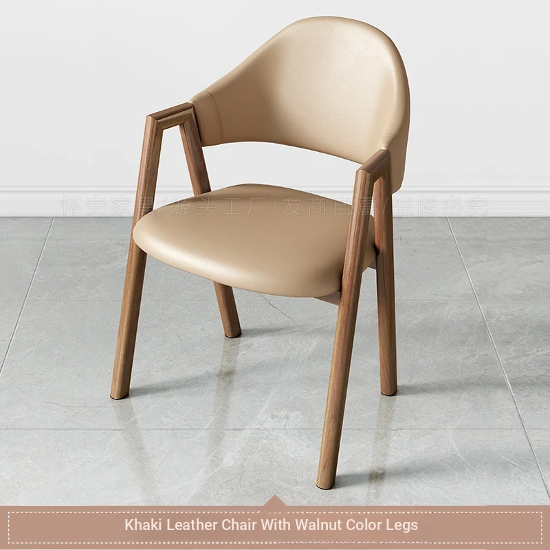 カーキ色の皮の椅子+胡桃色の椅子フレーム