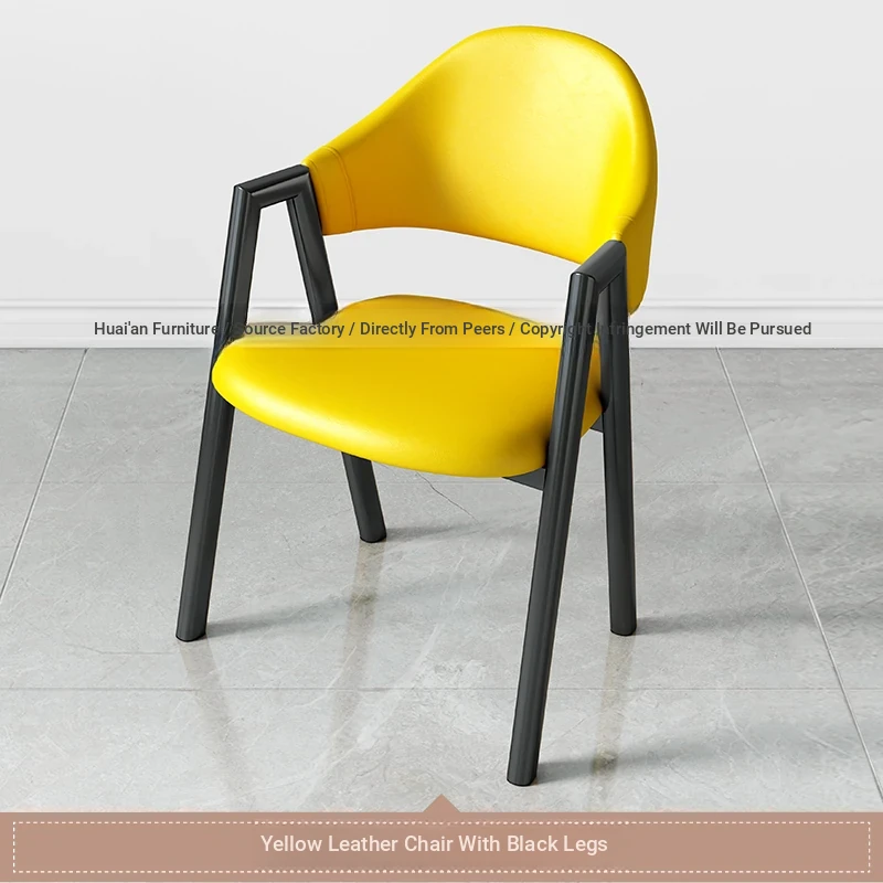 黄色の皮+黒のファブリック椅子フレーム