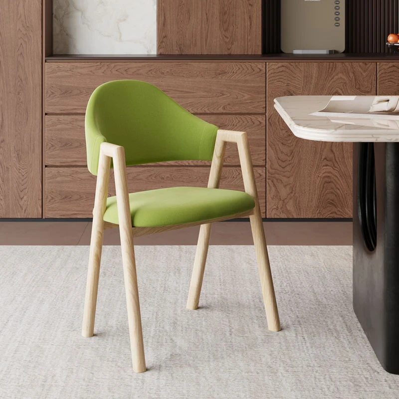 カーキ色の布の椅子+胡桃色の椅子フレーム