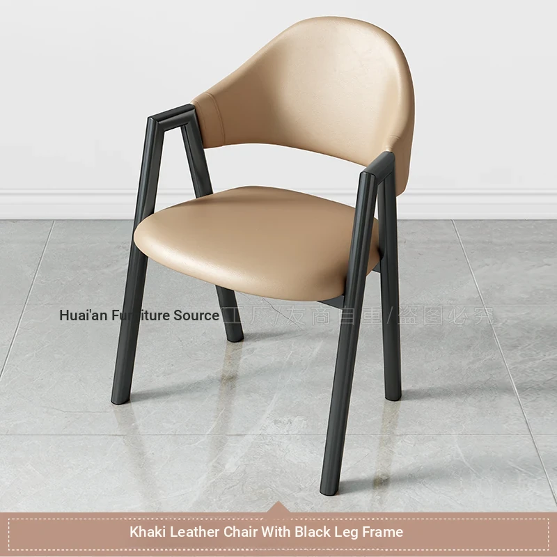 カーキ色の皮の椅子+黒のファブリック椅子フレーム