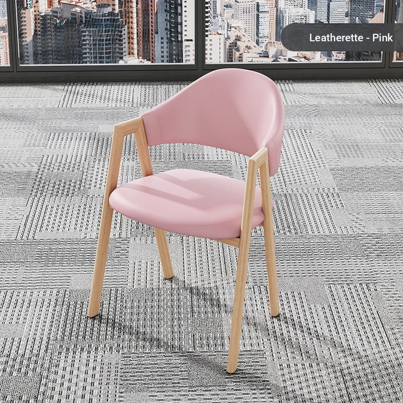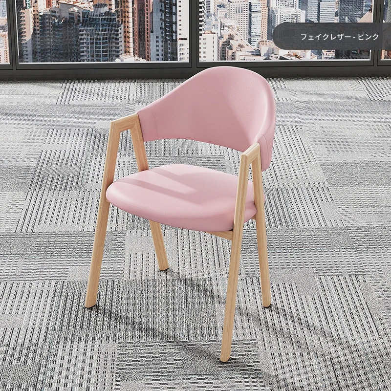 ピンク色の皮の椅子+木目調の椅子フレーム