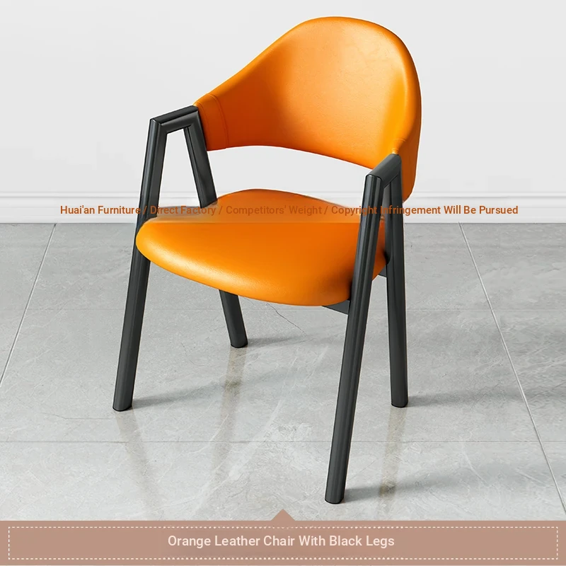 オレンジ色の皮の椅子+黒のファブリック椅子フレーム