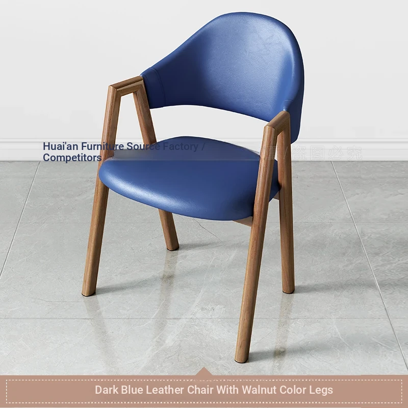 深青色の皮の椅子+胡桃色の椅子フレーム