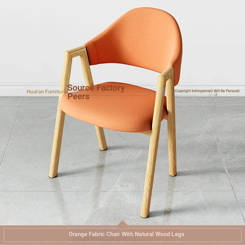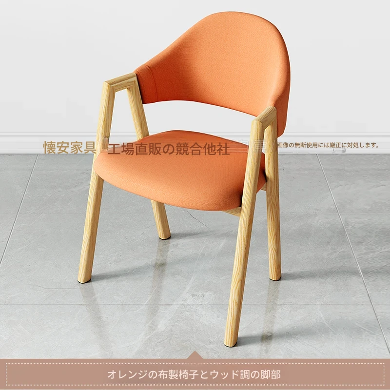オレンジ色の布の椅子+木目調の椅子フレーム
