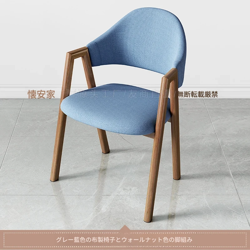 浅青色の布の椅子+胡桃色の椅子フレーム