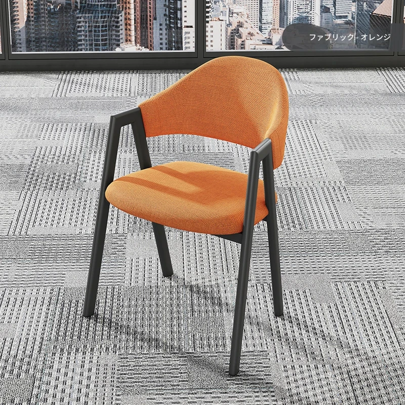 オレンジ色の布の椅子+黒のファブリック椅子フレーム
