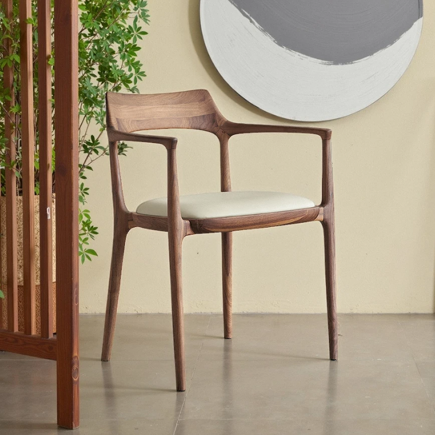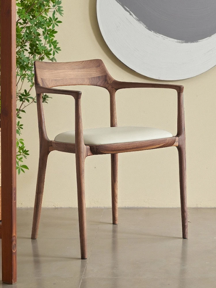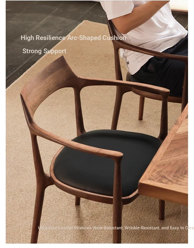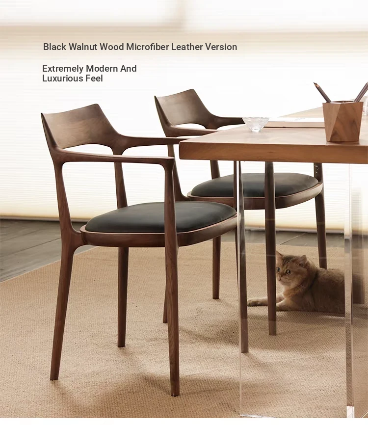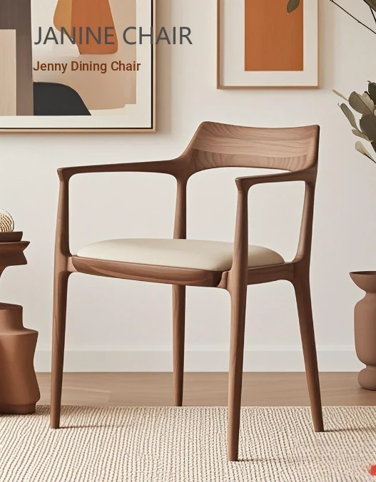 Modern Minimalist Jennie Dining Chair in North American Black Walnut - Stylish Solid Wood Armchair with Backrest, Perfect for Home and Nordic Decor