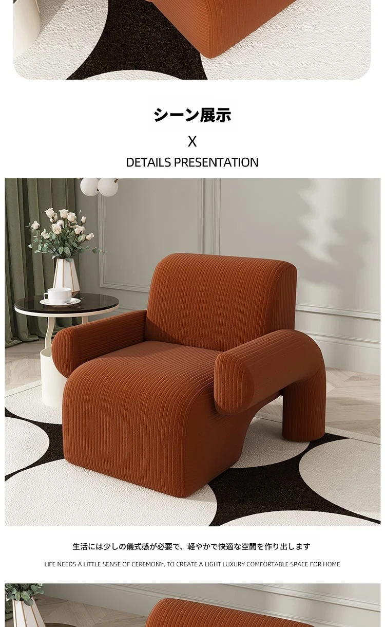 モダンなライトラグジュアリー リビング用 バルコニー用 ラウンジチェア おしゃれな小型デザイン ソファ 椅子 一人掛け 機能的で快適、狭いスペースにもぴったりなクリエイティブデザイン!