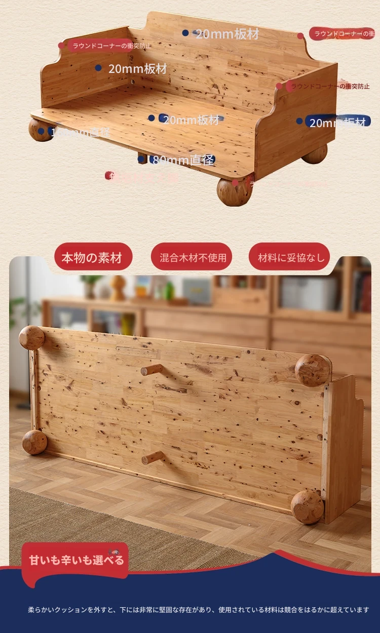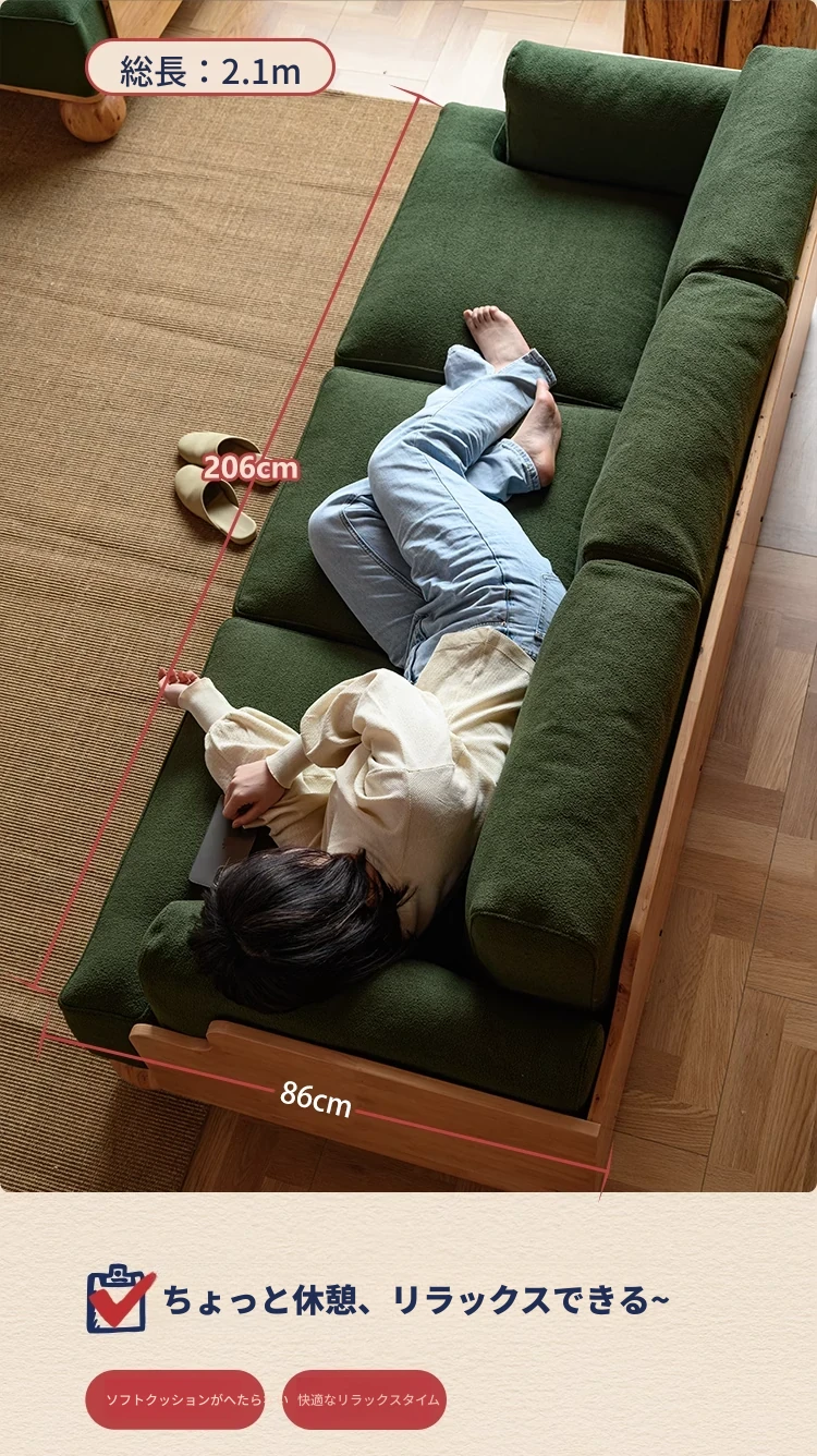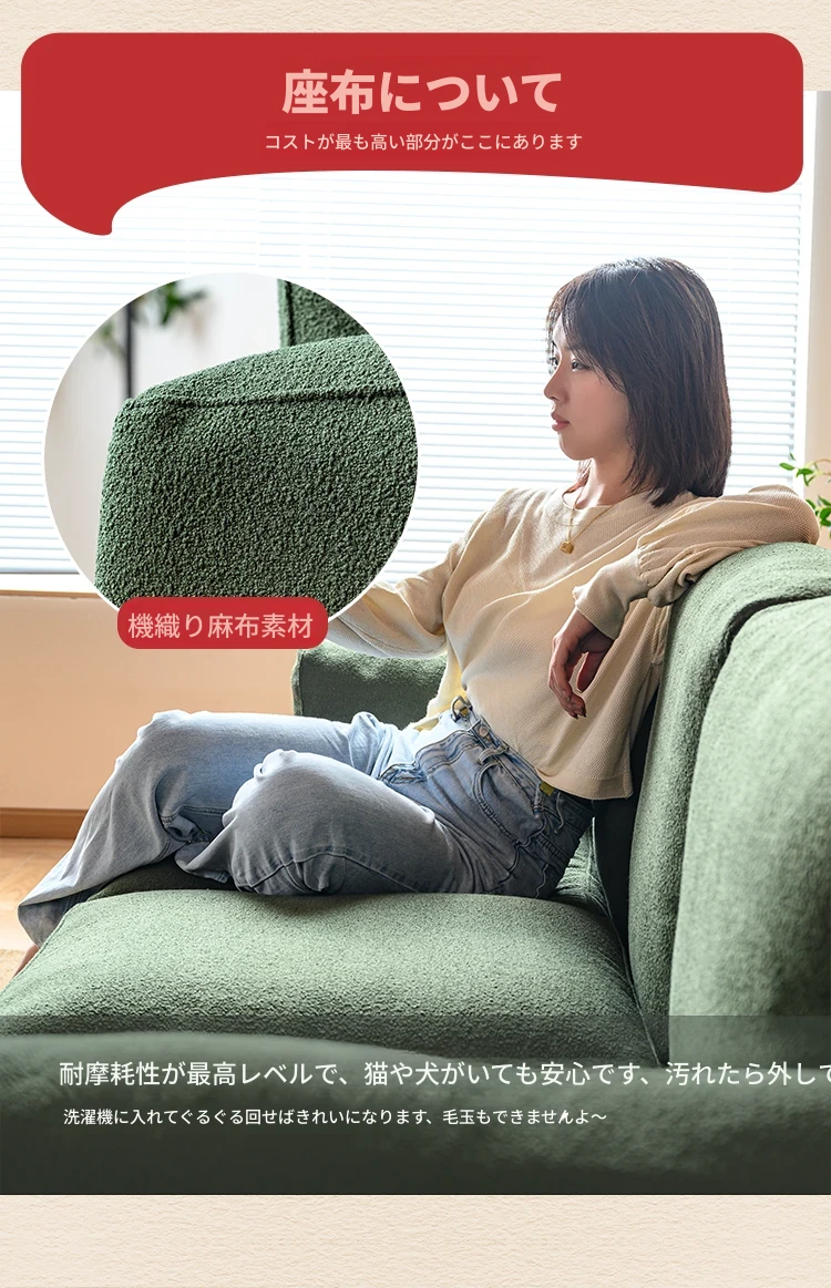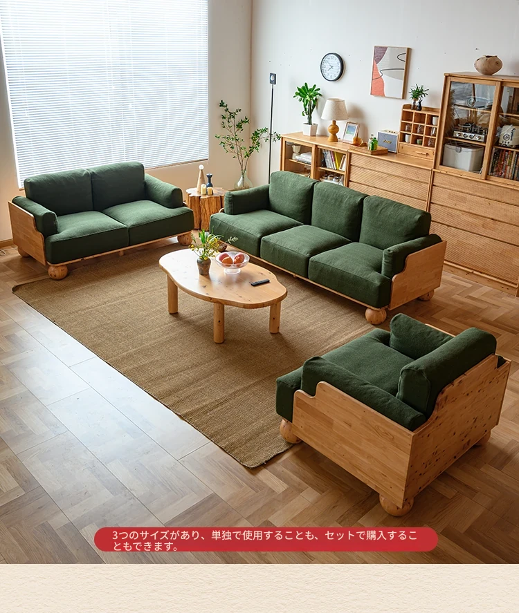 ◆天然木材使用!シンプルでモダンなデザインの実木ファブリックソファ。和風の豆腐ブロックスタイル、パイン材使用で北欧インスピレーション。小さなスペースにも最適なコンパクトサイズ!