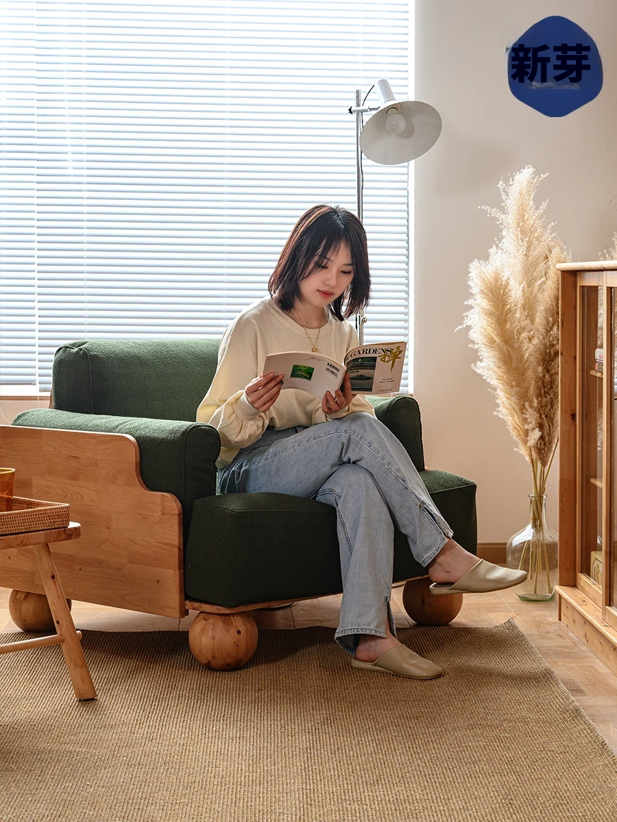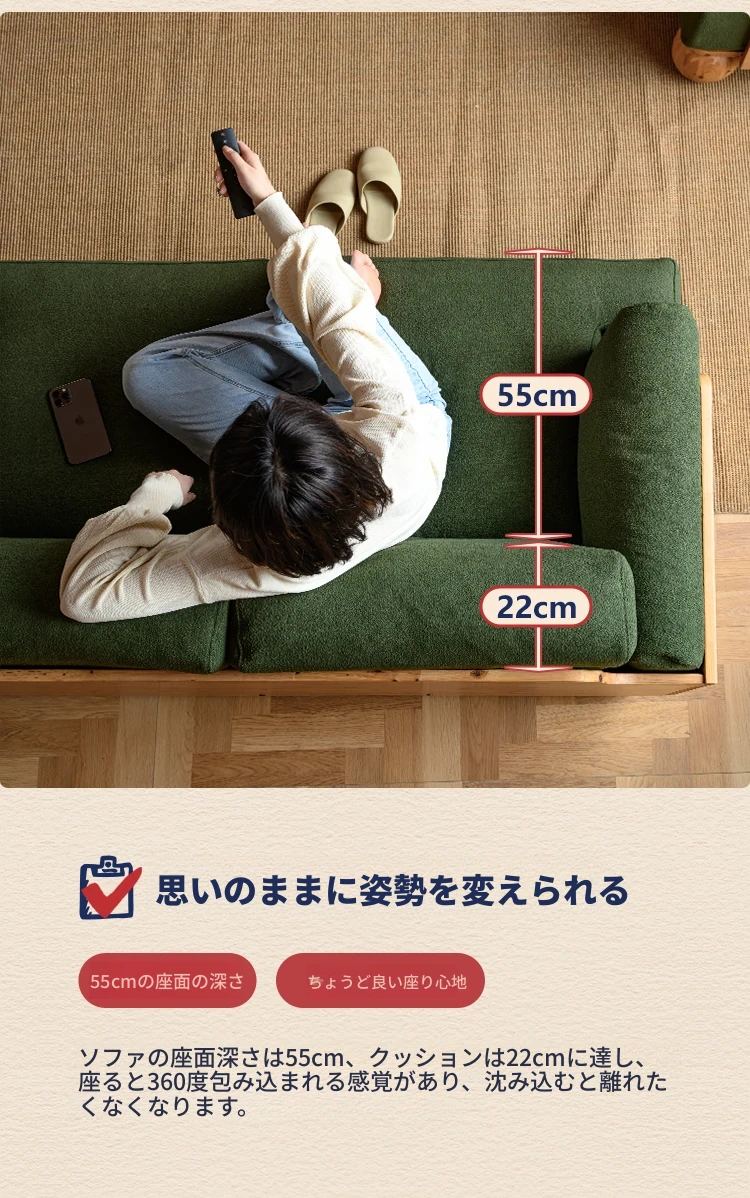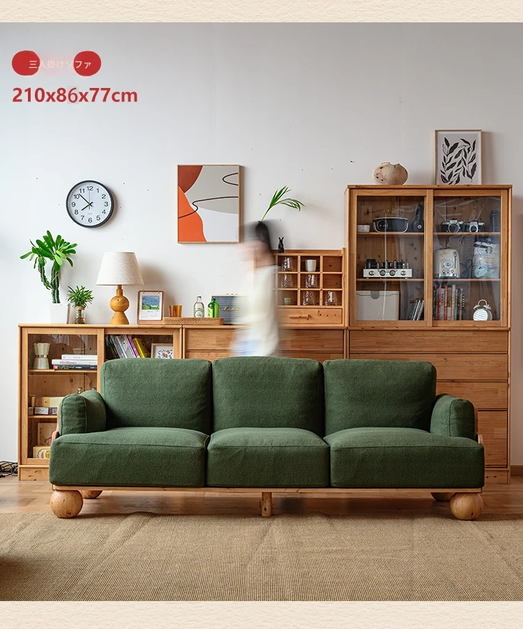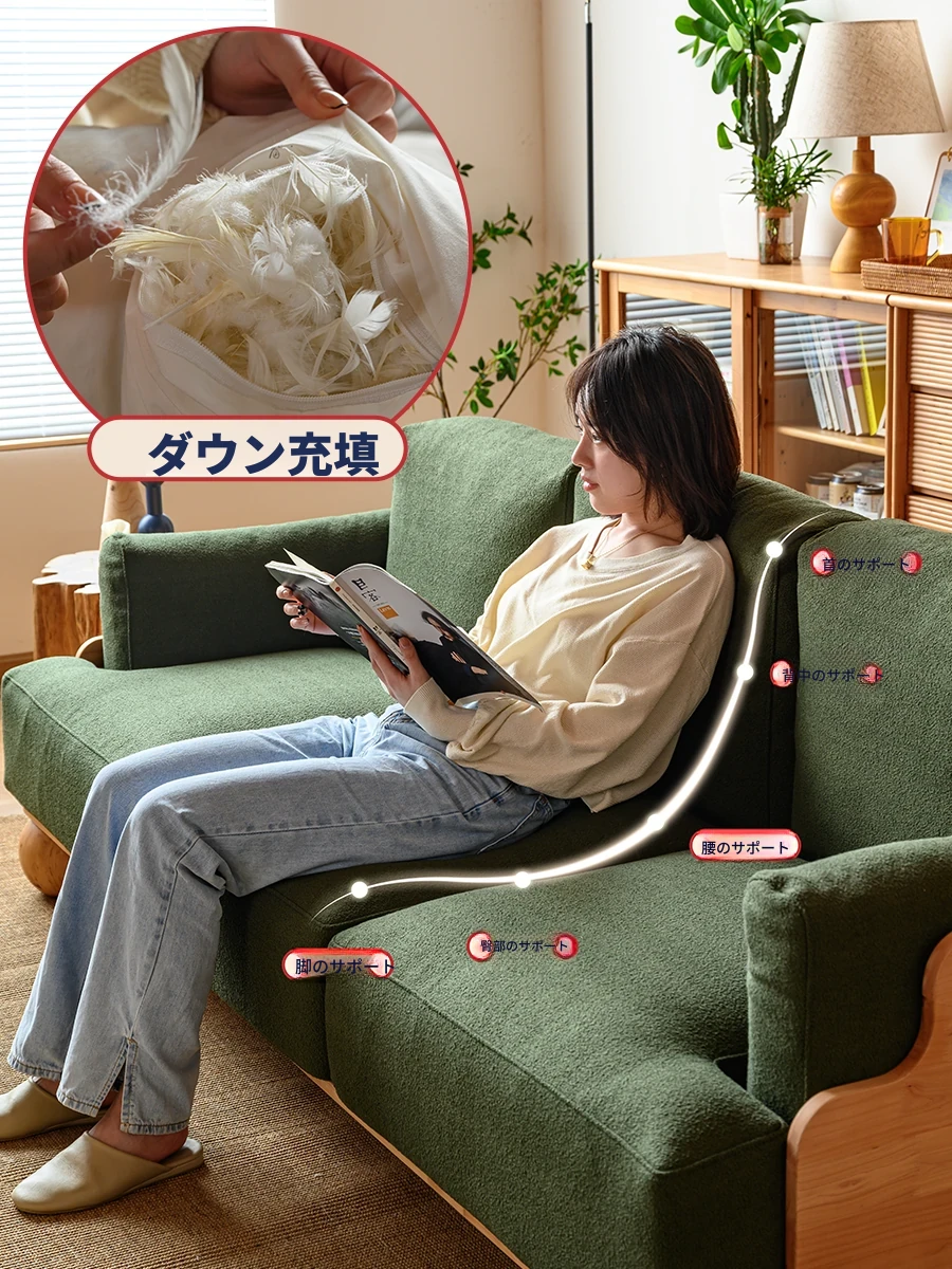 ◆天然木材使用!シンプルでモダンなデザインの実木ファブリックソファ。和風の豆腐ブロックスタイル、パイン材使用で北欧インスピレーション。小さなスペースにも最適なコンパクトサイズ!
