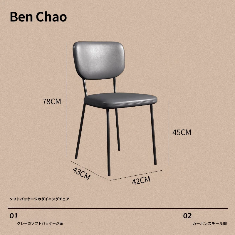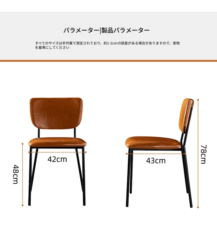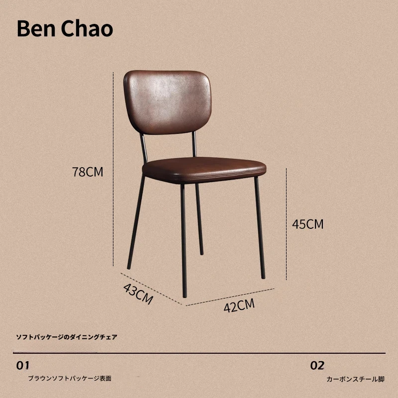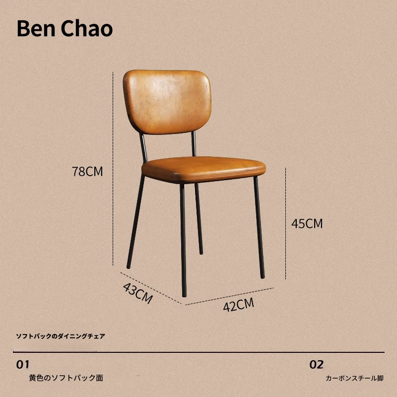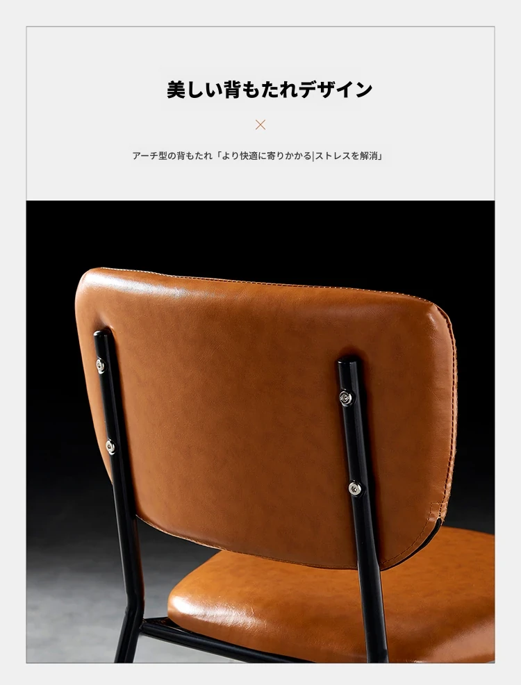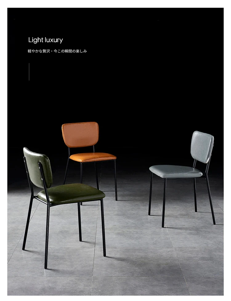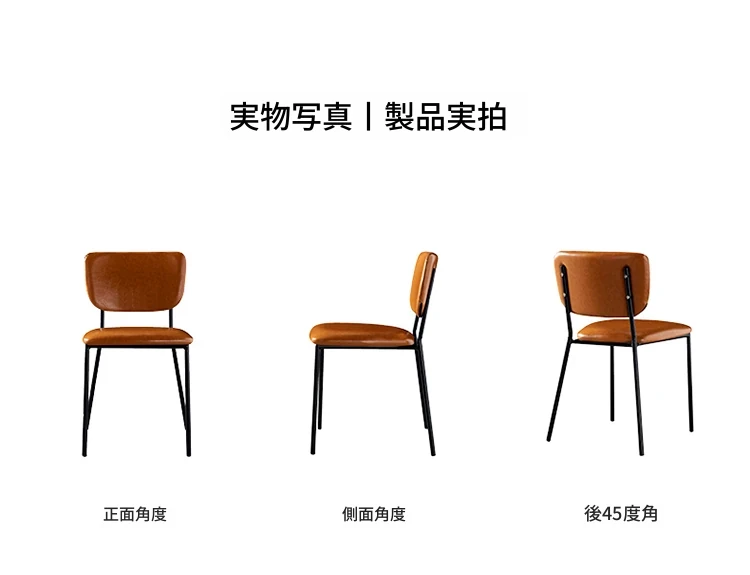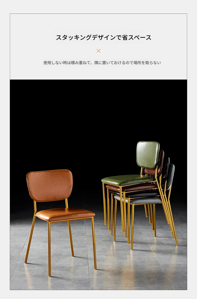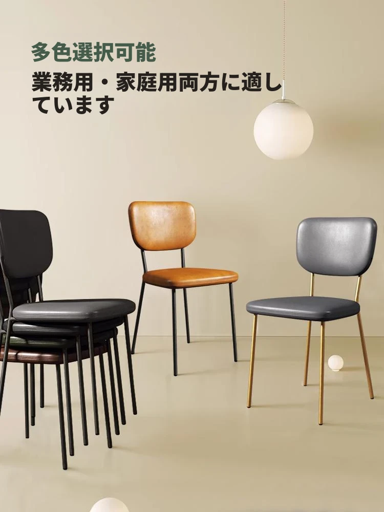モダンシンプルな家庭用ダイニングチェア、スタッキング可能な大人用背もたれ付きチェア。北欧風のラグジュアリーなデザイン、皮革張りで快適な座り心地。アイアン製のデスクチェアとしても最適です。