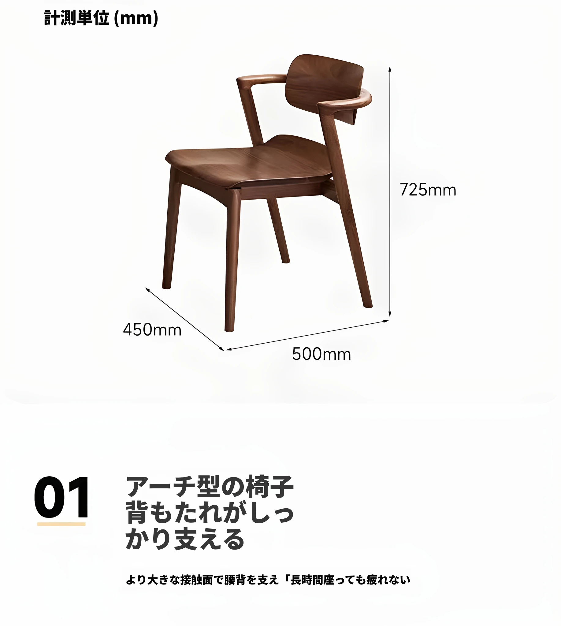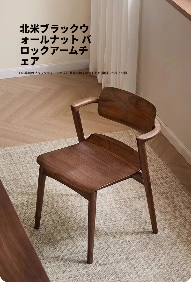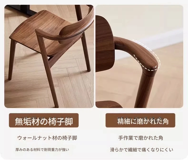 北米産ブラックウォールナット無垢材のモダンなダイニングチェア|伝統的な榫接ぎ技術を活かした背もたれ付き|書斎やティーテーブルに最適なデザイナー作品|川上元美の洗練されたスタイルを体験しよう!