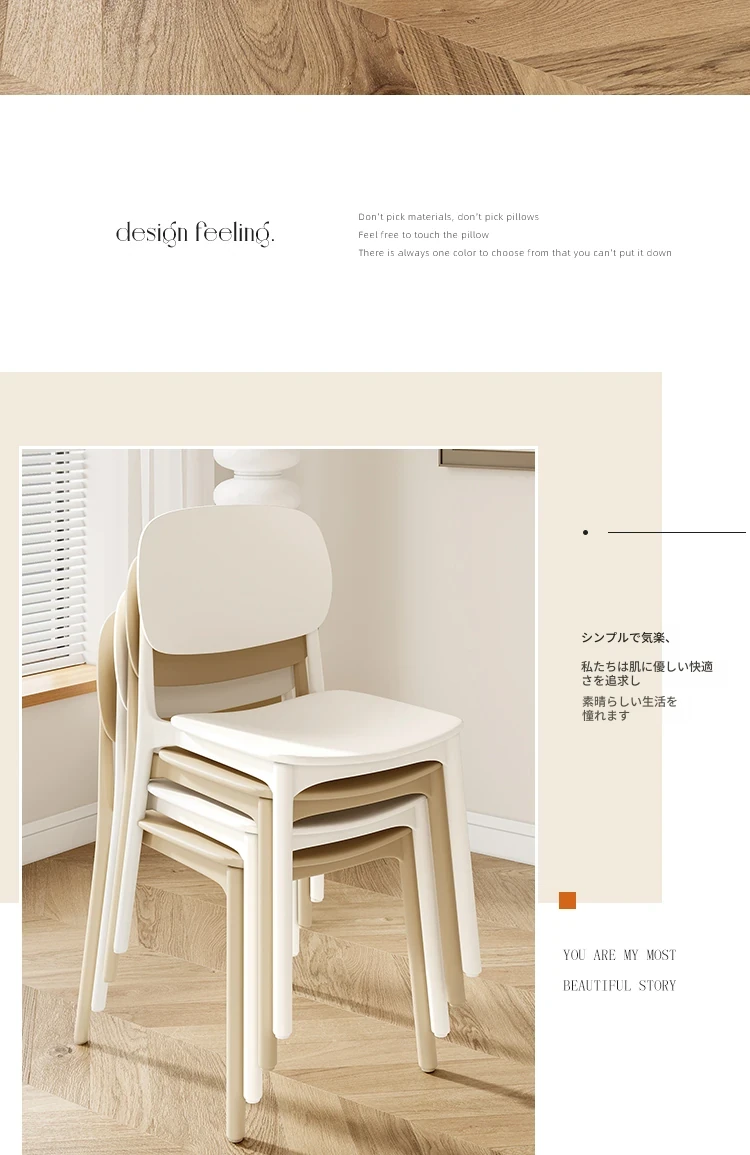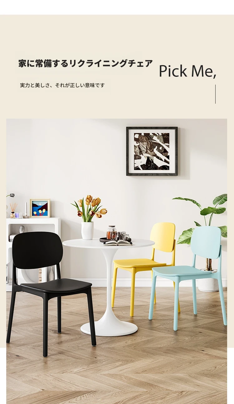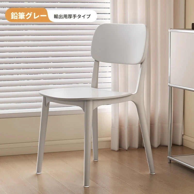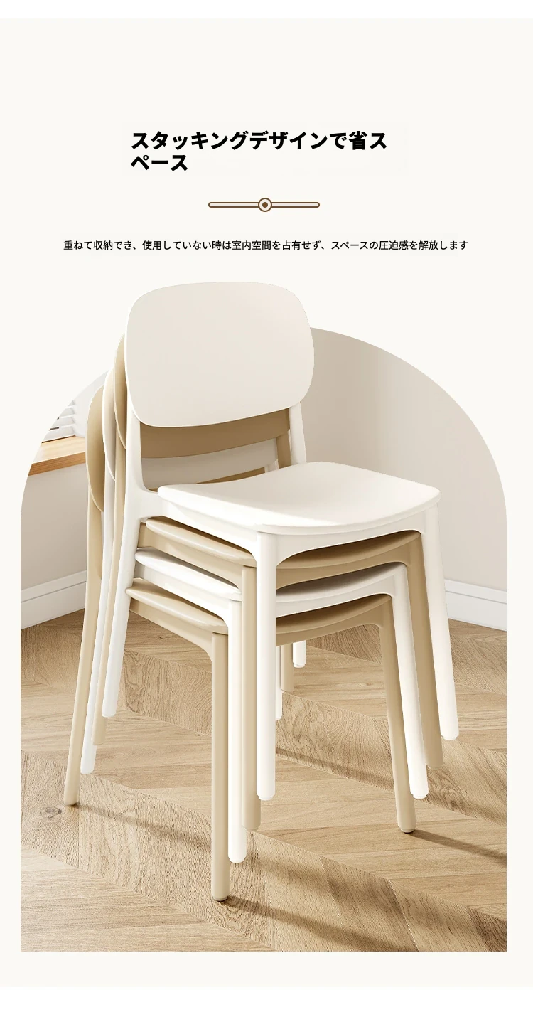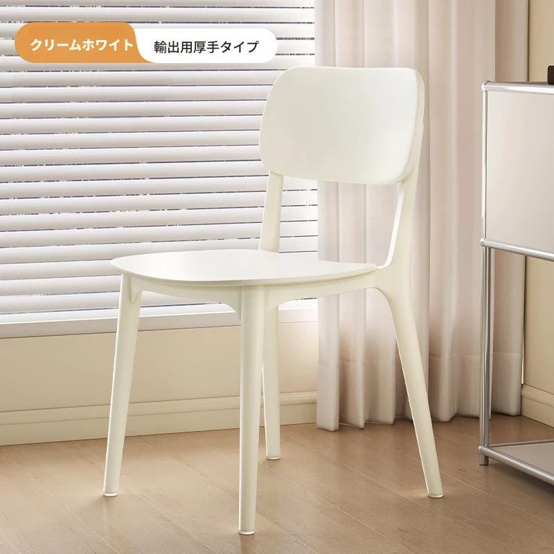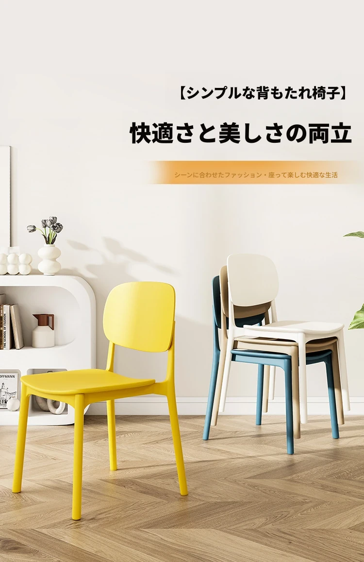 頑丈でスタイリッシュなプラスチック製ダイニングチェア!家庭用に最適な厚手設計、シンプルで現代的な背もたれ付き。重ねて収納可能で、食卓やサブベンチとしても活躍します。おしゃれな空間を演出しましょう!