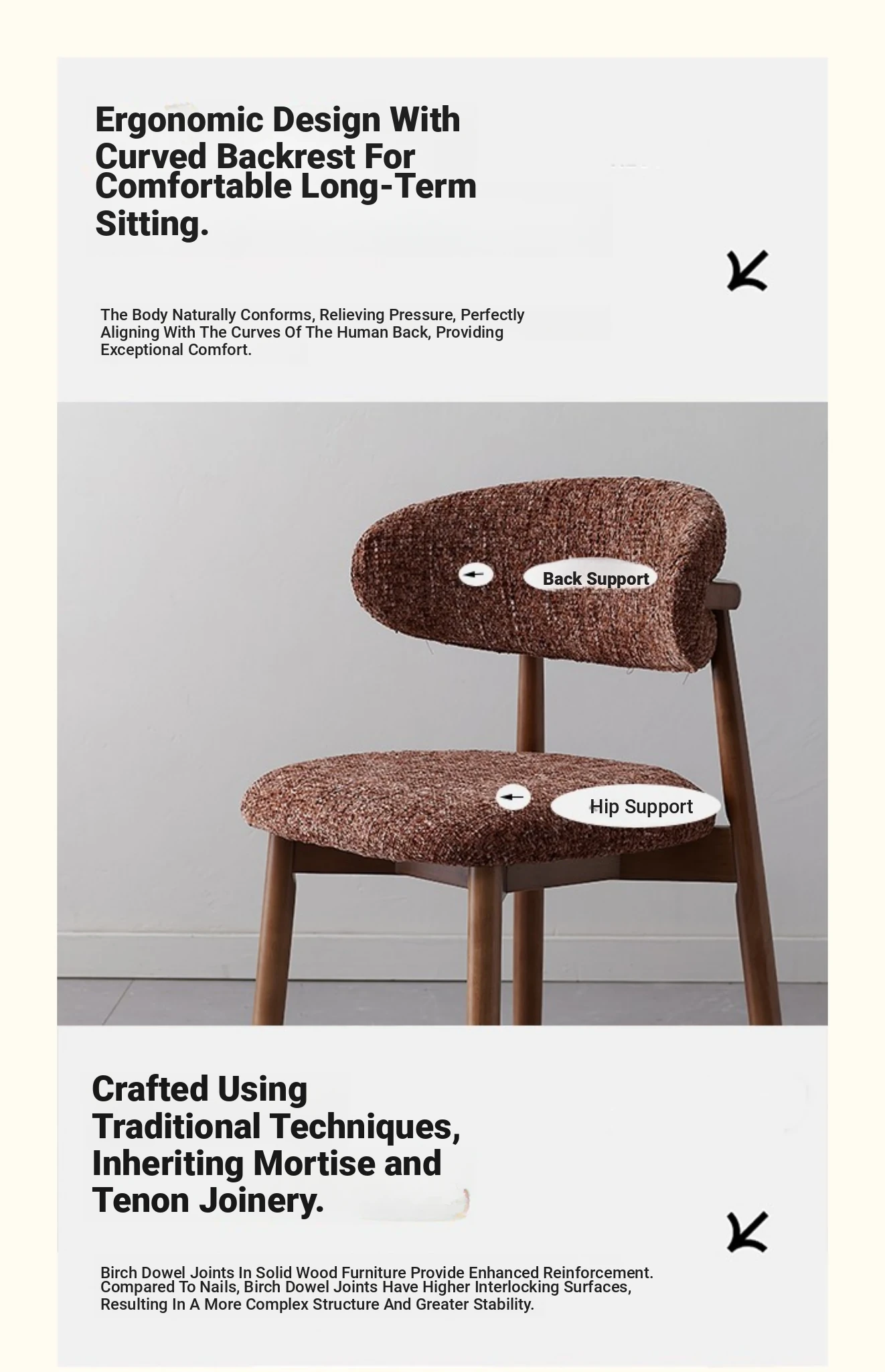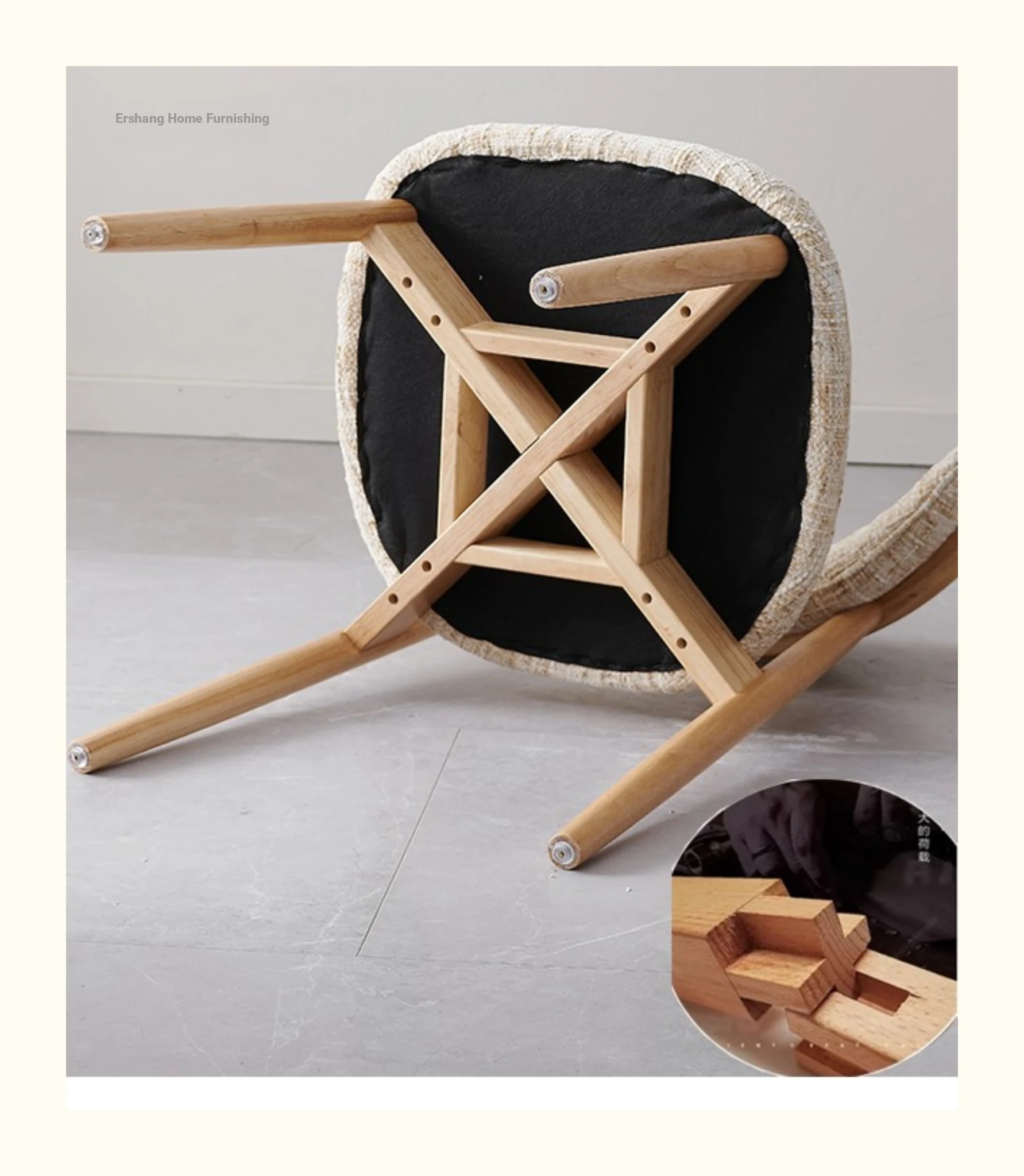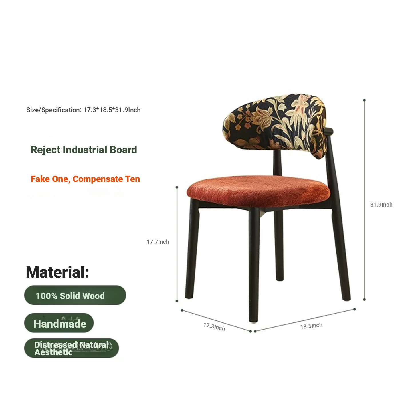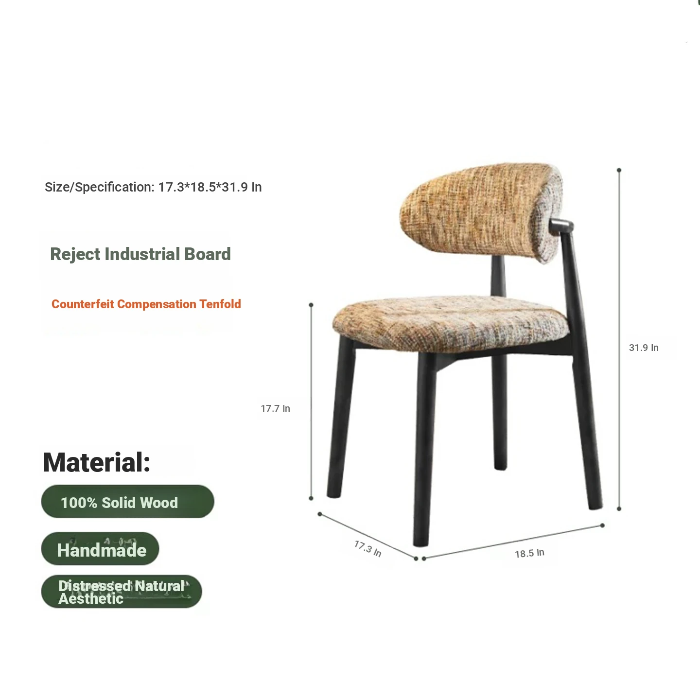 Modern Vintage-Style Upholstered Armchair with Removable Washable Fabric - Wabi-Sabi Aesthetic Solid Wood Dining Chair for Living Room, Comfortable Backrest Coffee Chair