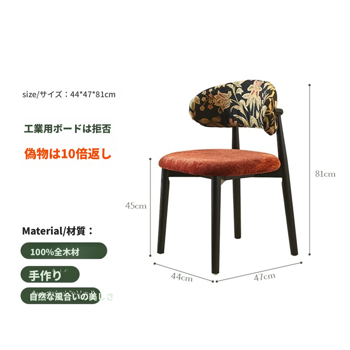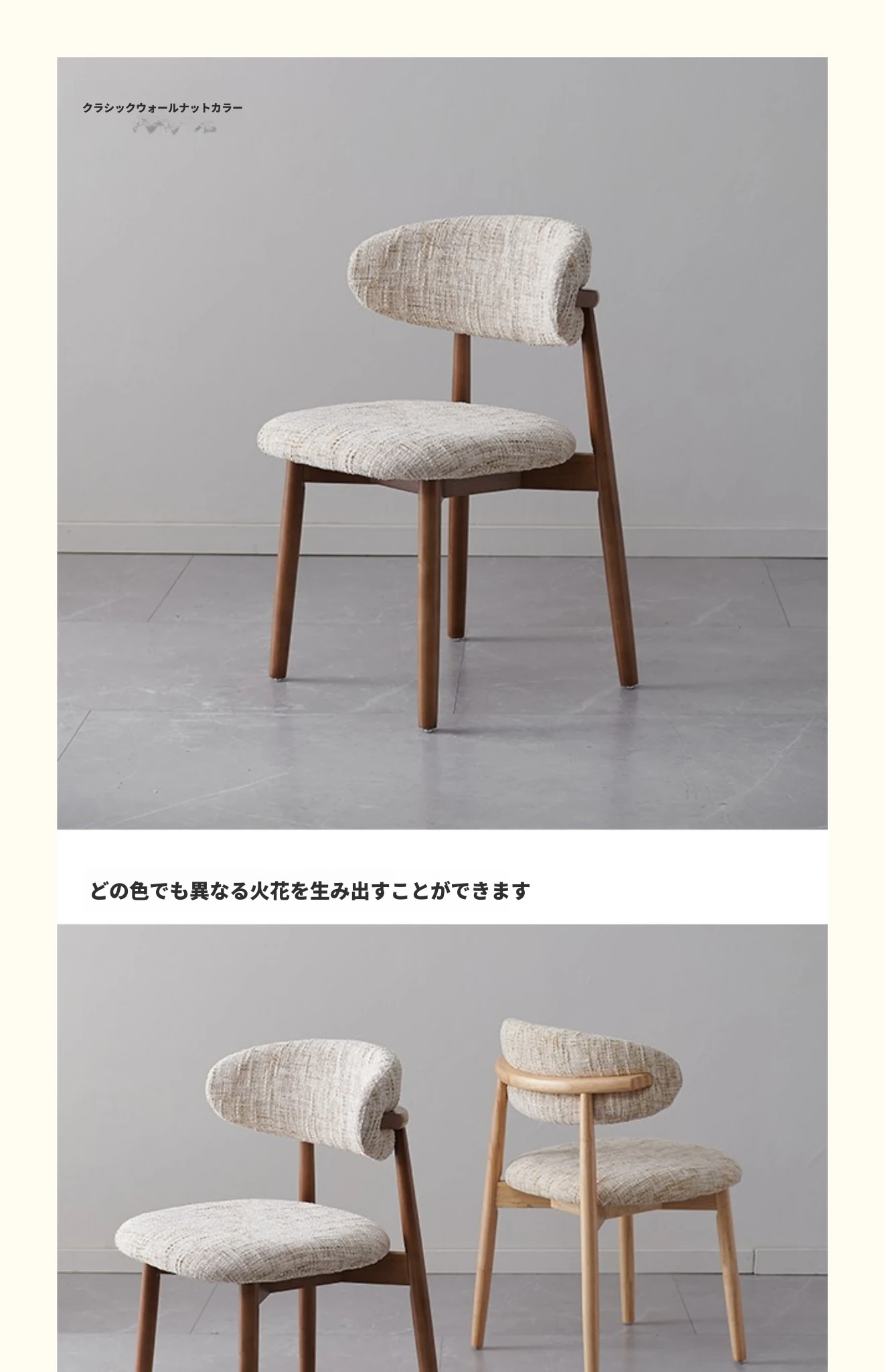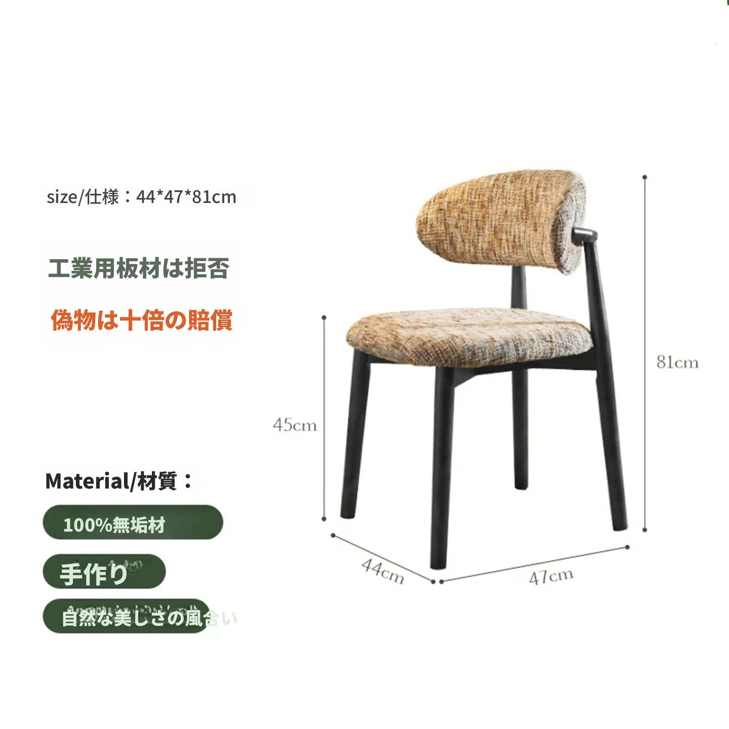 モダンな中古風の布製カジュアルチェア、洗える&組み立て可能!侘寂スタイルの無垢材ダイニングチェア、リビングの背もたれ付きコーヒーチェアとして最適!心地よい空間を演出します。