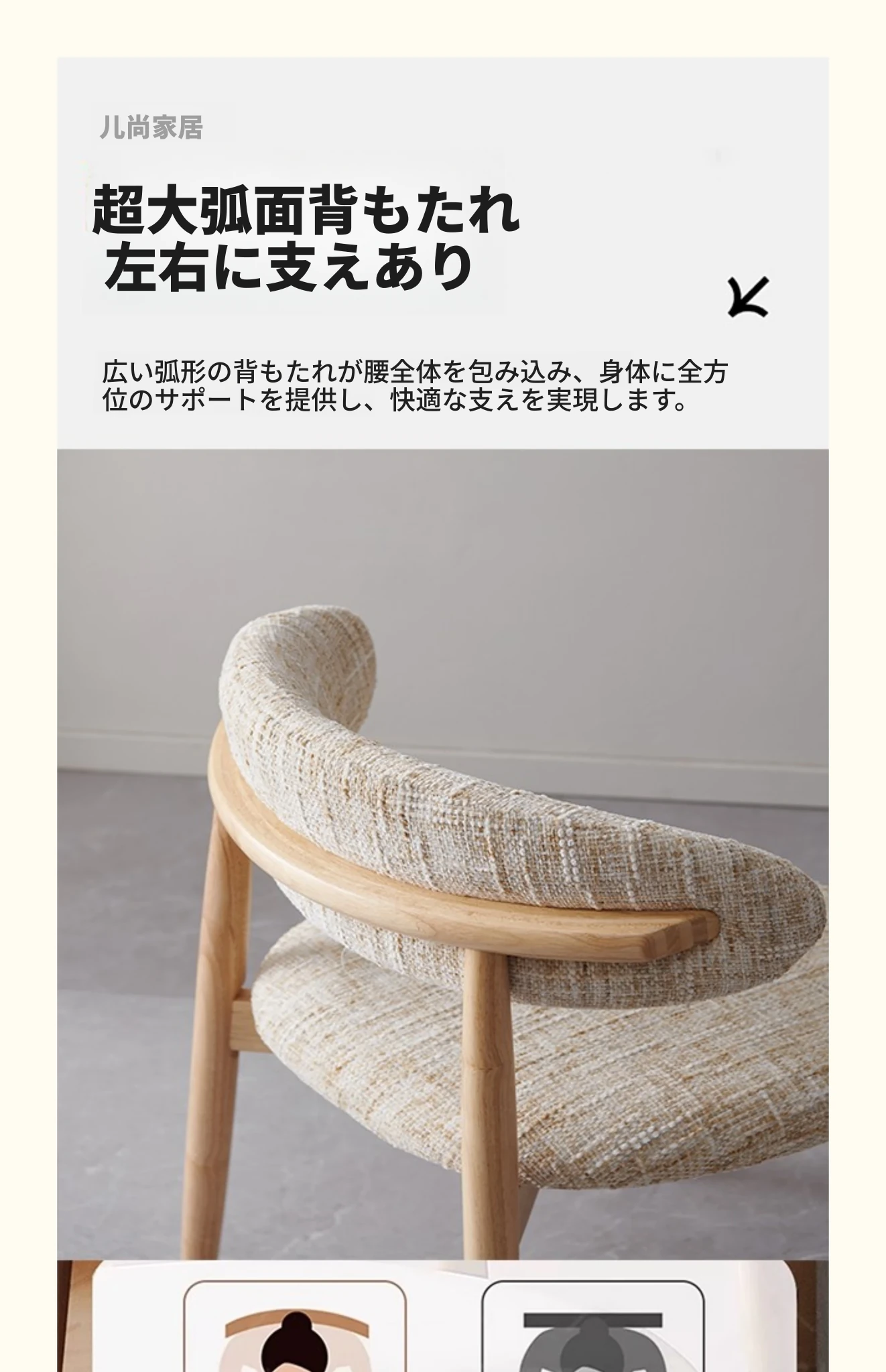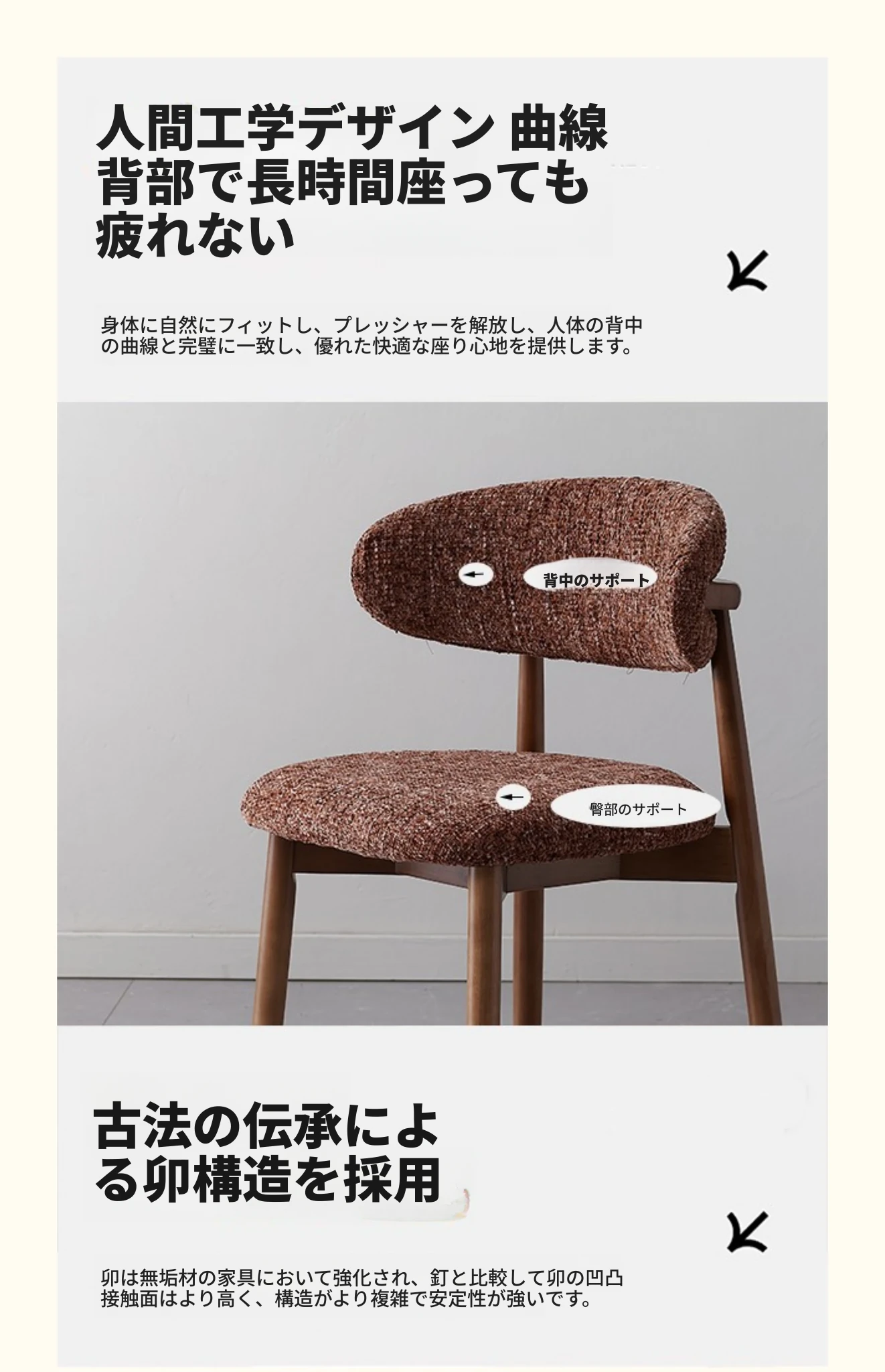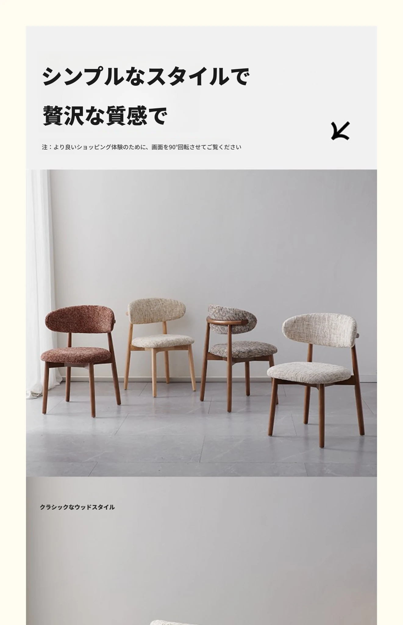 モダンな中古風の布製カジュアルチェア、洗える&組み立て可能!侘寂スタイルの無垢材ダイニングチェア、リビングの背もたれ付きコーヒーチェアとして最適!心地よい空間を演出します。