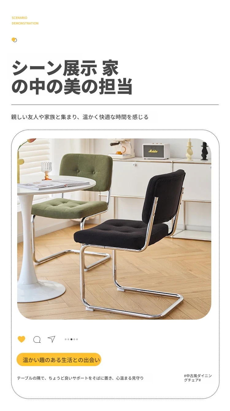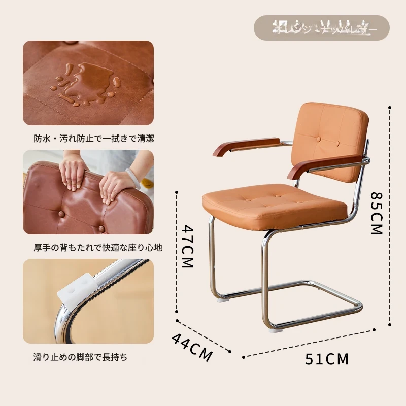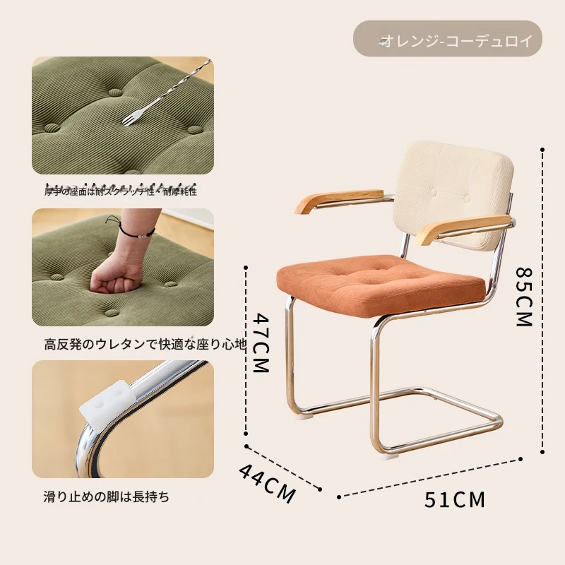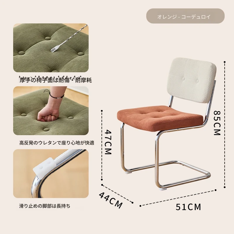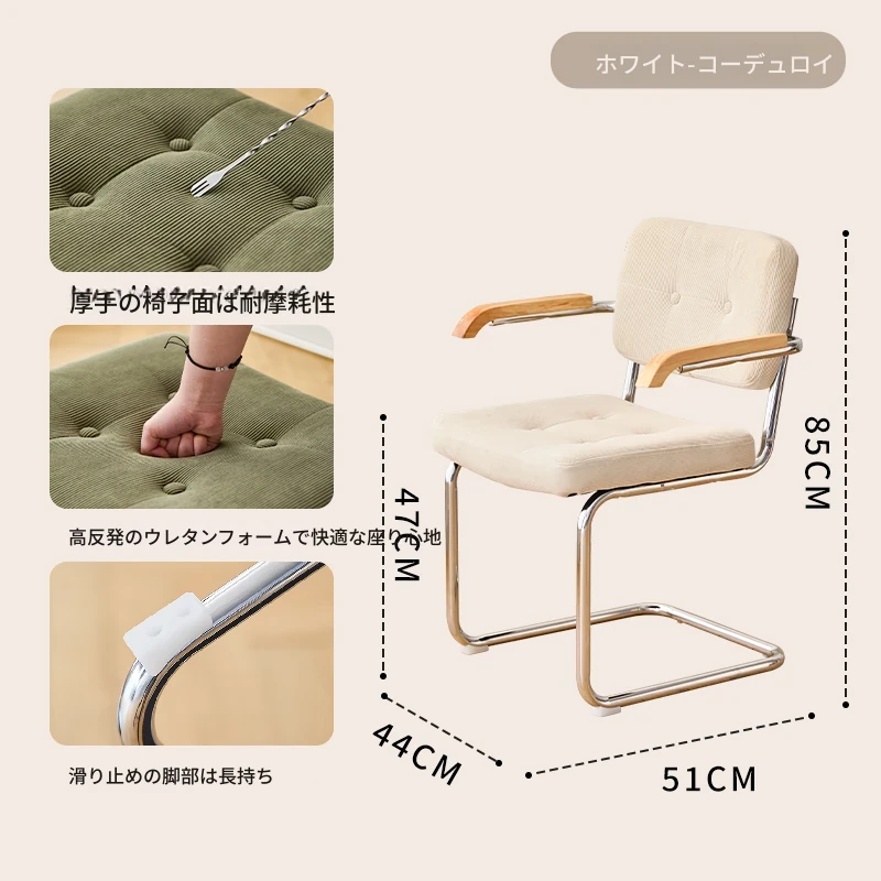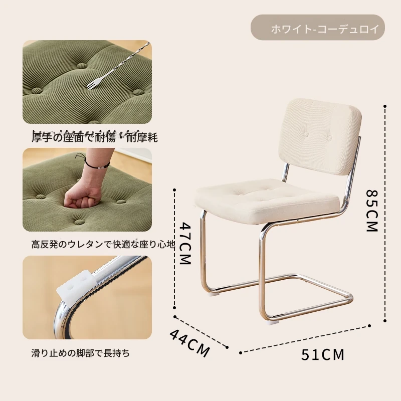 北欧スタイルのクリーム色ダイニングチェア|背もたれ付きで快適|リビングや寝室、ドレッサーにも最適!モダンでシンプルなデザインのヴィンテージ風デスクチェア。おしゃれで使い勝手抜群!