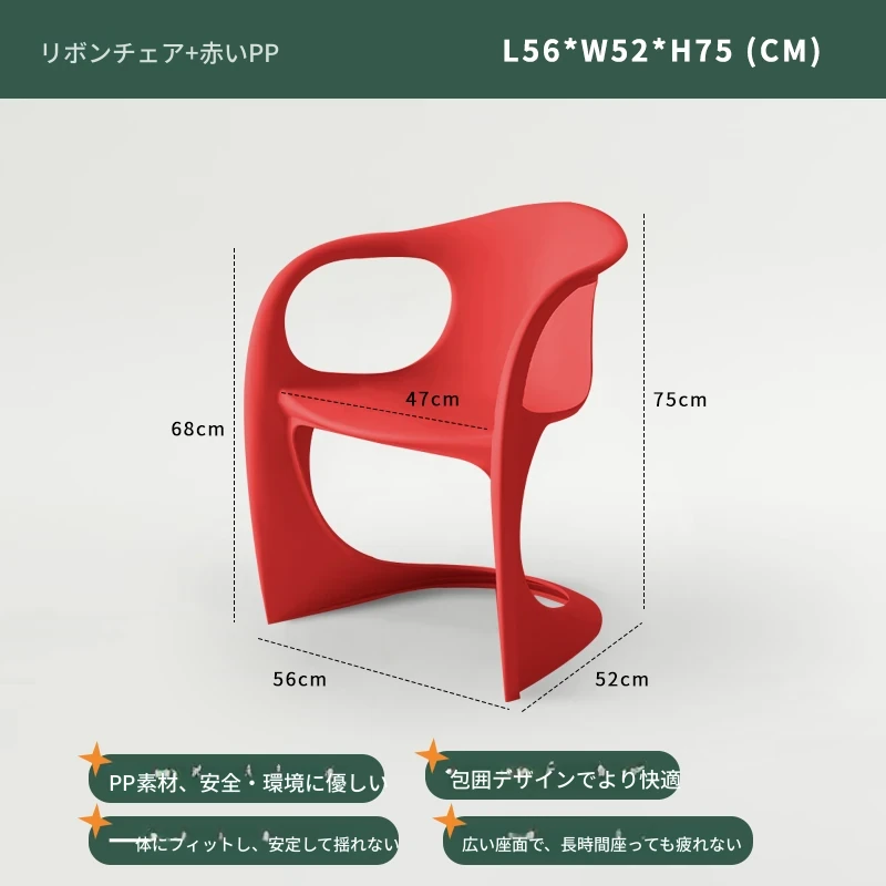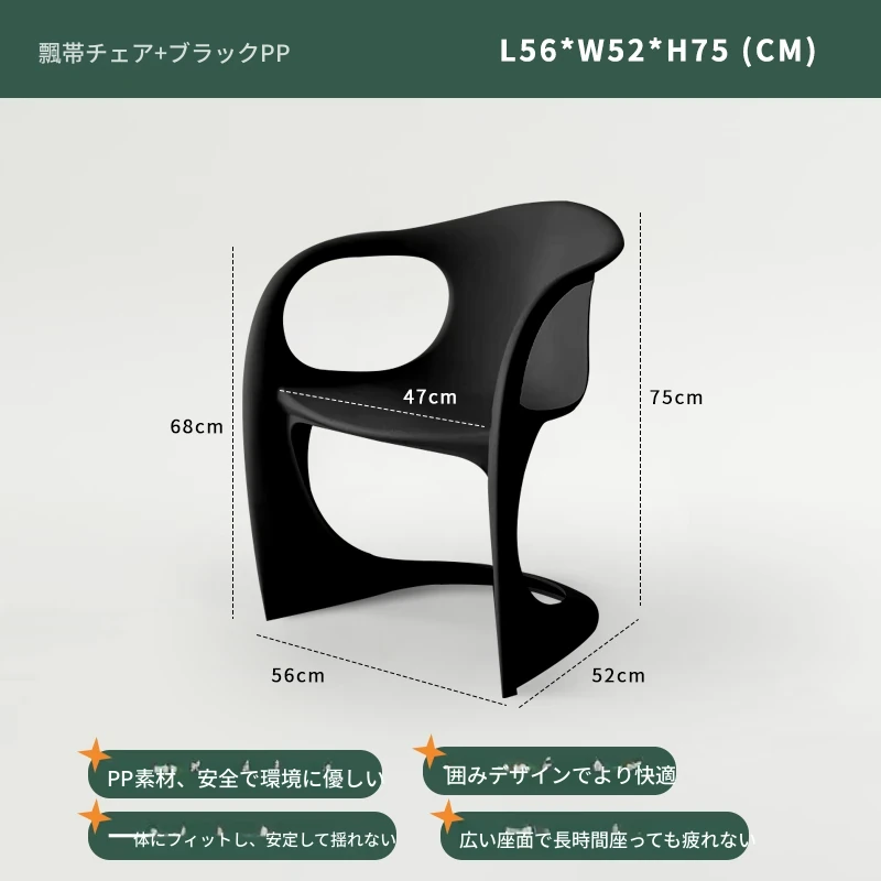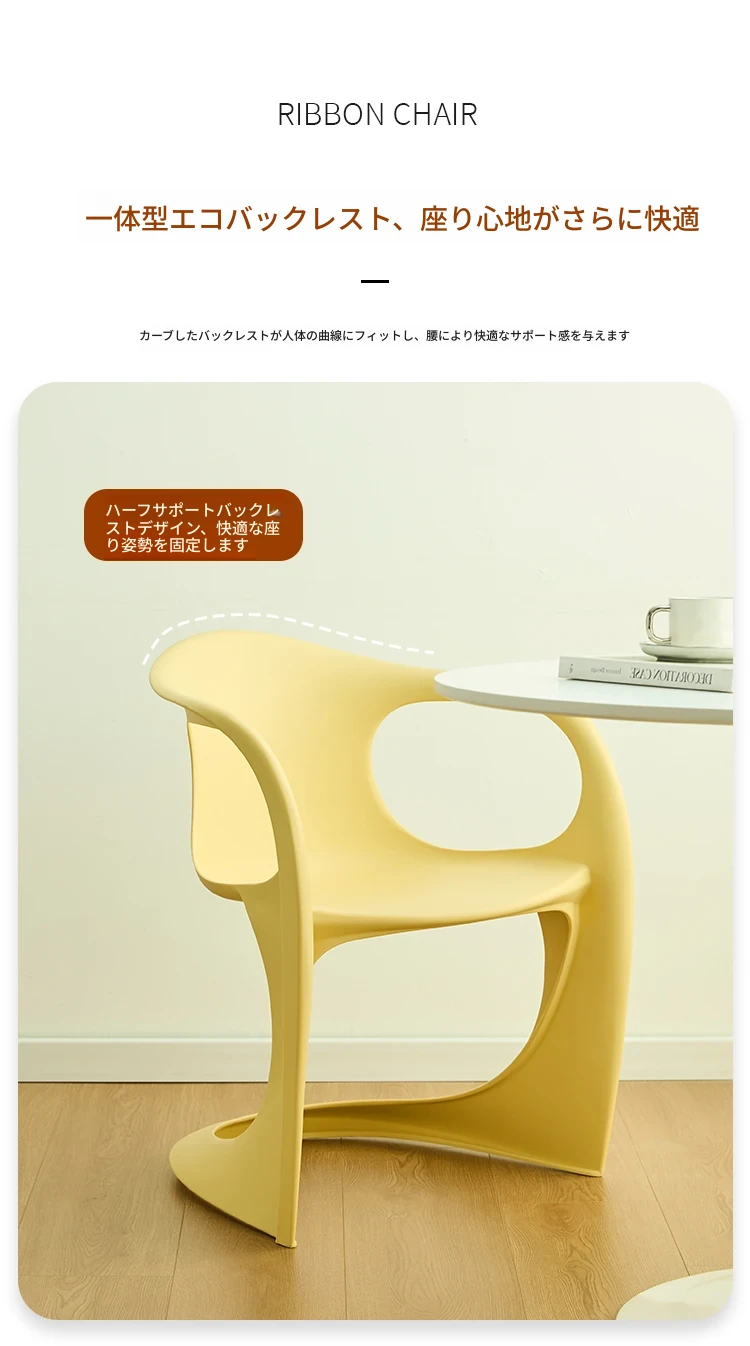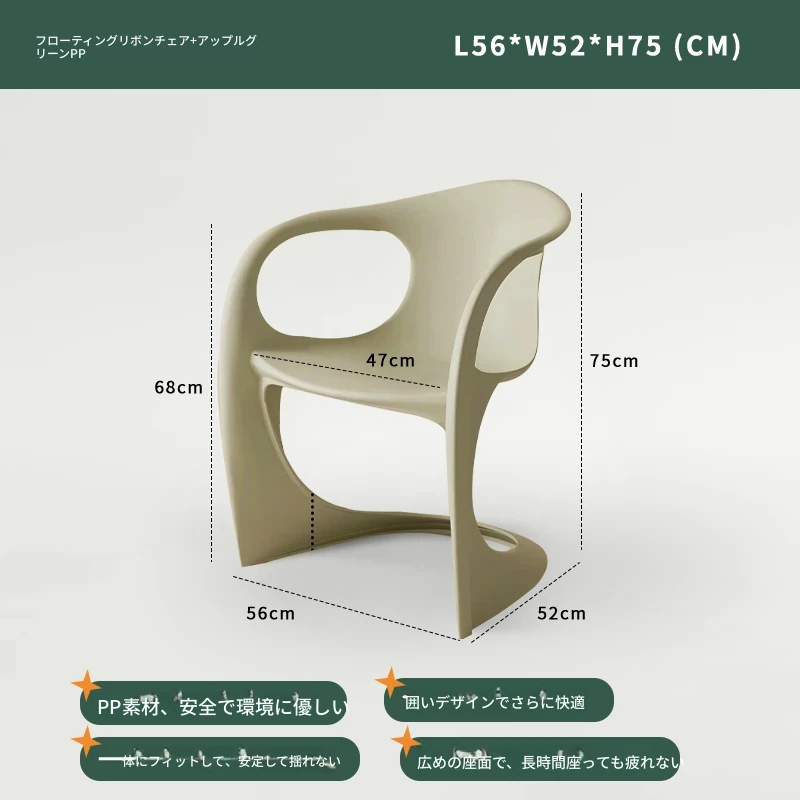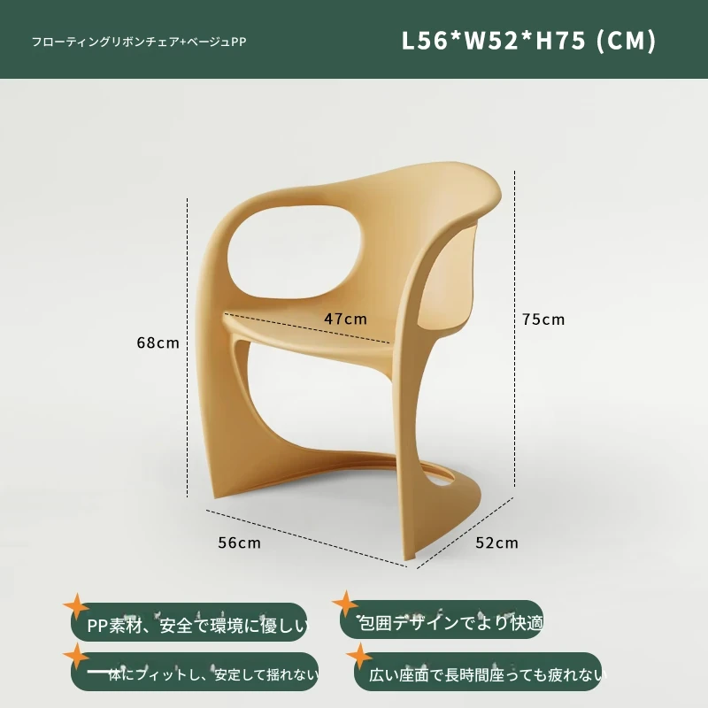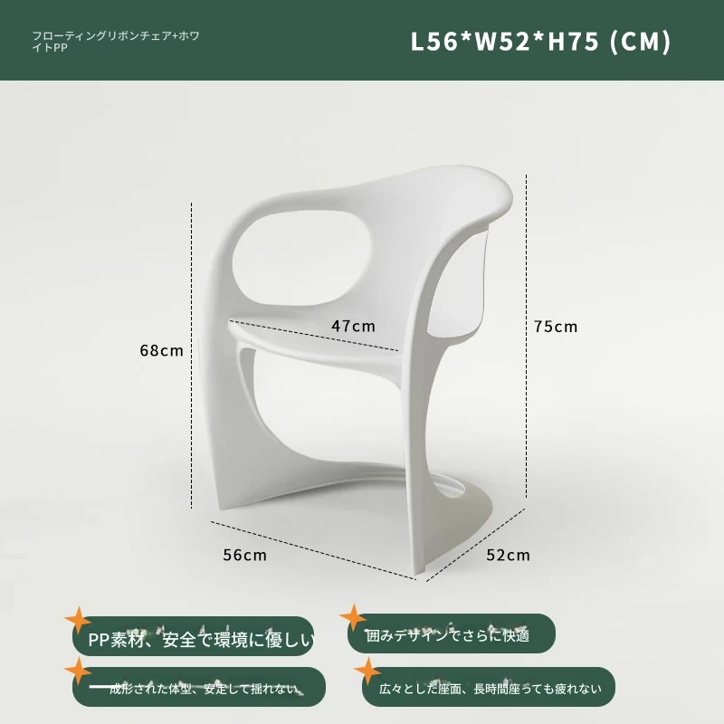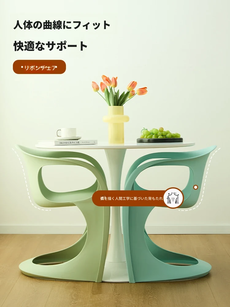 北欧デザインの飄帯チェア|おしゃれなダイニングチェア|バルコニーにぴったりなリラックスプラスチック背もたれ椅子|創造的な会議用アームチェアで快適なひとときを!