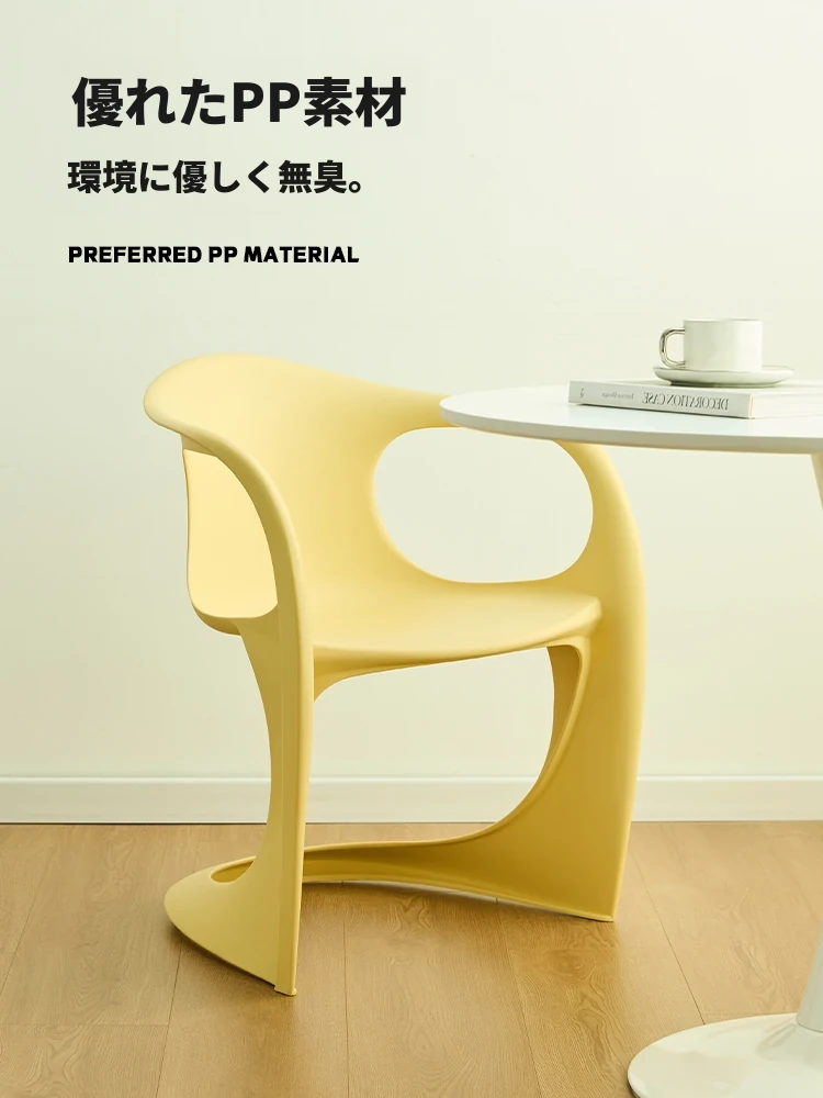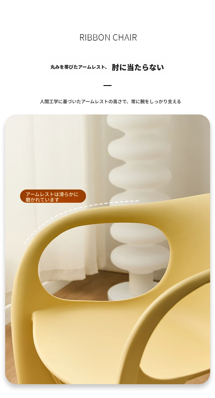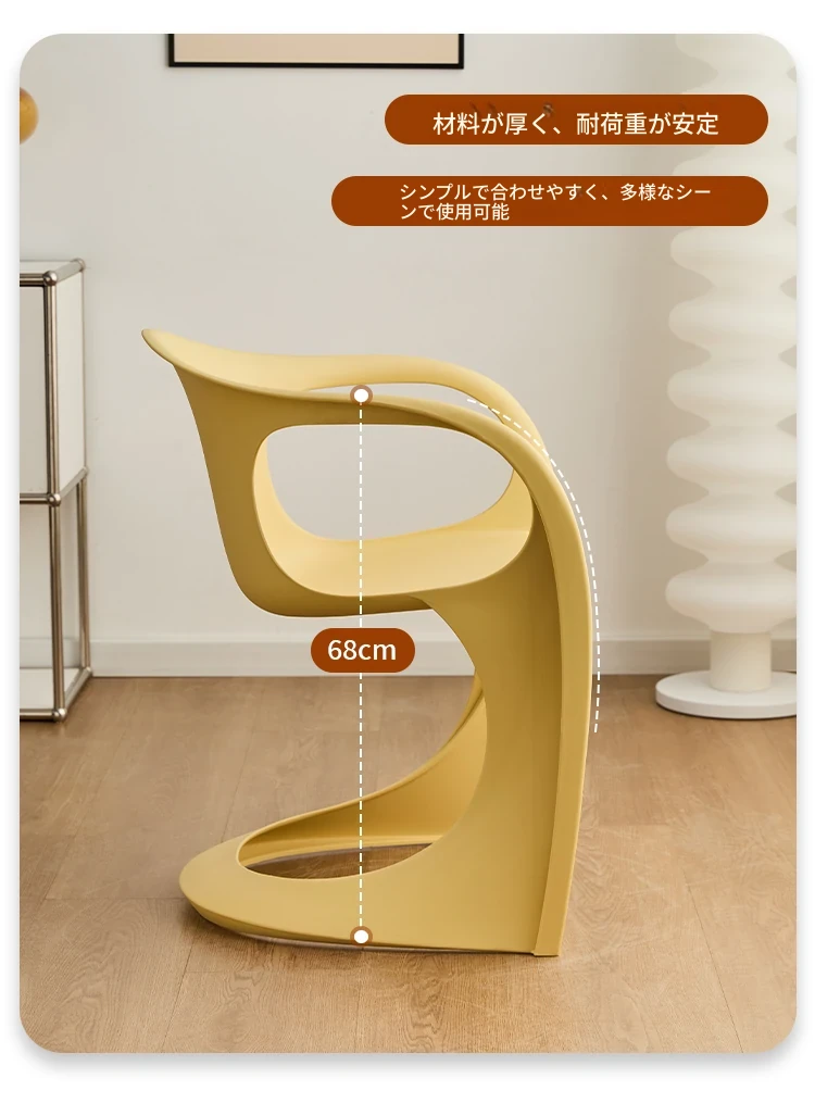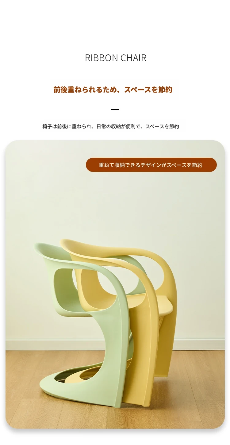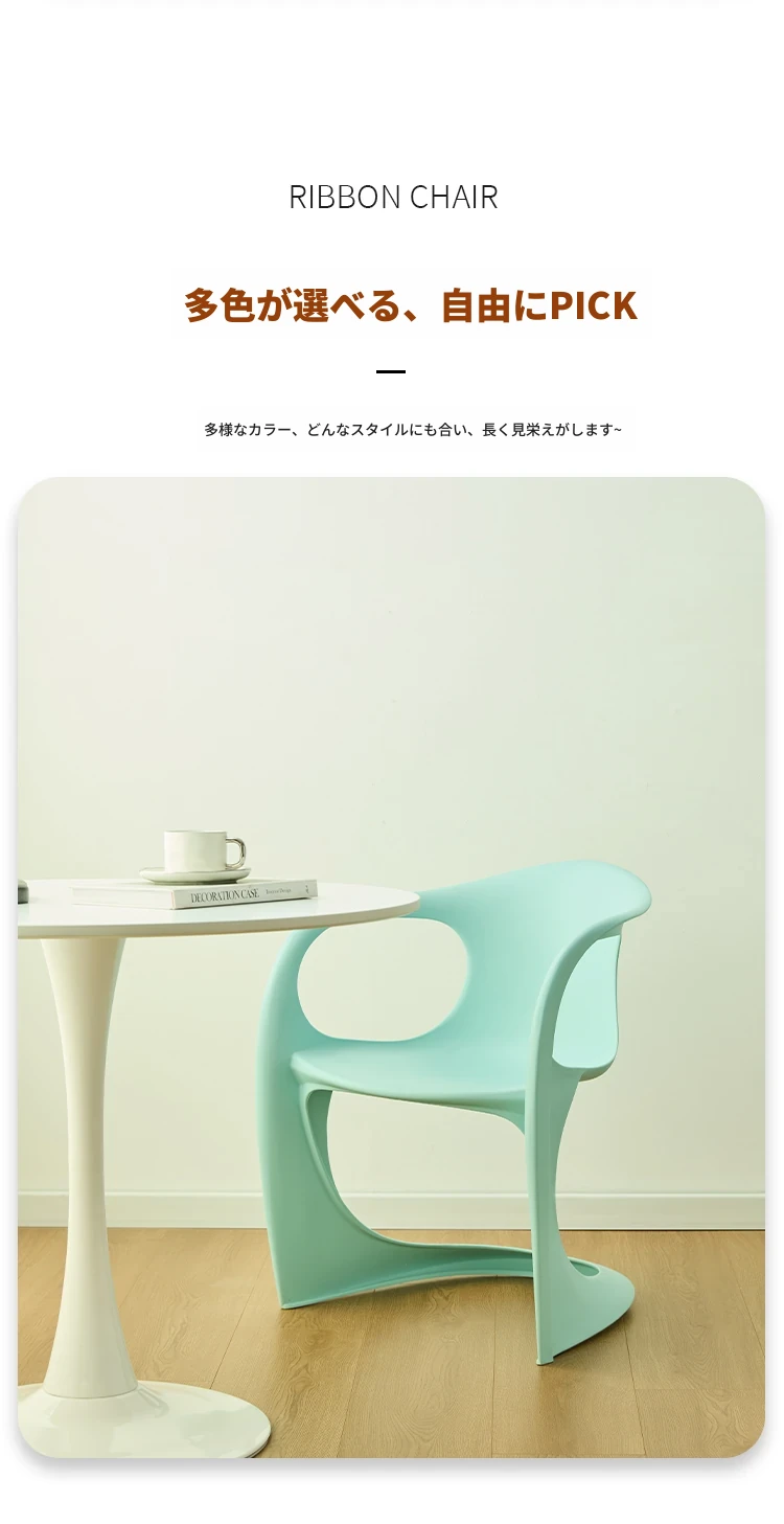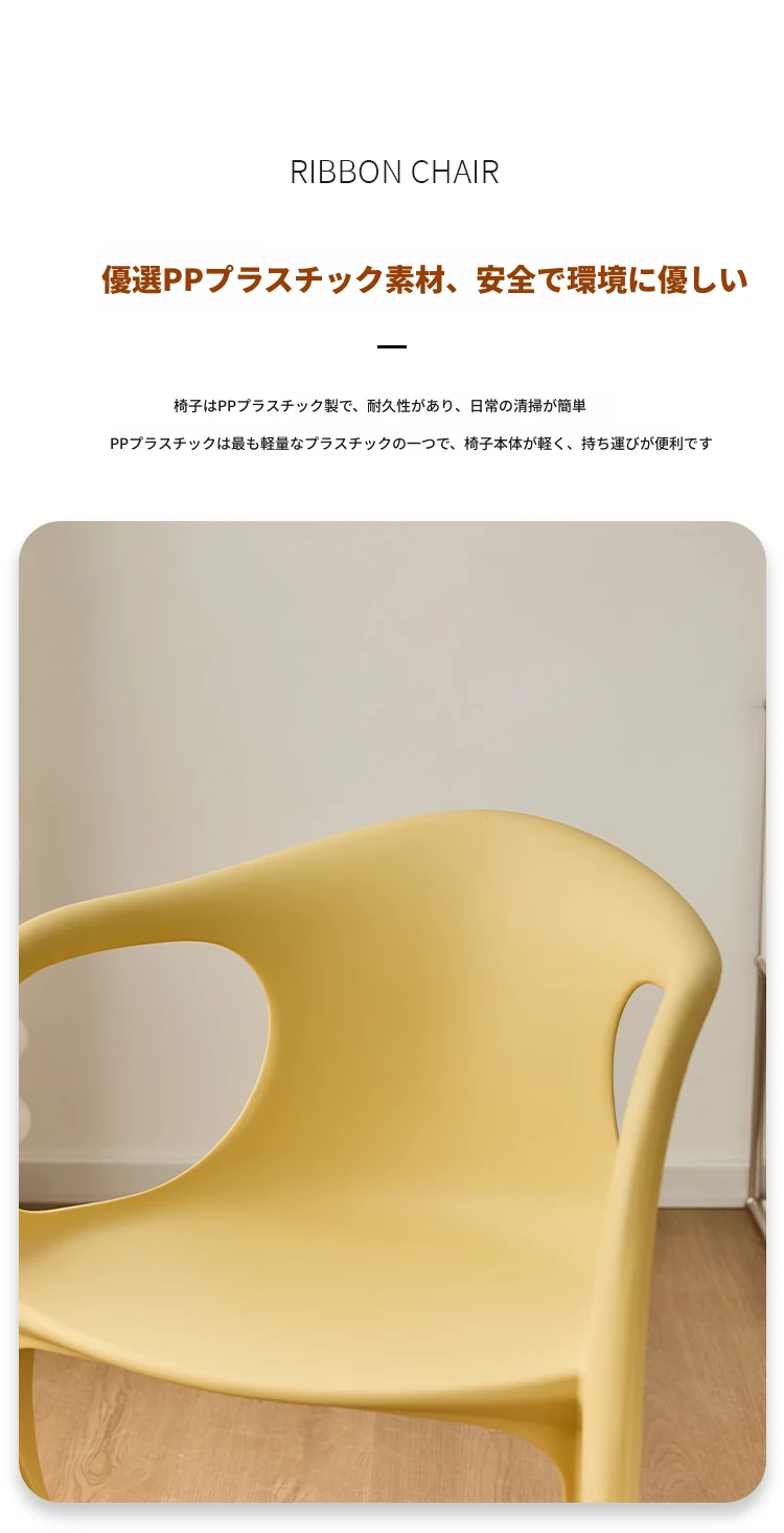 北欧デザインの飄帯チェア|おしゃれなダイニングチェア|バルコニーにぴったりなリラックスプラスチック背もたれ椅子|創造的な会議用アームチェアで快適なひとときを!