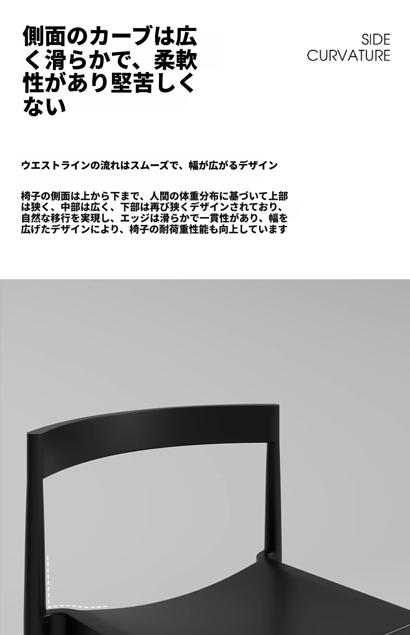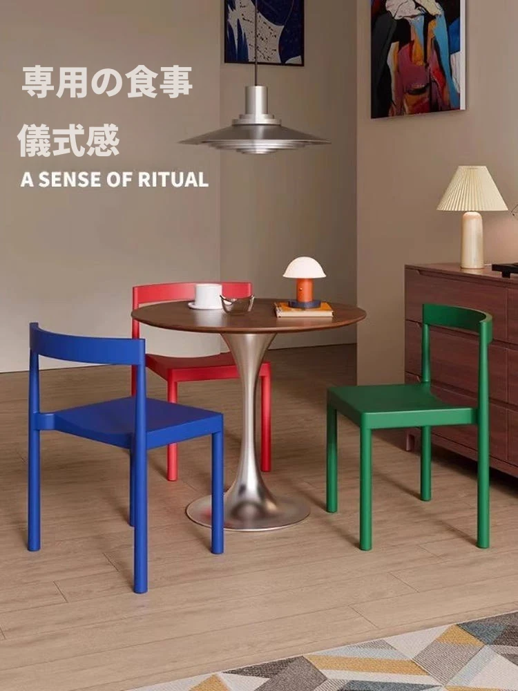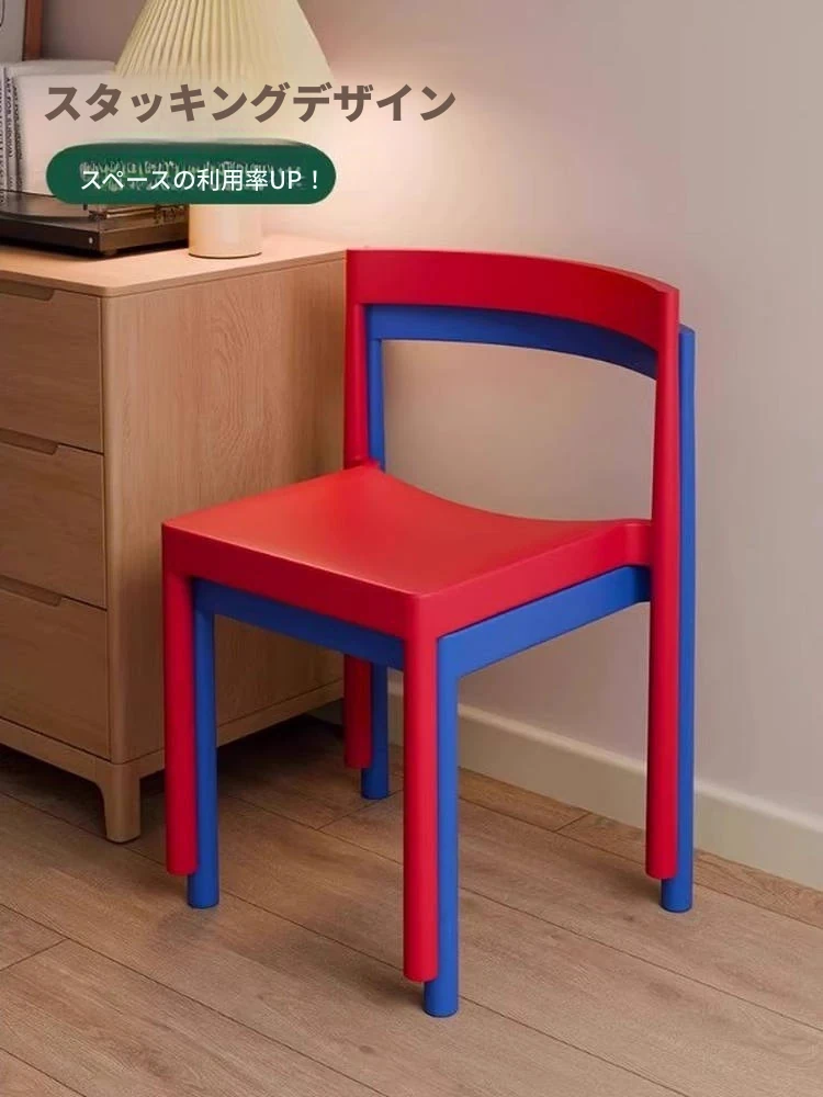 北欧デザインのスタッキングプラスチックチェア - 創造的な背もたれ付き、軽やかな高級感で家庭用にも最適!リラックスできるダイニングチェアとして、スタイリッシュな食卓を演出します。