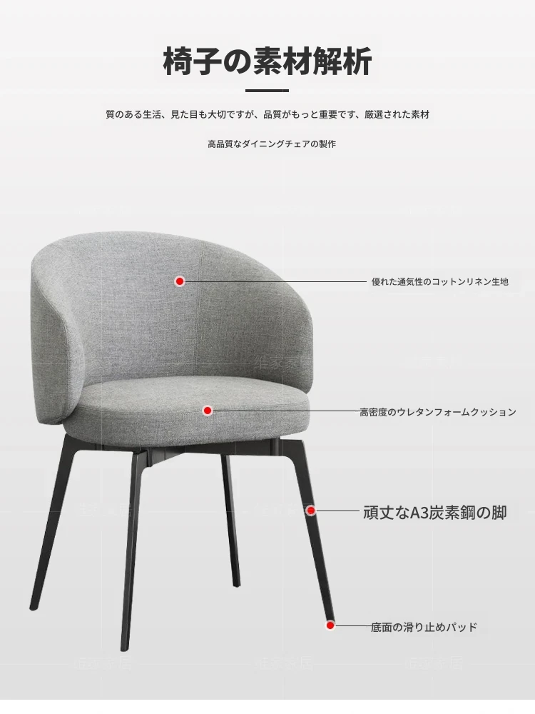 イタリアンファブリックのダイニングチェア【デフォルトはグレーのコットンリネン】