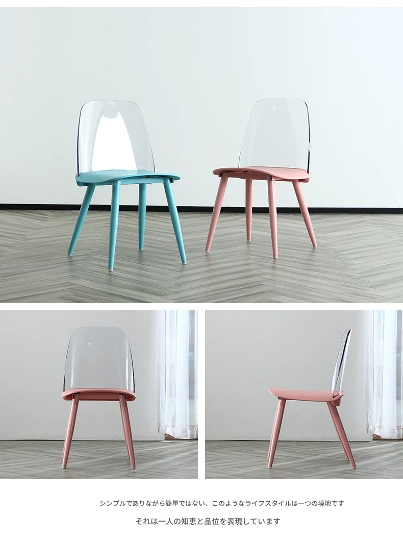 北欧風のマスターデザイン!シンプルでスタイリッシュな家用・商用椅子。透明アクリル製のティー・コーヒーレストラン用チェアで、洗練された空間を演出します。