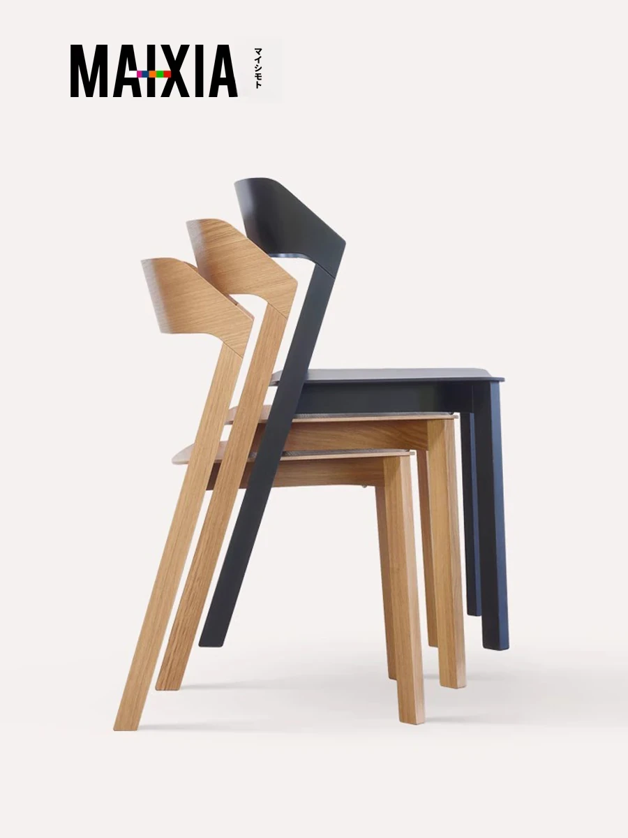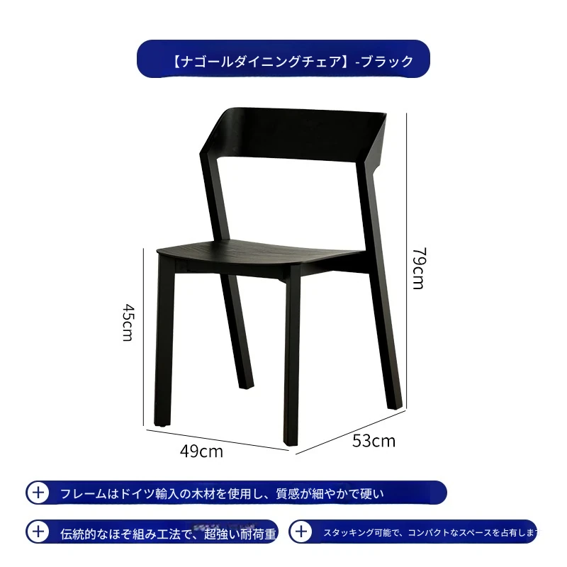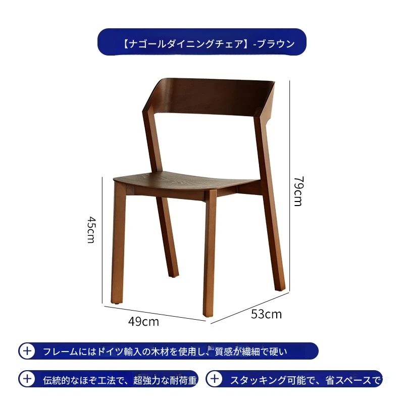 北欧デザインのシンプルな無垢材ダイニングチェア|モダンでスタイリッシュな背もたれ付き|カフェやティールームにも最適|重ねて収納できる便利な家庭用チェア