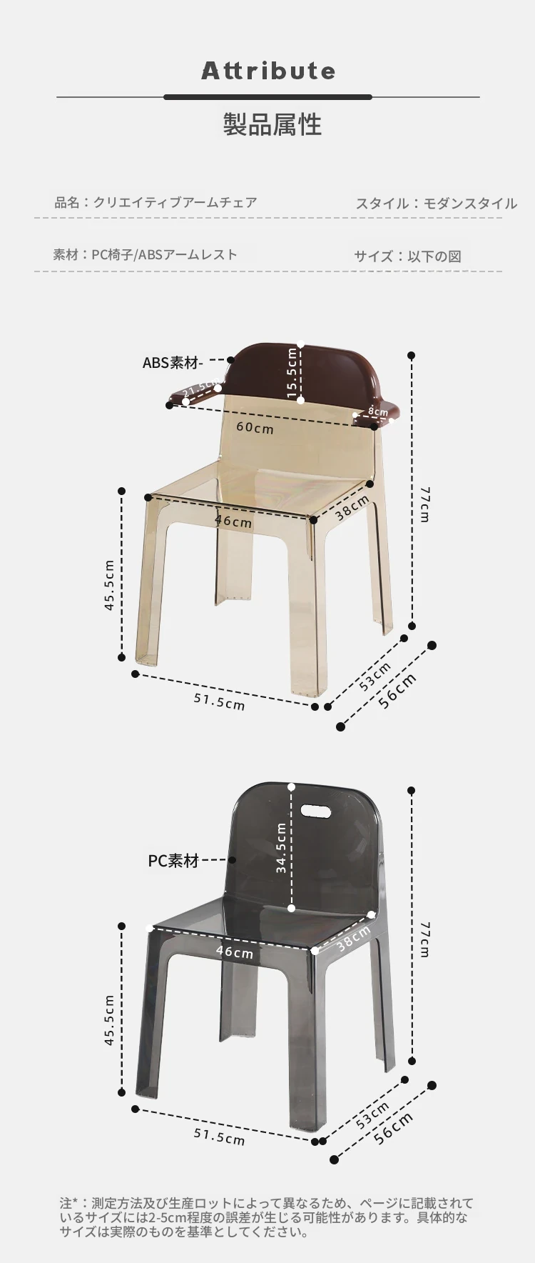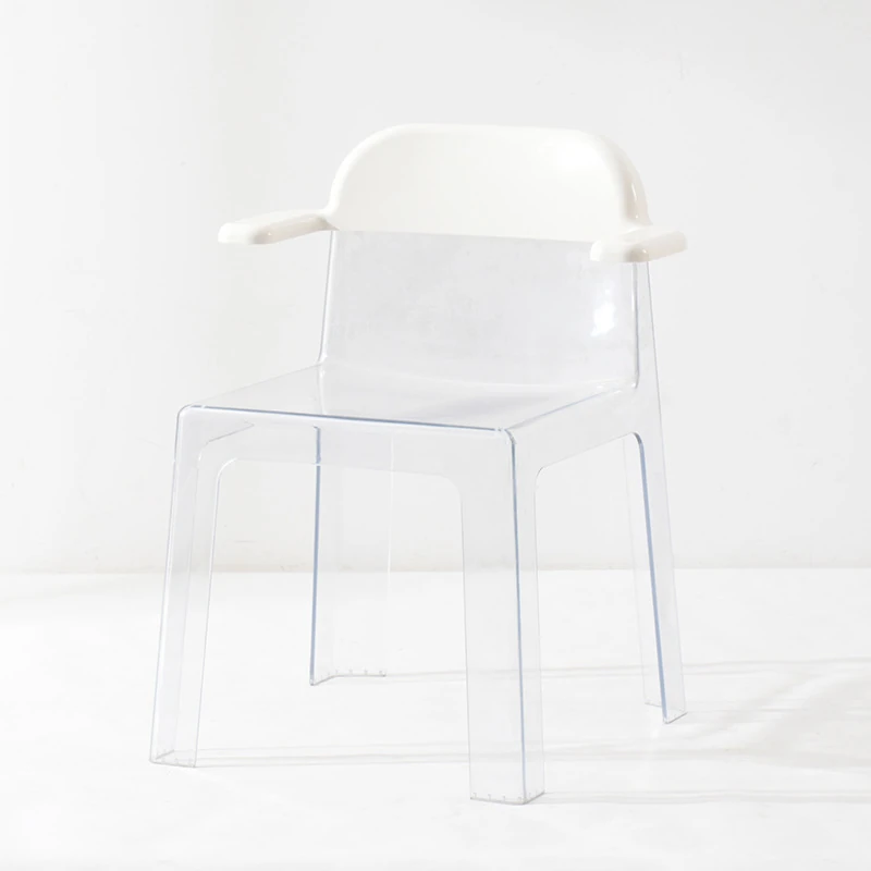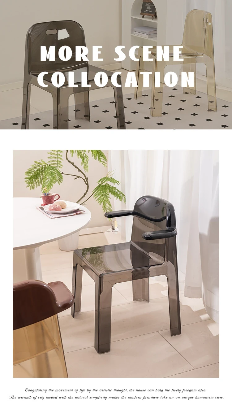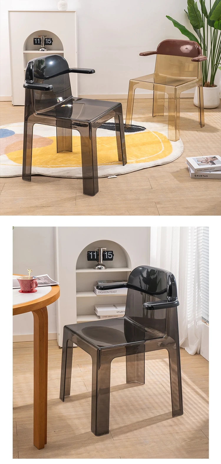 北欧風シンプル透明ダイニングチェア|おしゃれなインスタ映え!リビングや小さなダイニングにもぴったりな肘付き&背もたれ付きの快適なリラックスチェア!