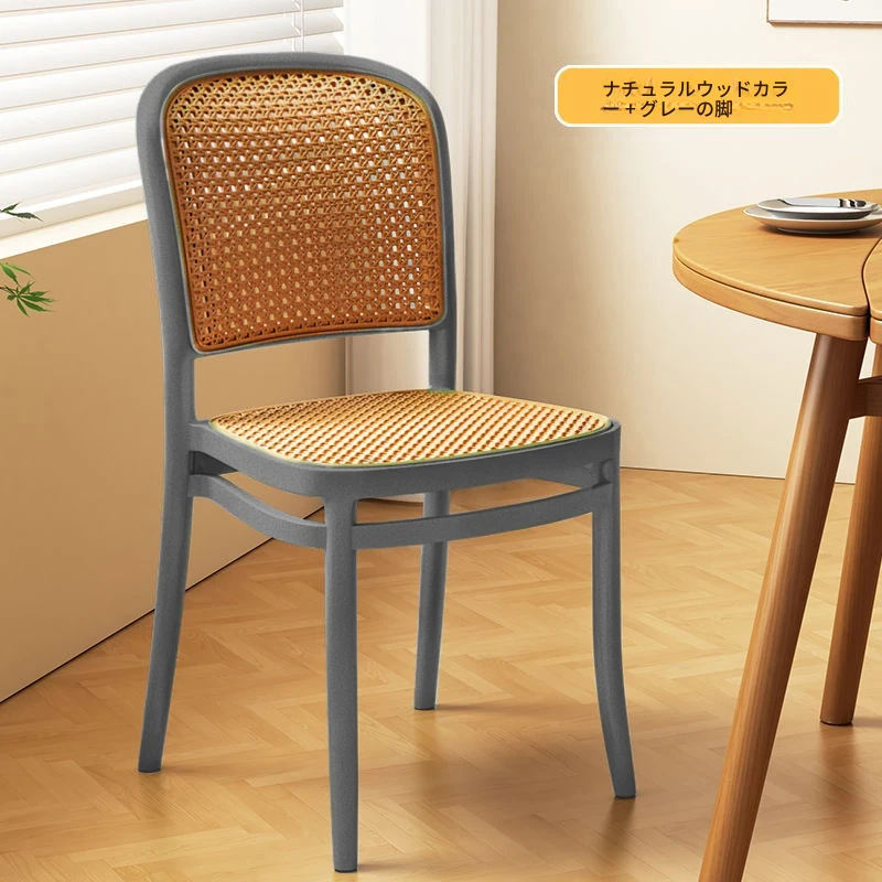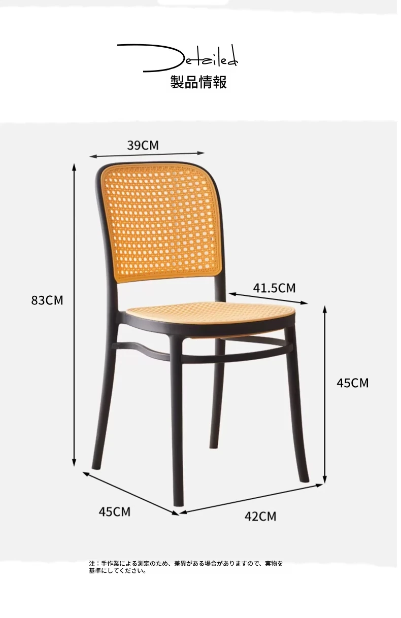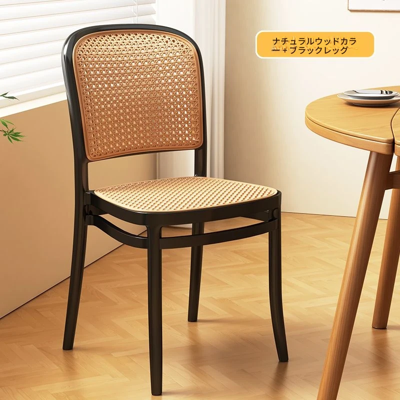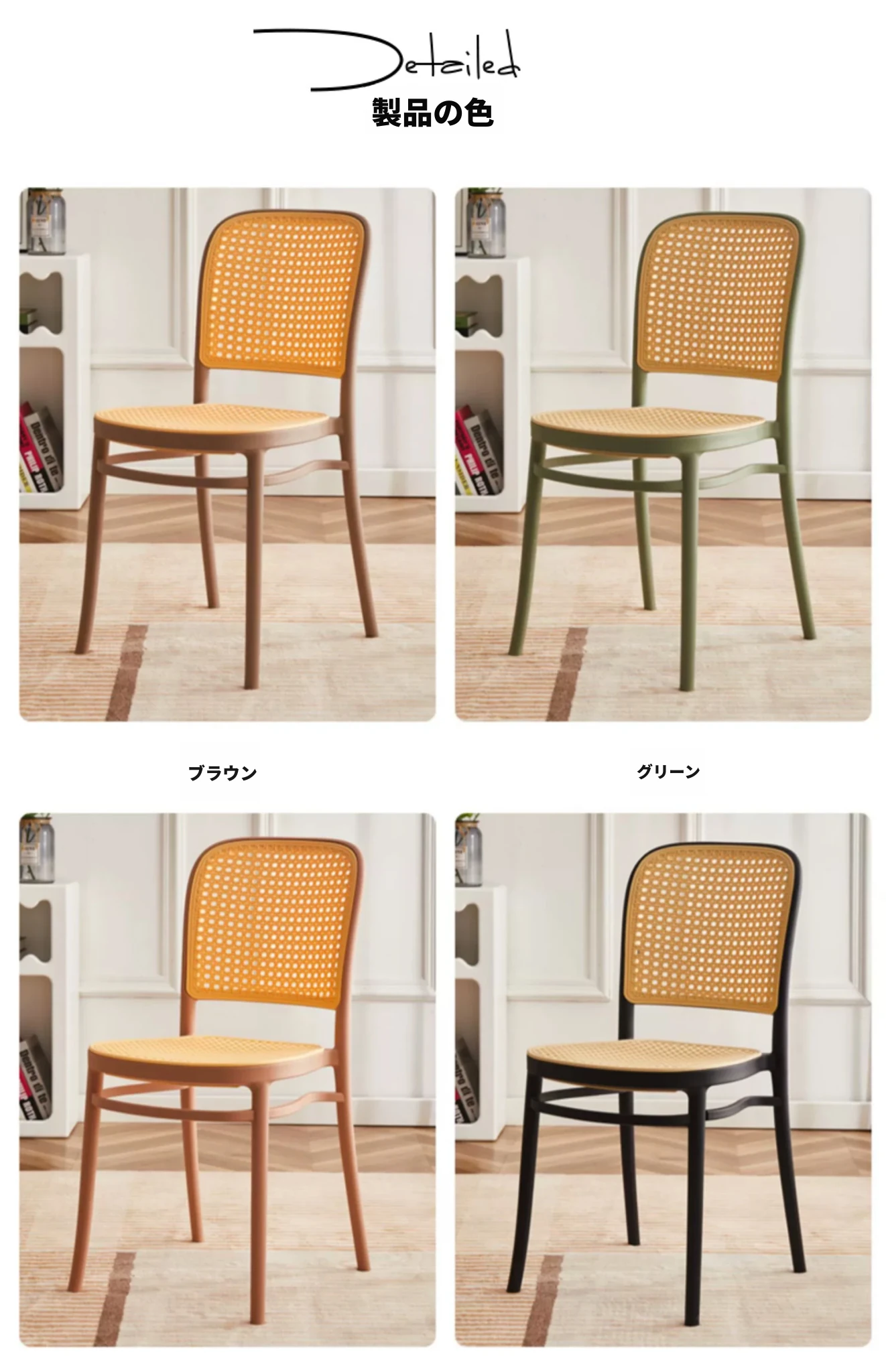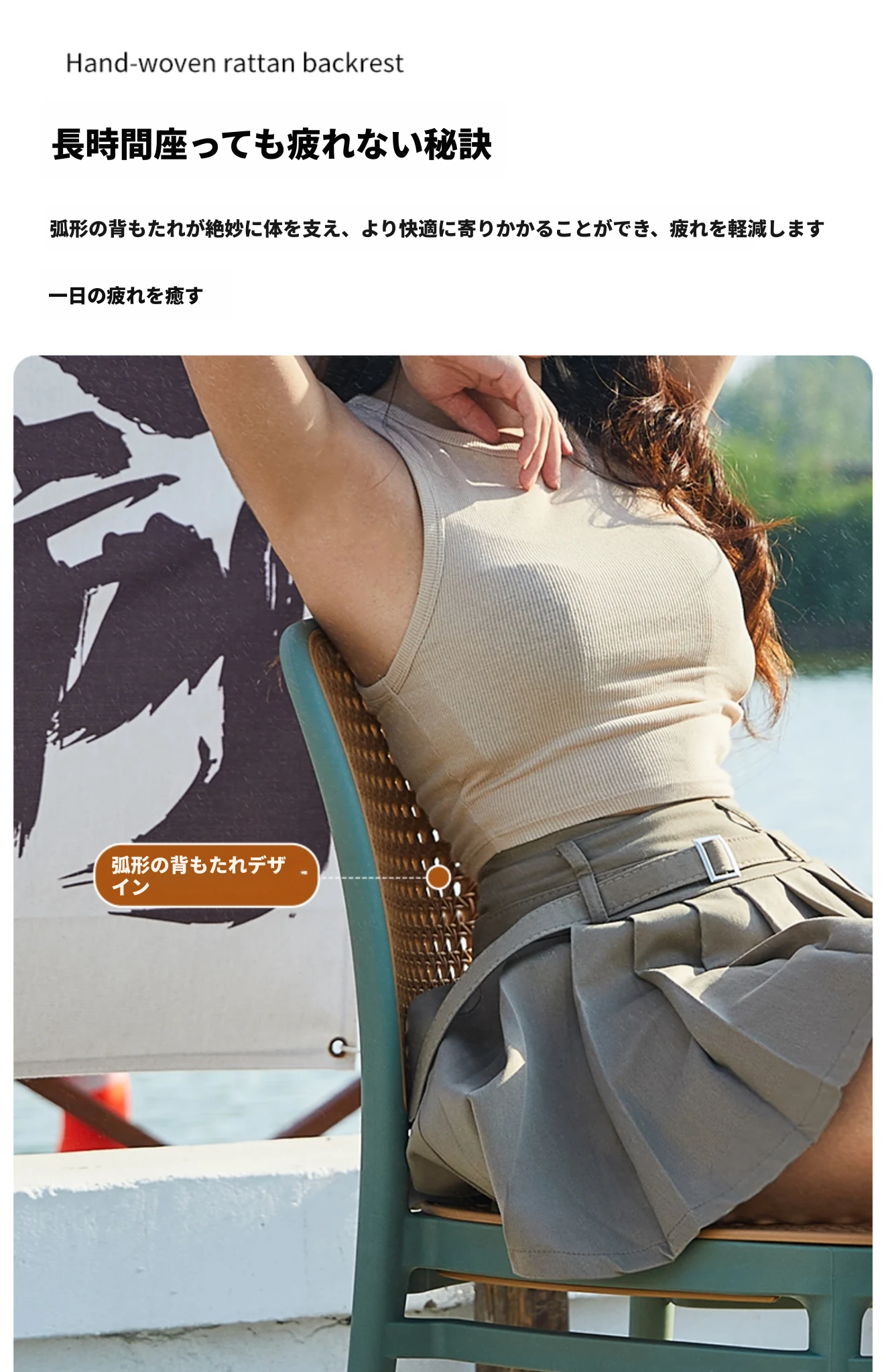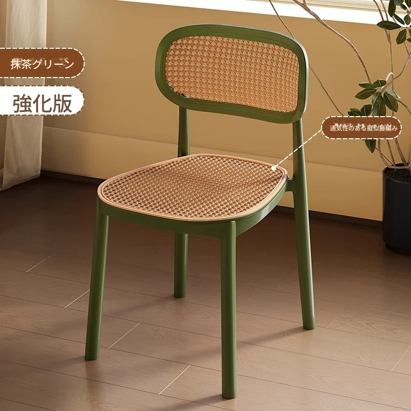 北欧風シンプルデザインの屋外用プラスチック製ダイニングチェア - スタッキング可能で、快適な背もたれ付き!おしゃれなラタン風デザインで、家庭やカフェにぴったり!