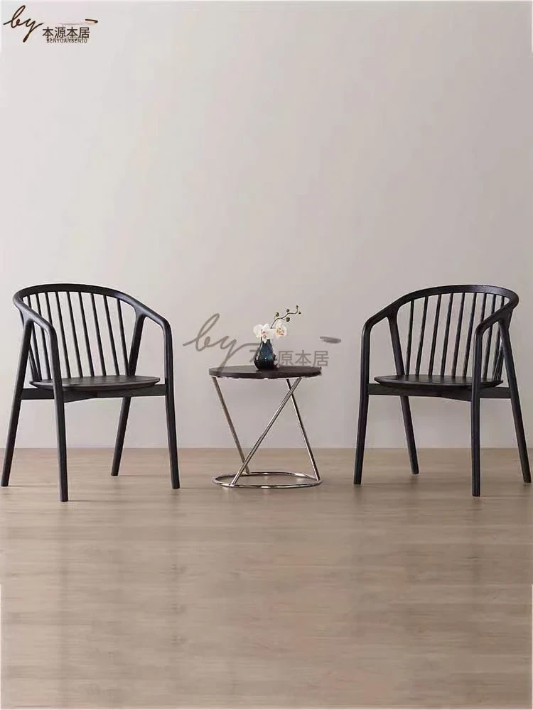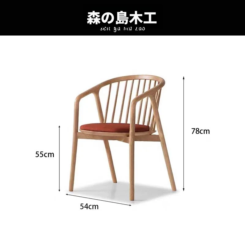 北欧スタイルの無垢材ダイニングチェア|茶椅子・ビジネスオフィス・会議用・ラウンジ・ホテル用リラックスチェア|家庭用デスクチェア・背もたれ付きで快適な座り心地を実現!