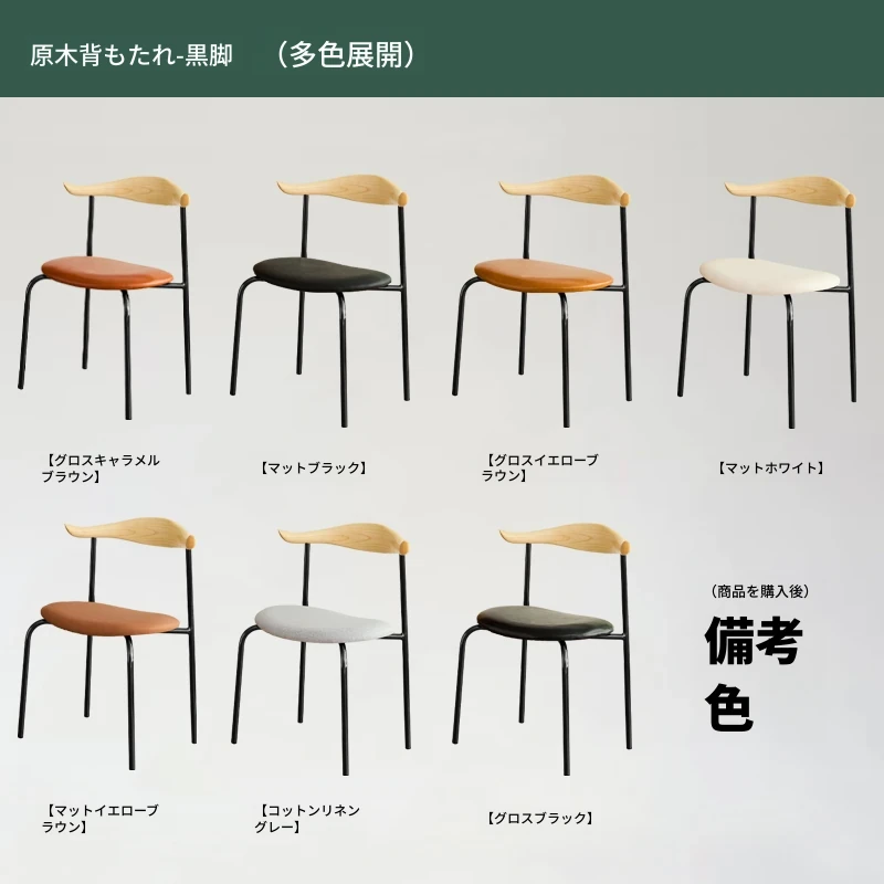 ナチュラルウッド色の無垢材背もたれ-黒脚(クッション色の備考)