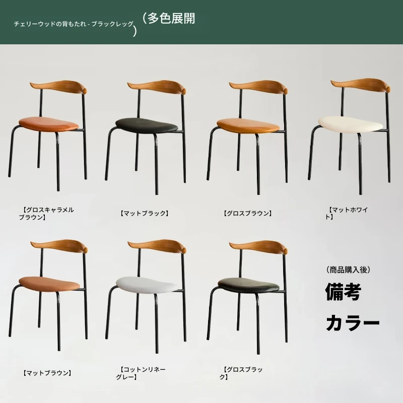 チェリー色の無垢材背もたれ-黒脚(クッション色の備考)