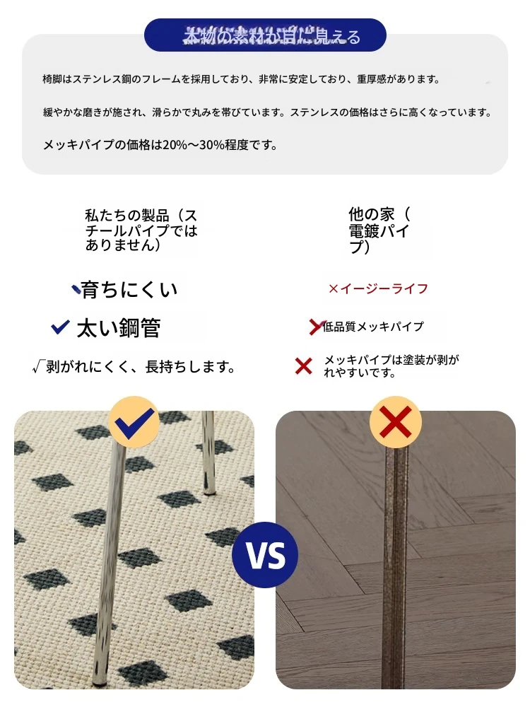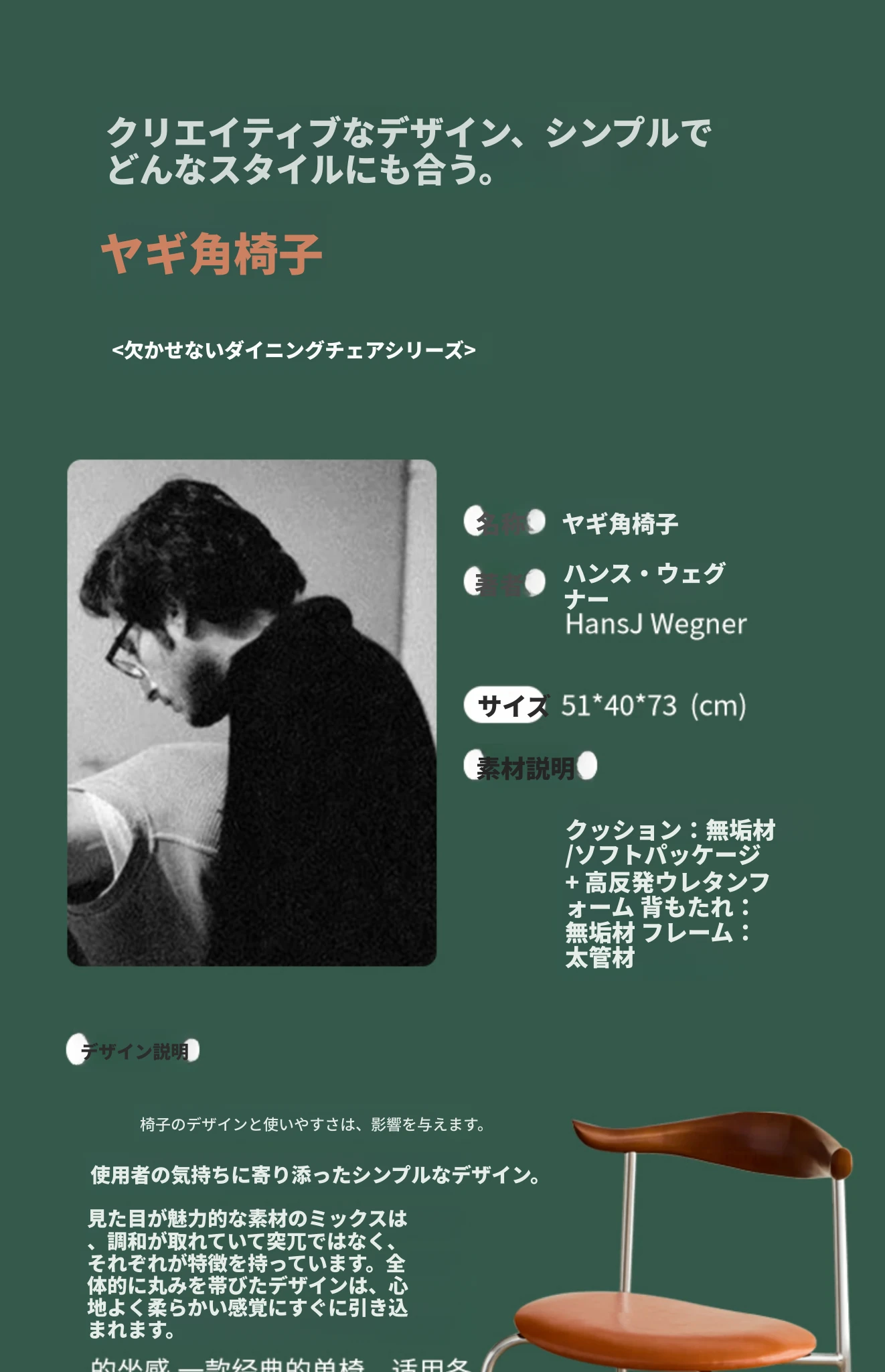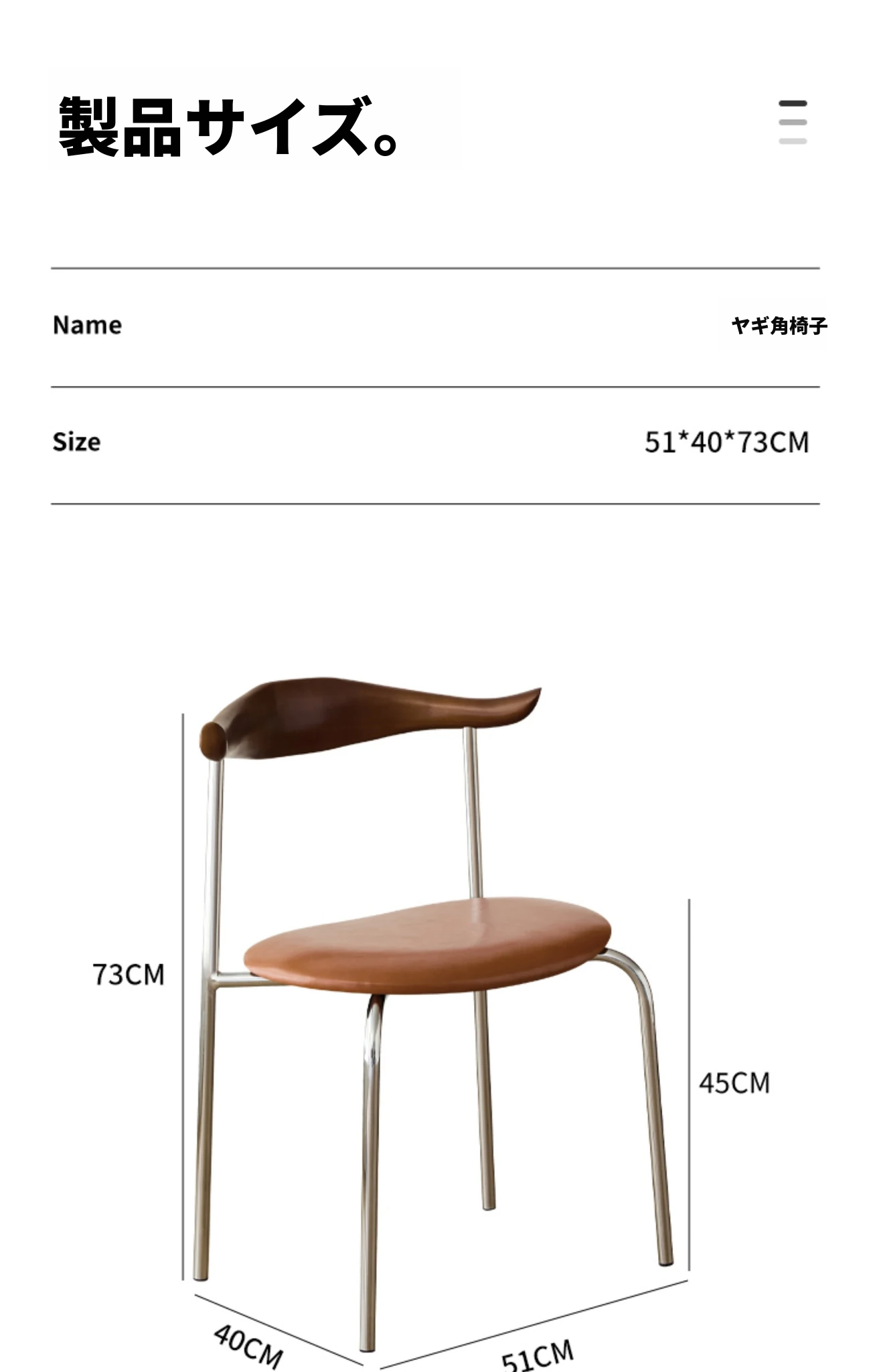 浅い木目色の無垢材背もたれ-マットな黄褐色クッション-銀脚
