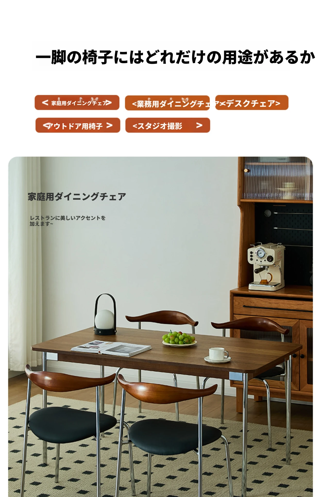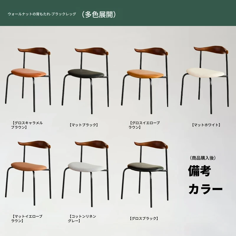 ウォールナット色の無垢材背もたれ-黒脚(クッション色の備考)