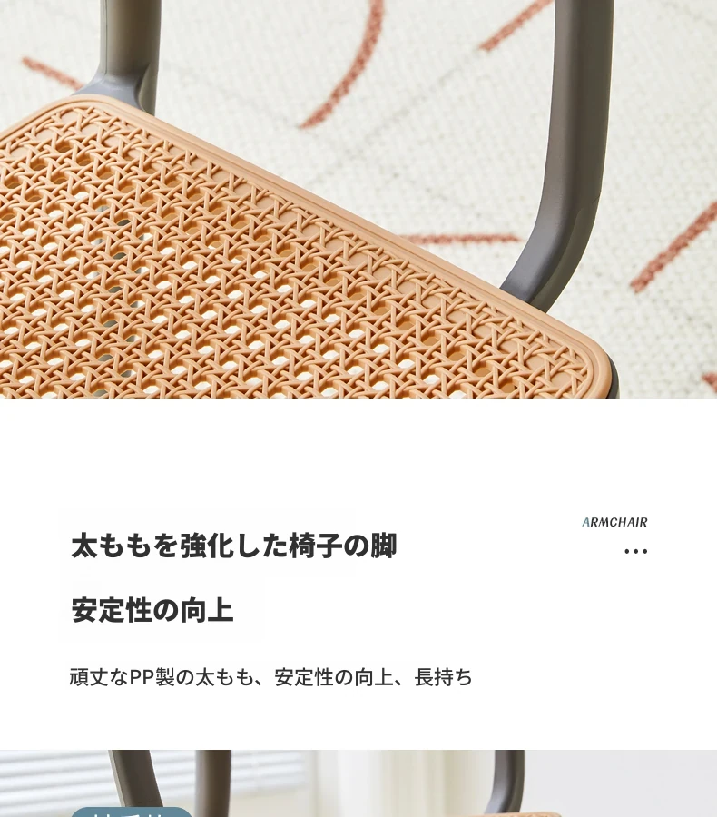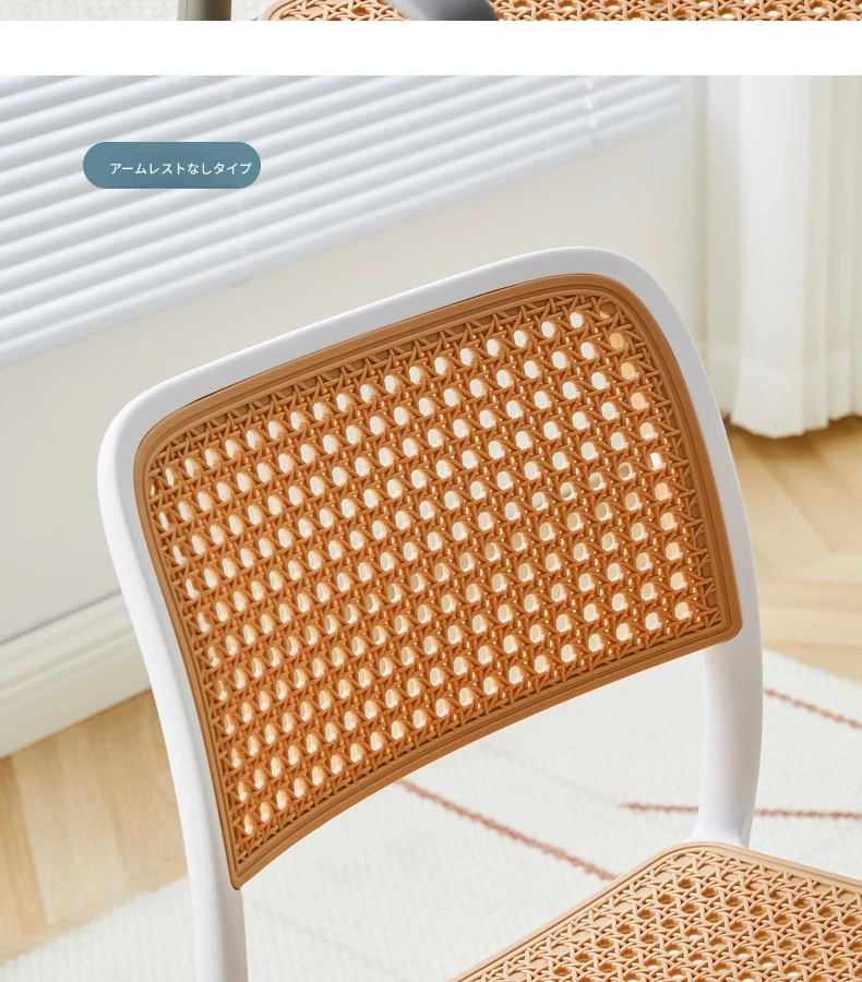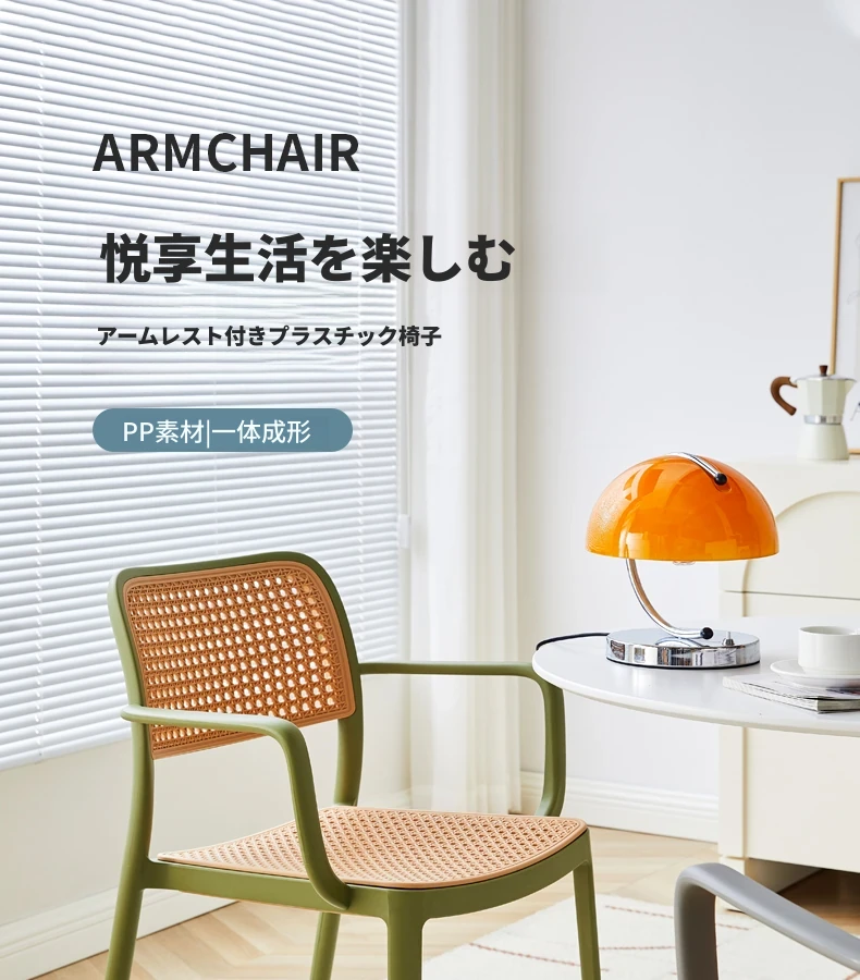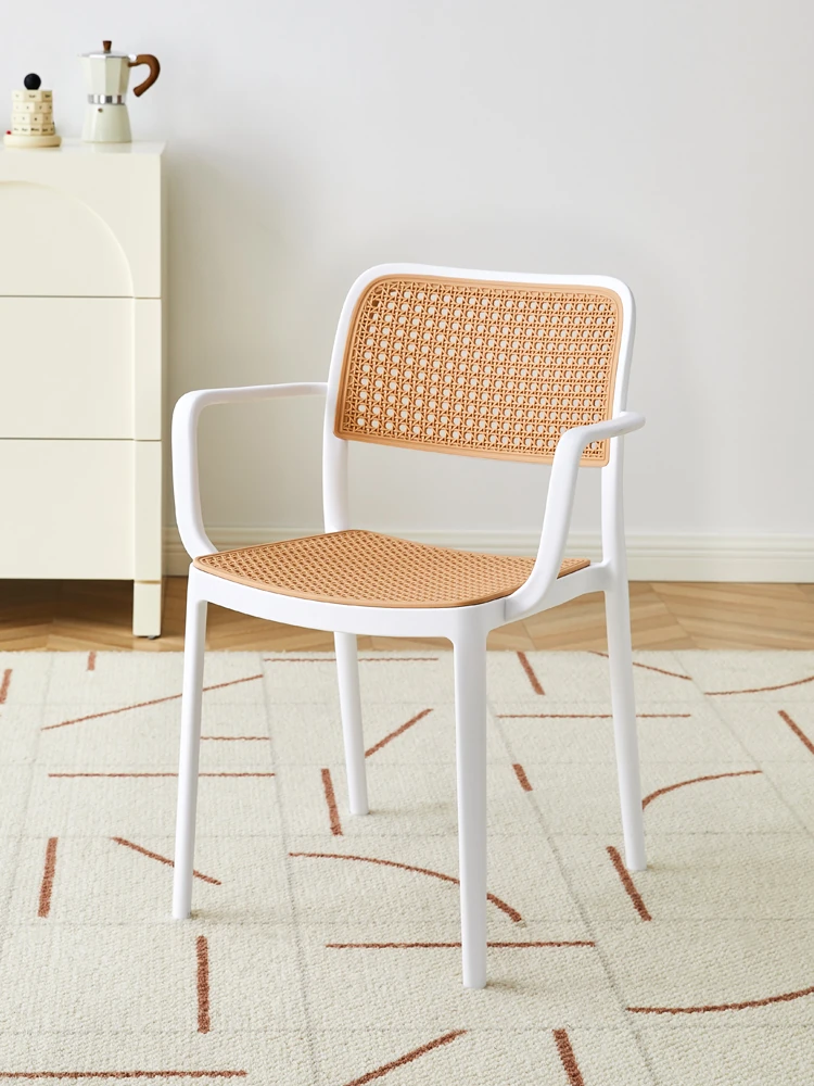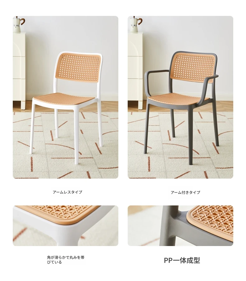 北欧風のスタイリッシュなダイニングチェア|人気のプラスチック製ラタンアームチェア|モダンでシンプル|小さなお部屋にもぴったりな背もたれ付き|食卓を華やかに演出します!