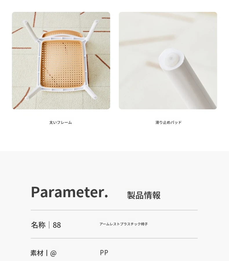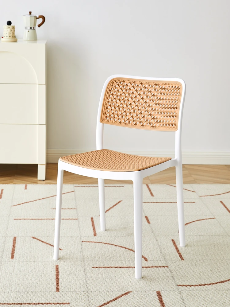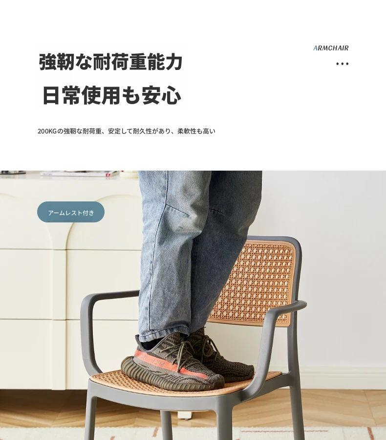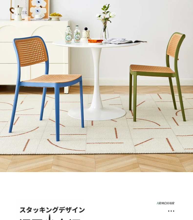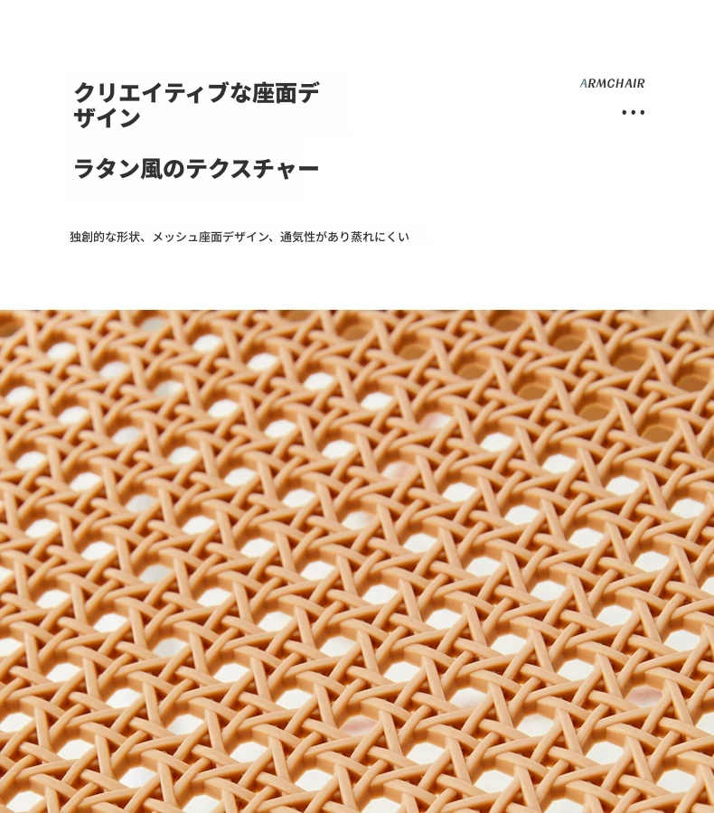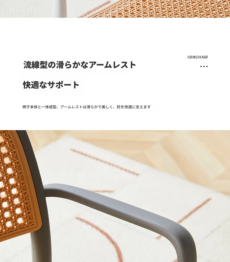 北欧風のスタイリッシュなダイニングチェア|人気のプラスチック製ラタンアームチェア|モダンでシンプル|小さなお部屋にもぴったりな背もたれ付き|食卓を華やかに演出します!