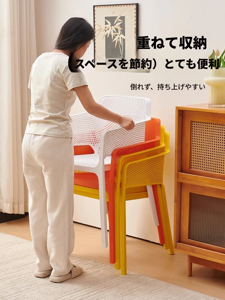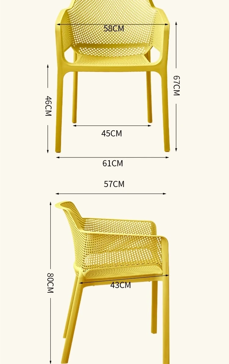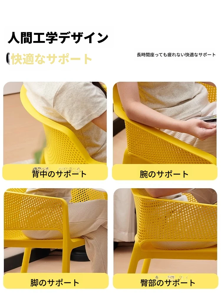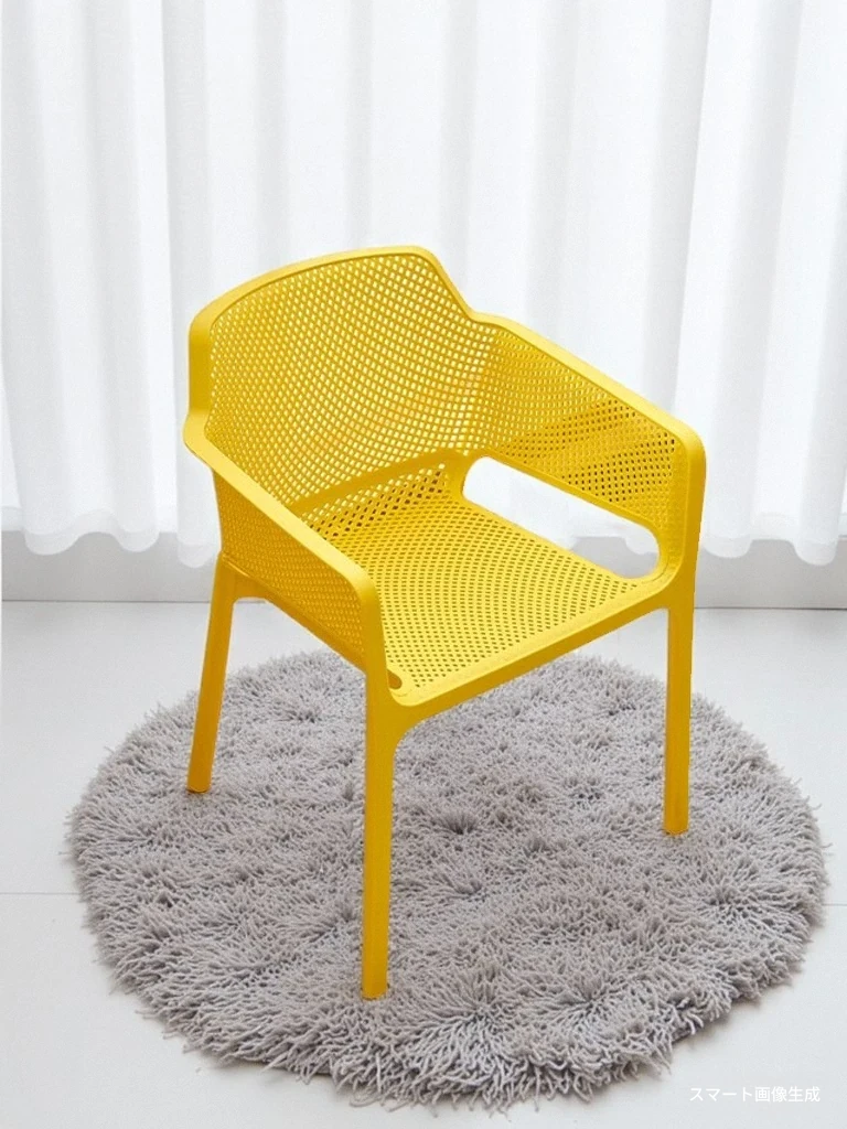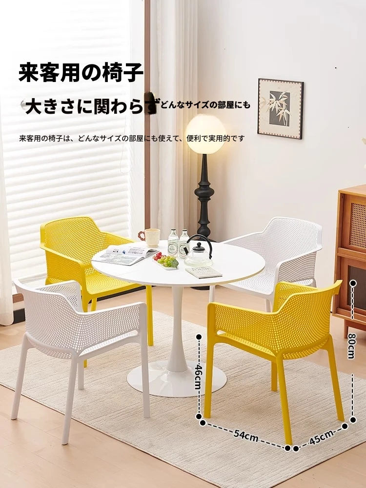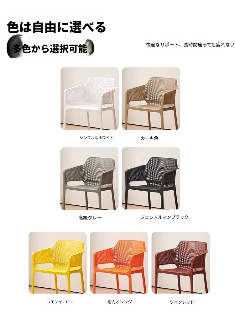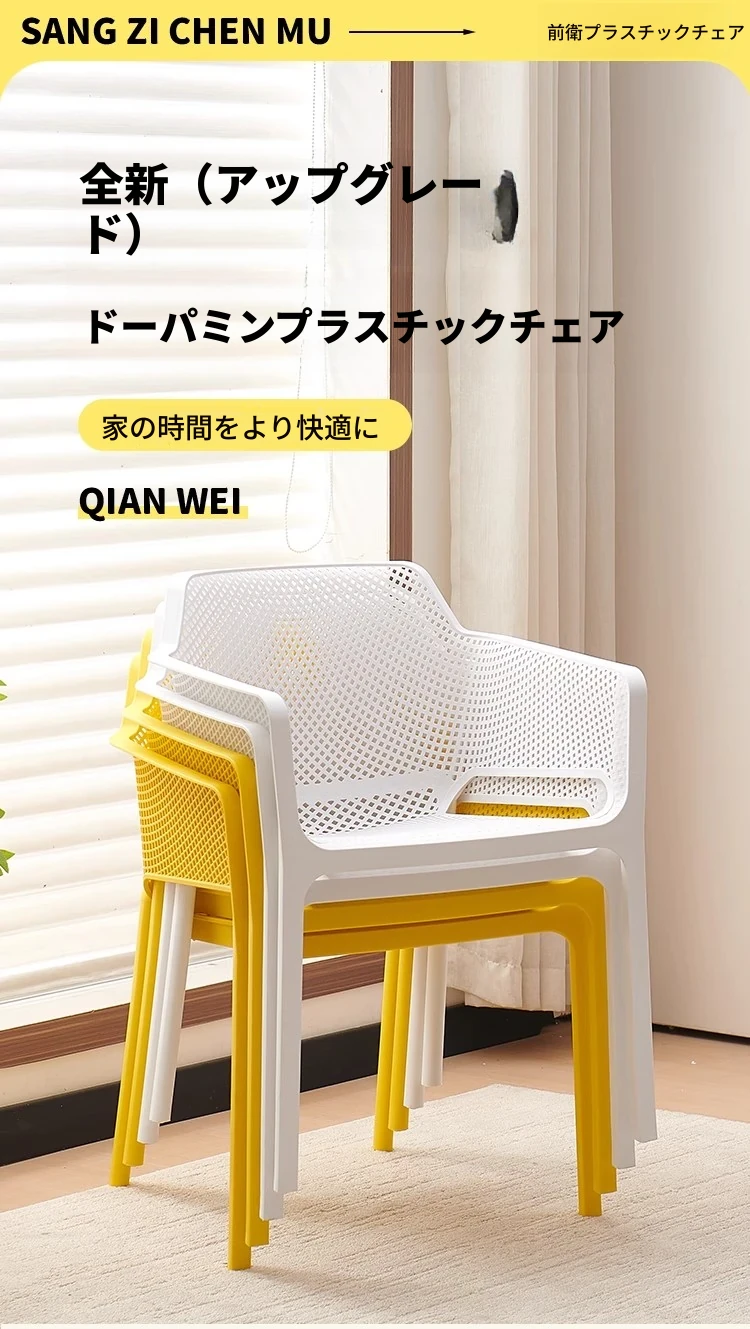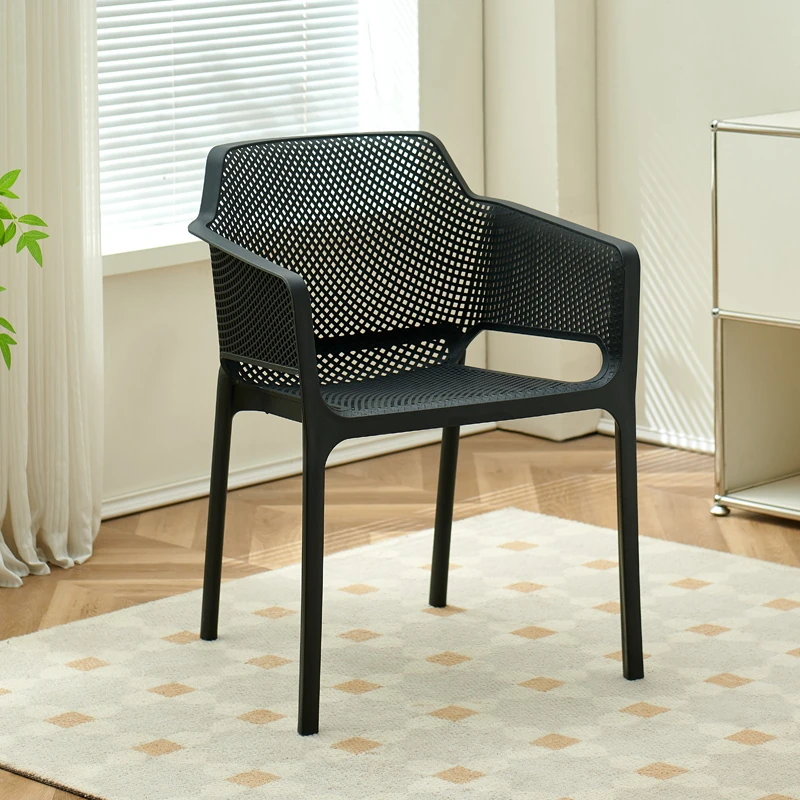 北欧風デザインのプラスチック製厚手ダイニングチェア - 家庭用、アウトドアにも最適!背もたれ付き、肘掛け付きで快適な座り心地。庭やテラスにぴったりなスタイリッシュな空洞デザイン。