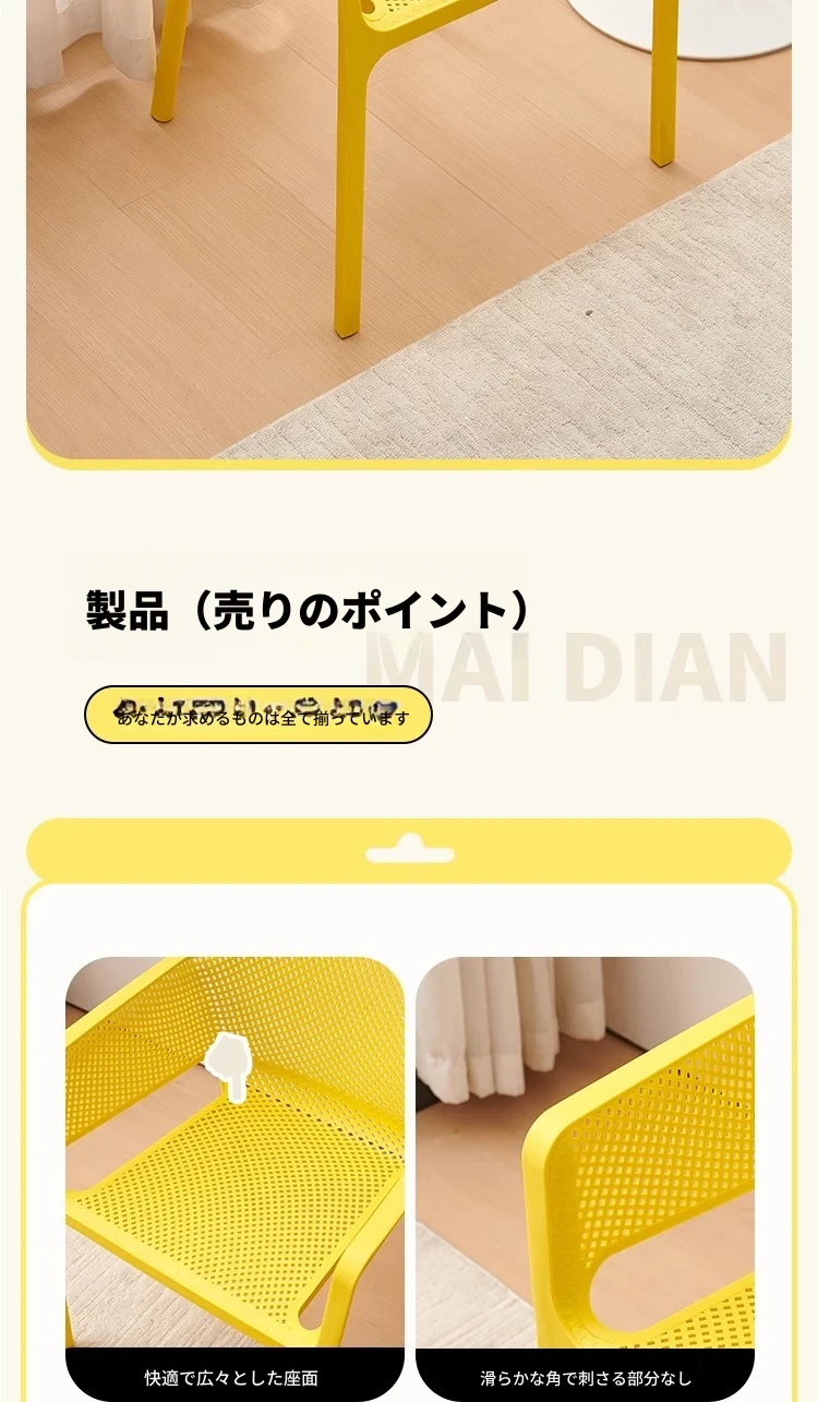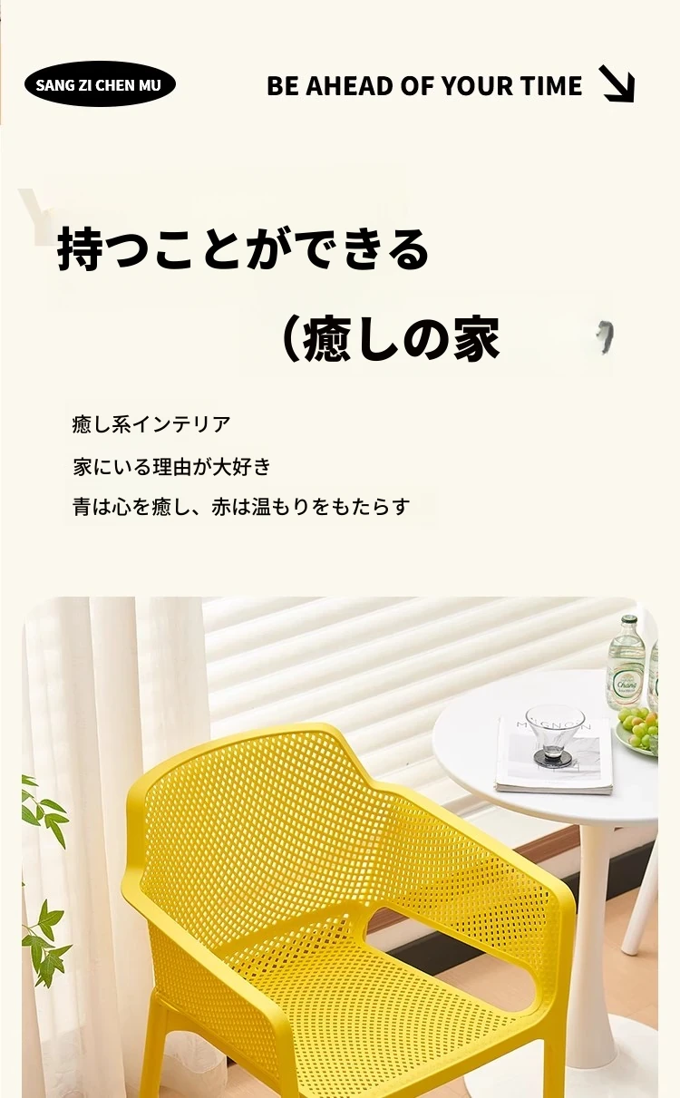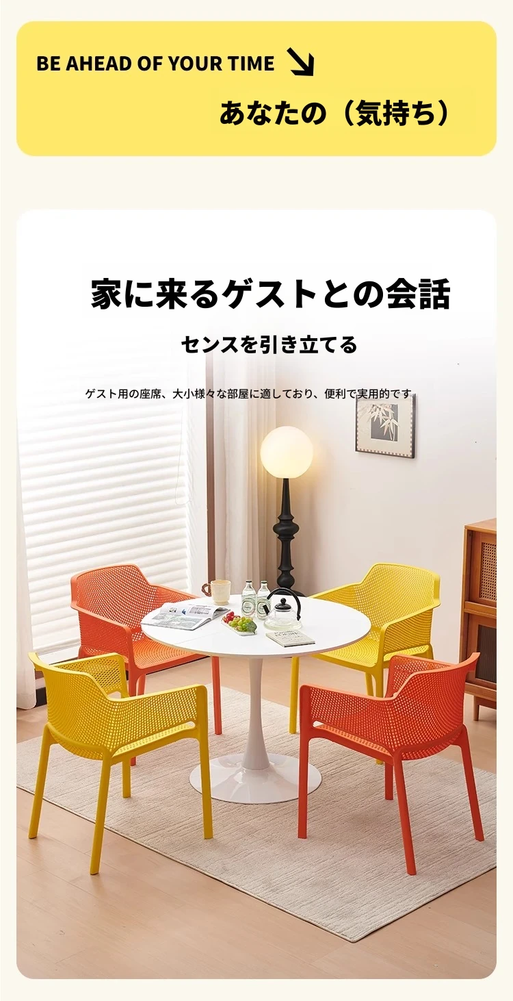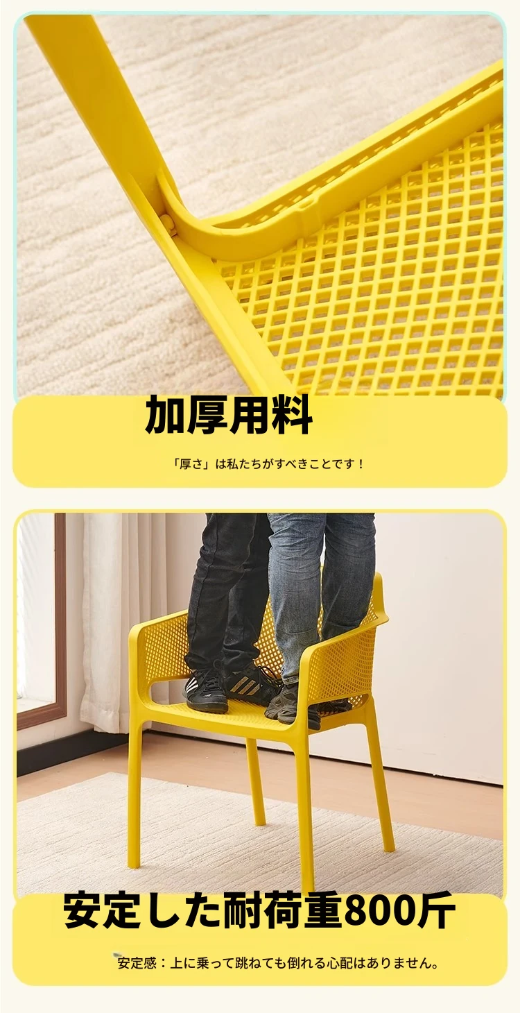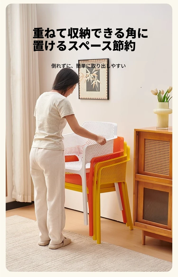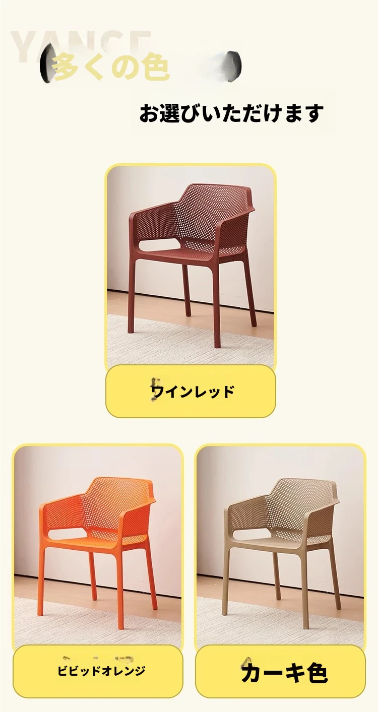 北欧風デザインのプラスチック製厚手ダイニングチェア - 家庭用、アウトドアにも最適!背もたれ付き、肘掛け付きで快適な座り心地。庭やテラスにぴったりなスタイリッシュな空洞デザイン。