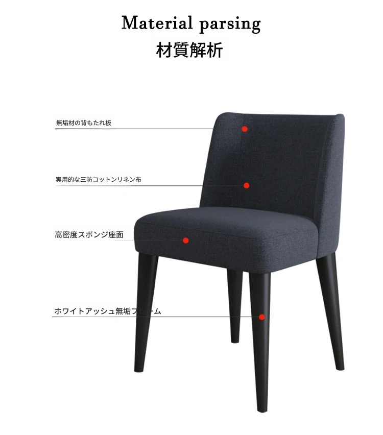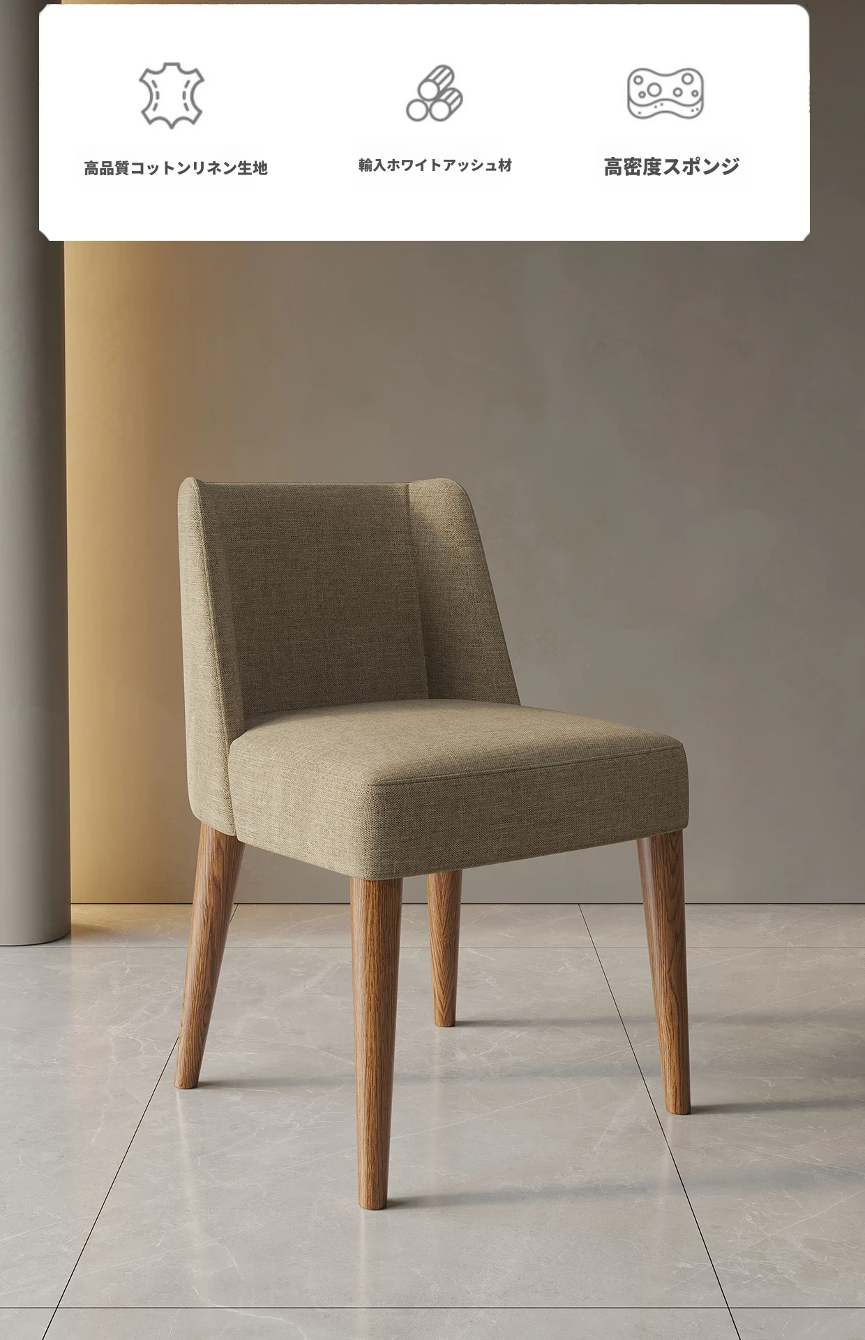北欧スタイルの高級感漂う無垢材と布製のダイニングチェア。家庭用・ホテル・打ち合わせにも最適!シンプルモダンなデザインで、化粧台用としても使える快適な座り心地をお楽しみください。