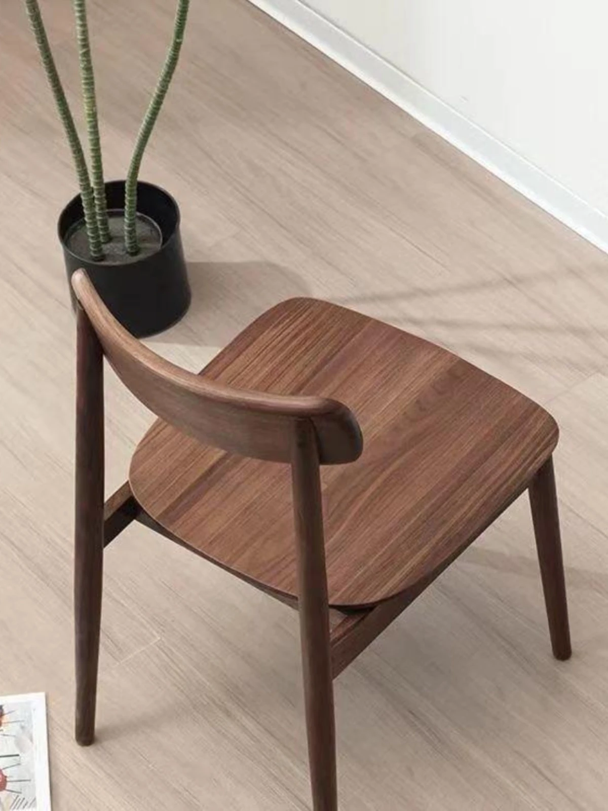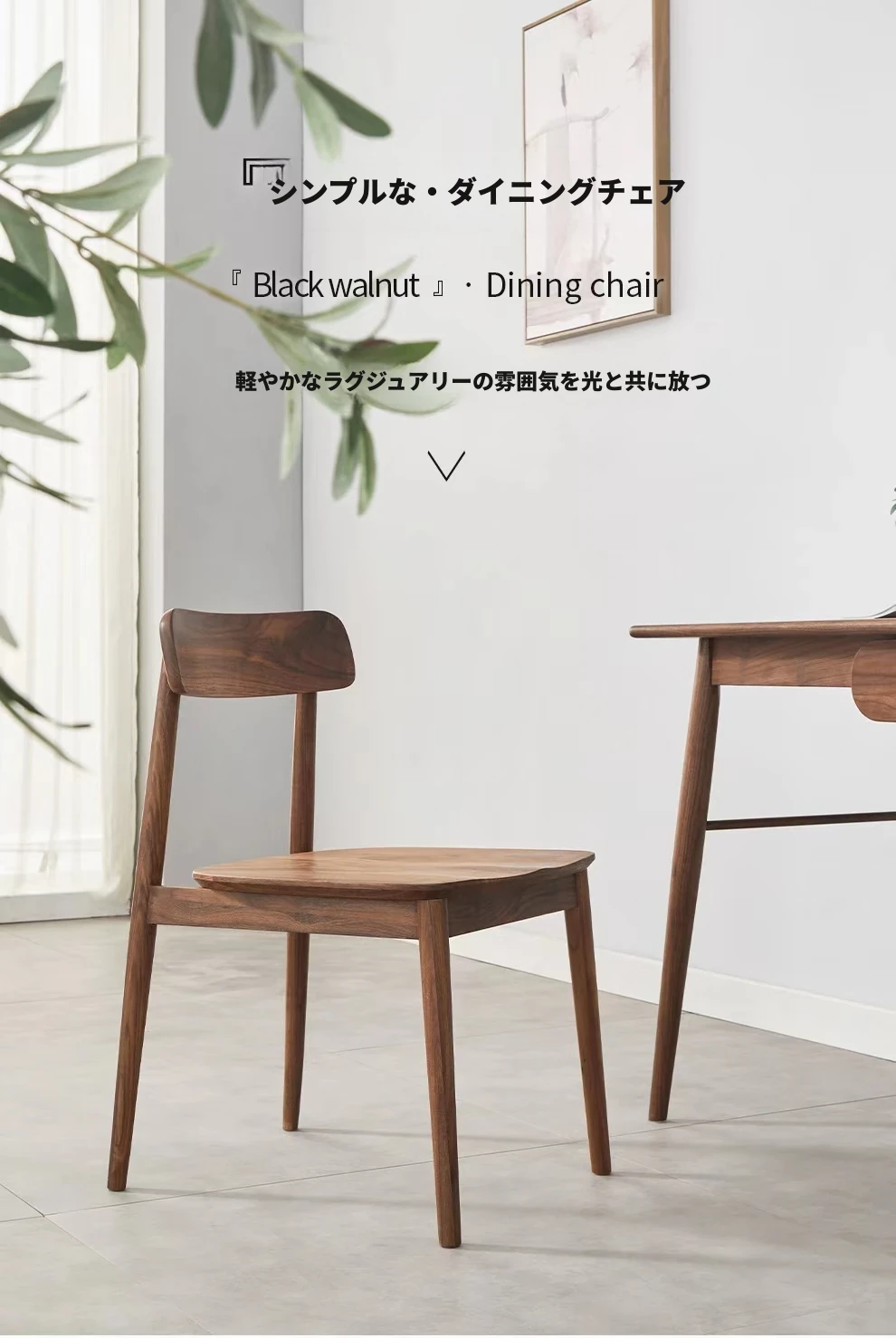 北米産ブラックウォールナットのダイニングチェア|グリーンチェア|家庭用の背もたれ付きデスクチェア|北欧ミニマリズムスタイル|小さなスペースに最適なリラックス実木チェア