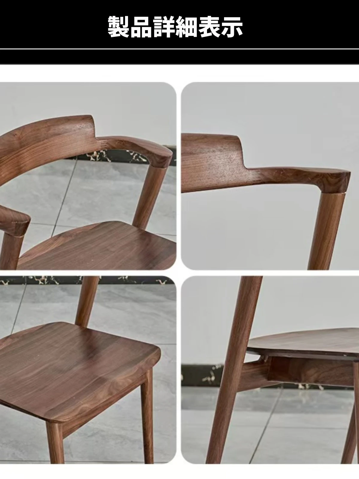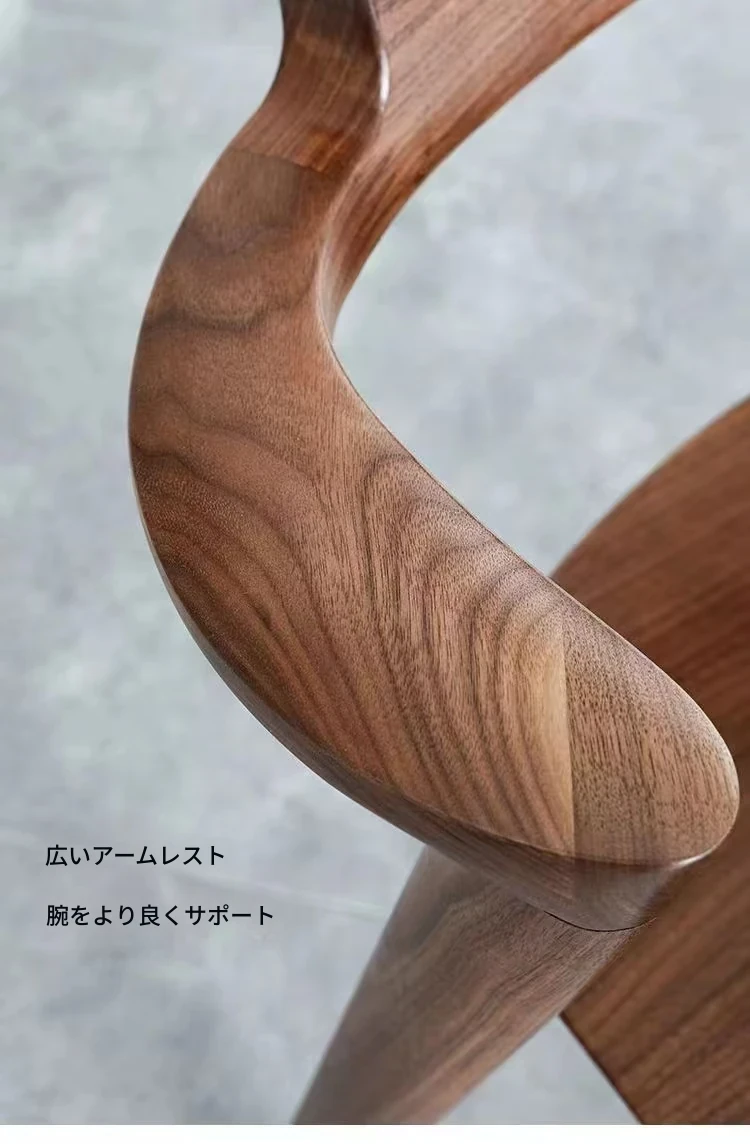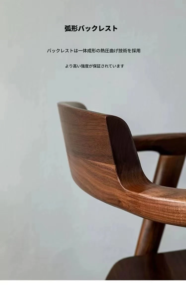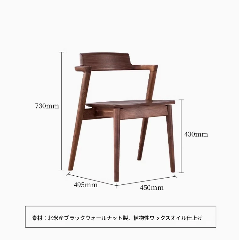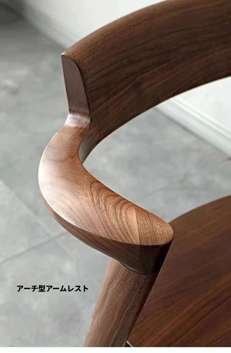 北米産ブラックウォールナットのダイニングチェア|伝統的な榫接ぎ構造|コンパクトな島型デザイン|日本風のショートアームチェア|全て無垢材使用|快適な背もたれ付きでおしゃれな空間を演出!