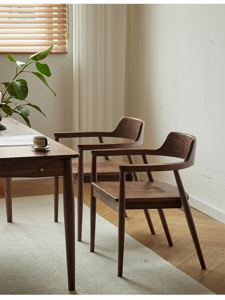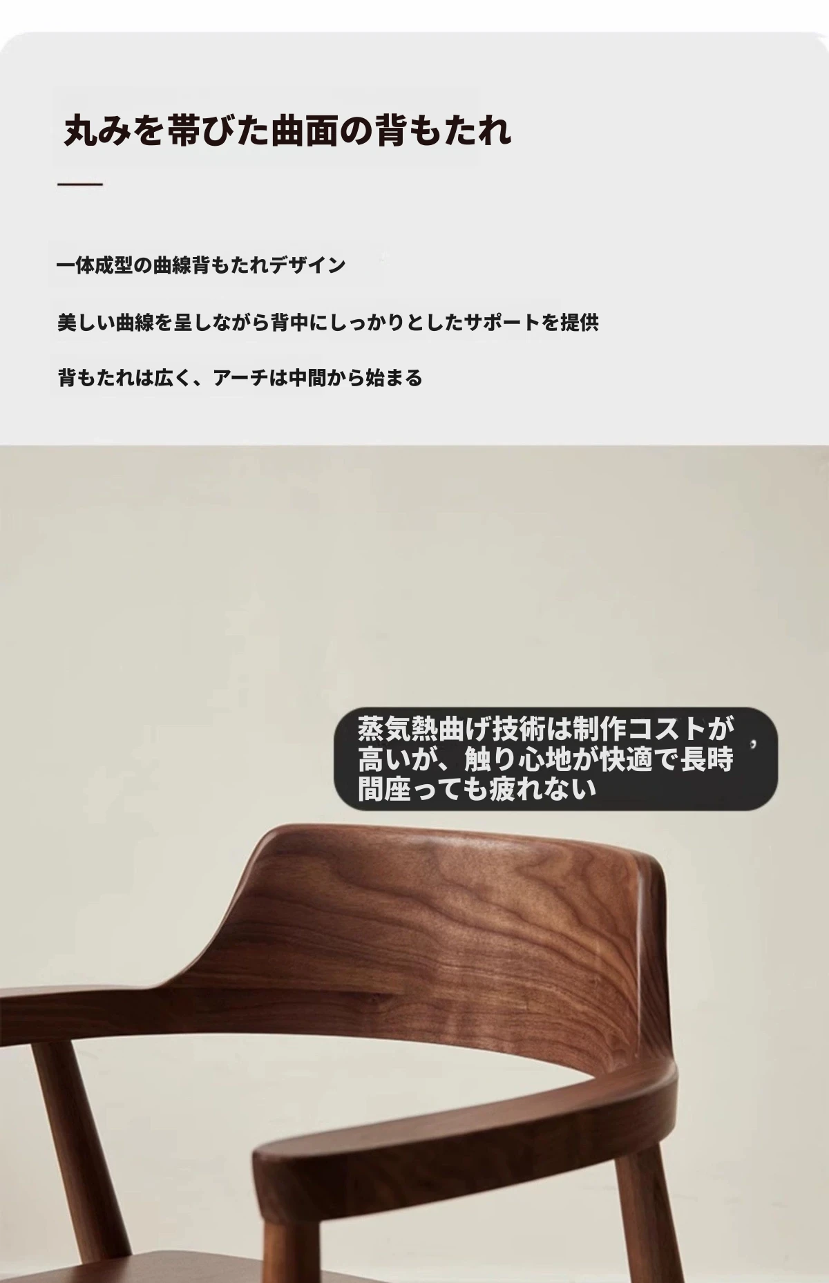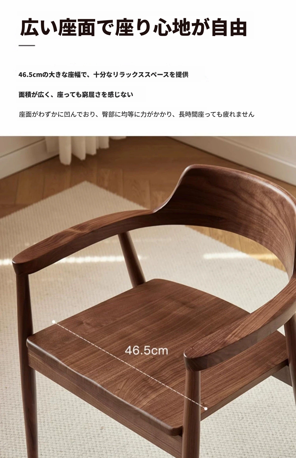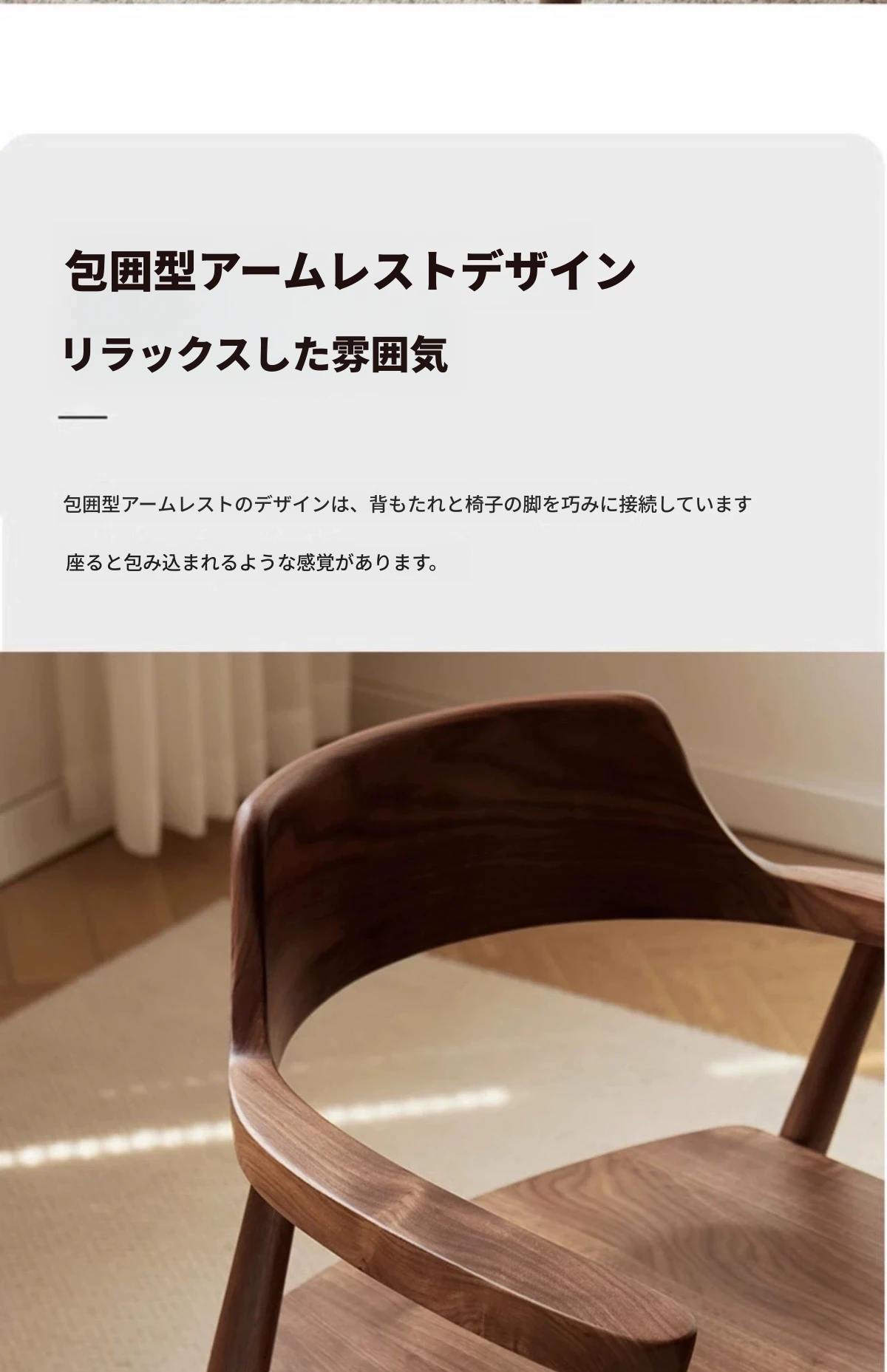 北米産ブラックウォールナットの実木製ダイニングチェア|広島チェア|家庭用アームレスト付きリラックス書籍チェア|北欧スタイルのティータイムにぴったりな背もたれ付き椅子