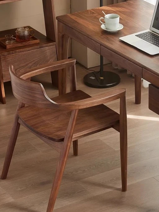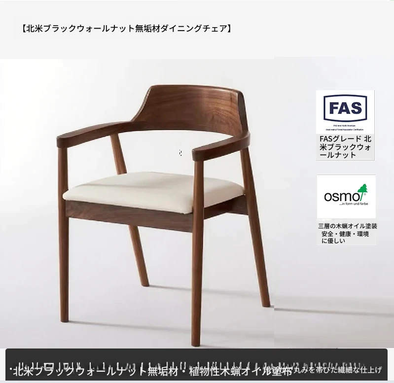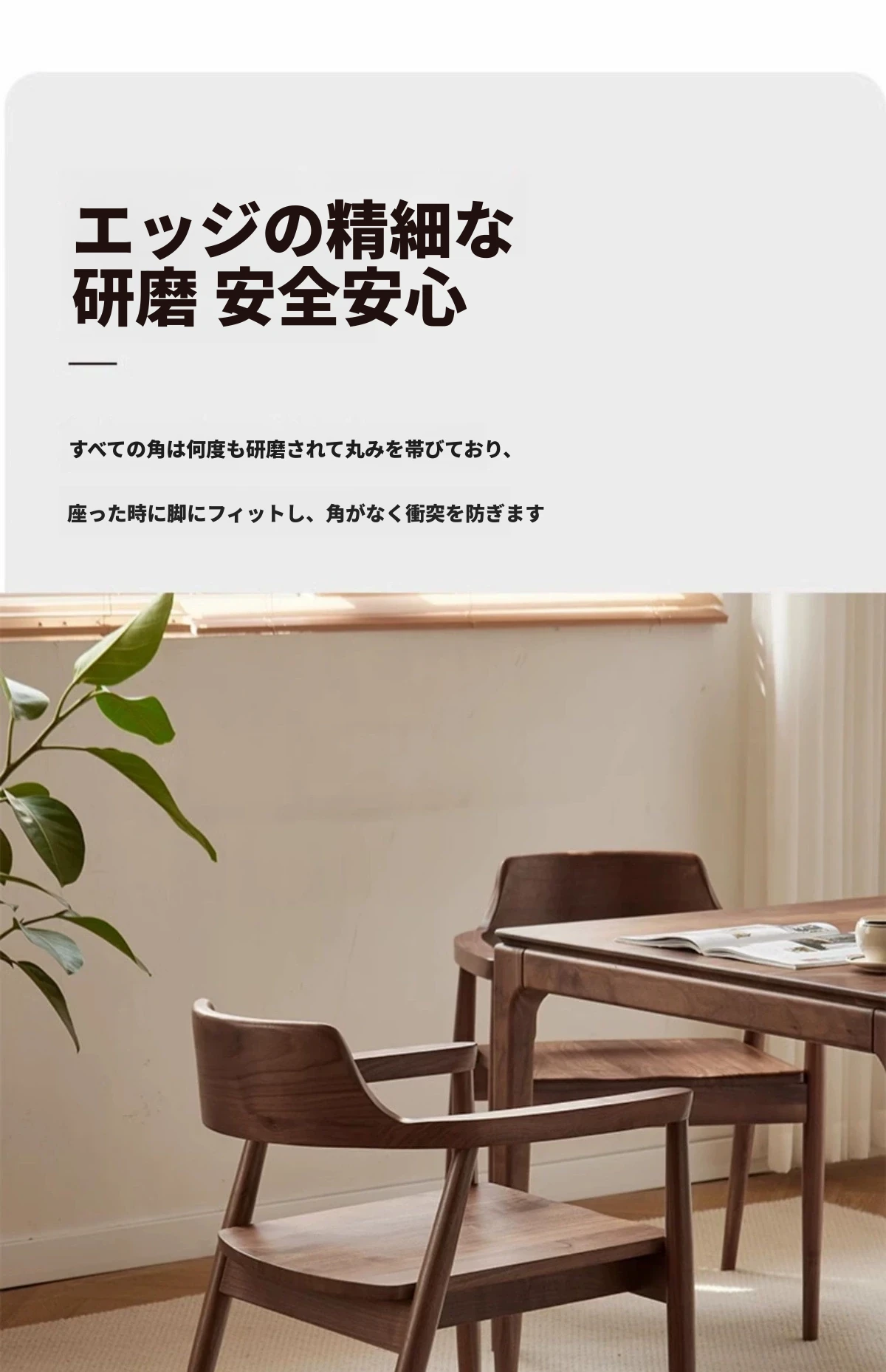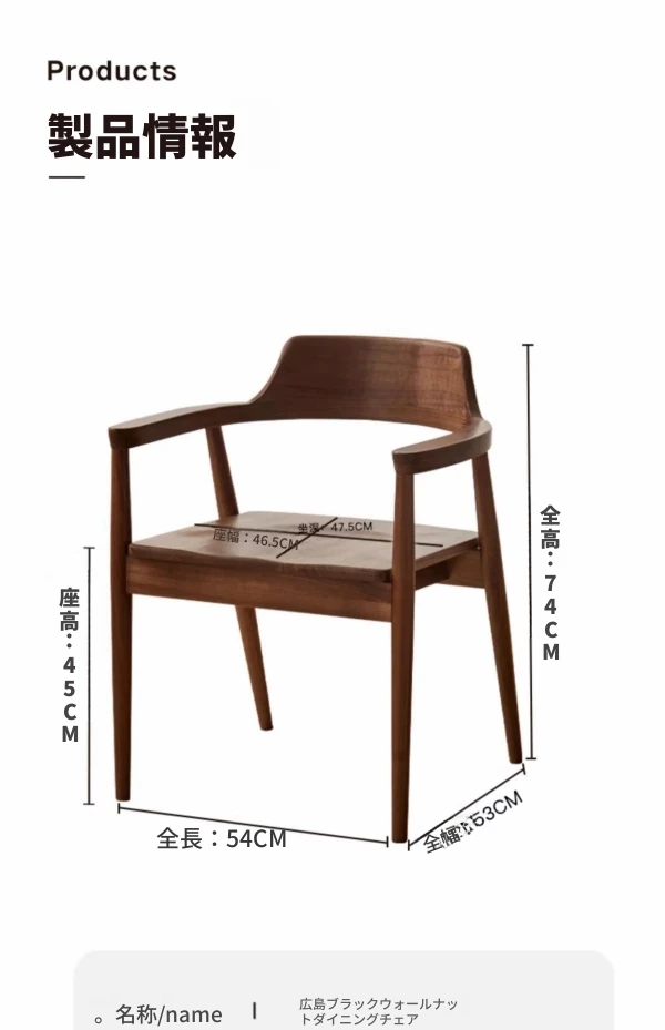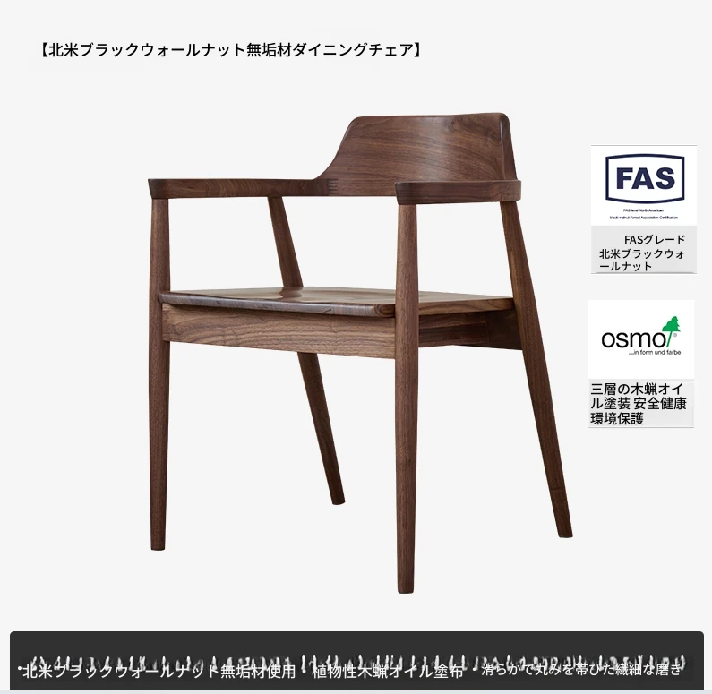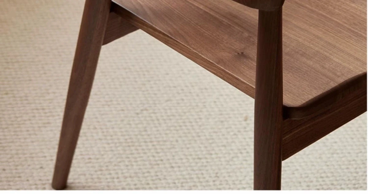 北米産ブラックウォールナットの実木製ダイニングチェア|広島チェア|家庭用アームレスト付きリラックス書籍チェア|北欧スタイルのティータイムにぴったりな背もたれ付き椅子