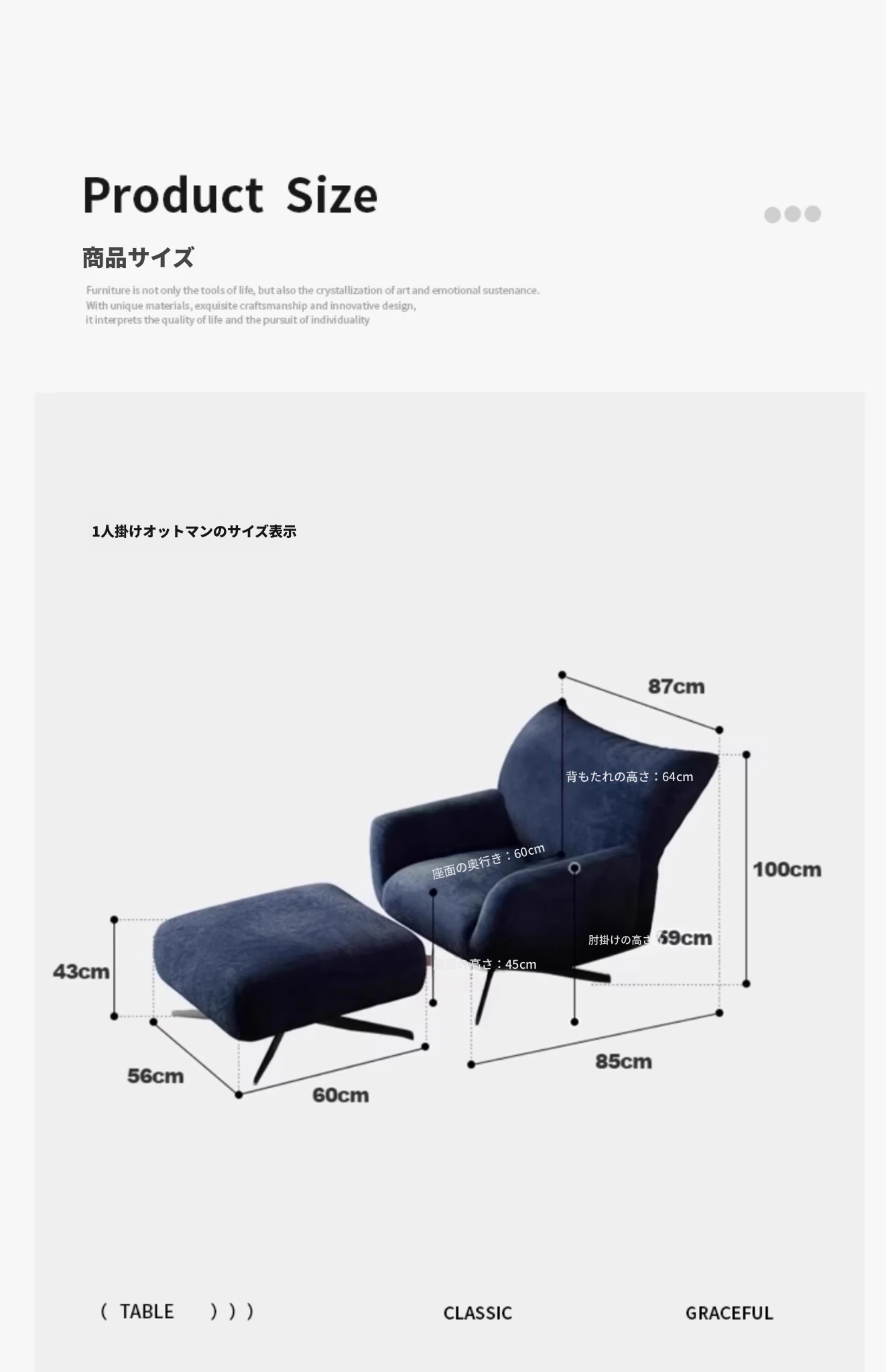 ブラウンブルー【輸入シェニールベルベット】アームチェア+オットマン
