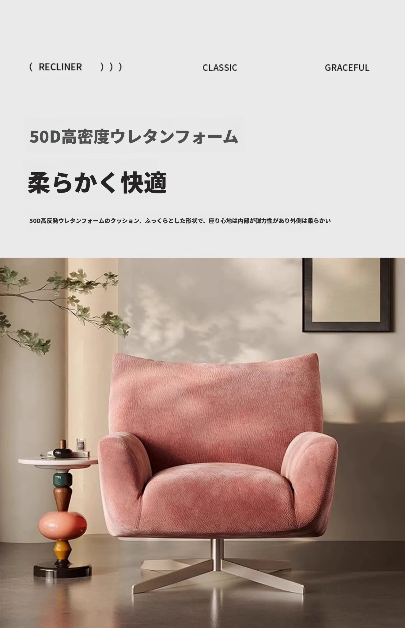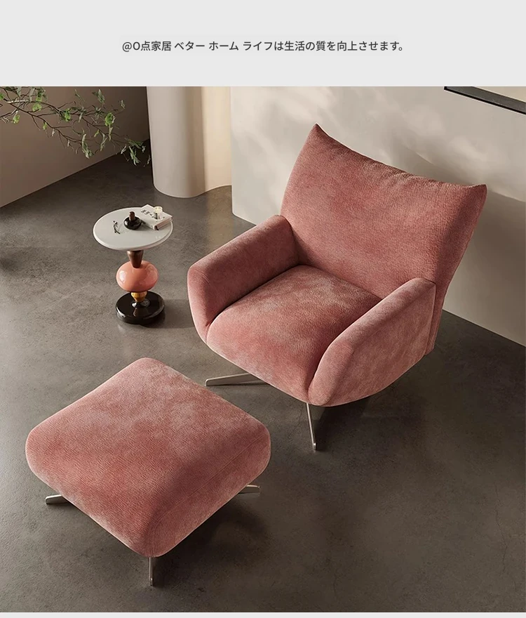 花びら回転ソファチェア 高級本革リクライニングチェア ピンクデザイン バルコニー用 くつろぎのひとときを提供する洗練されたリビングルームアイテム