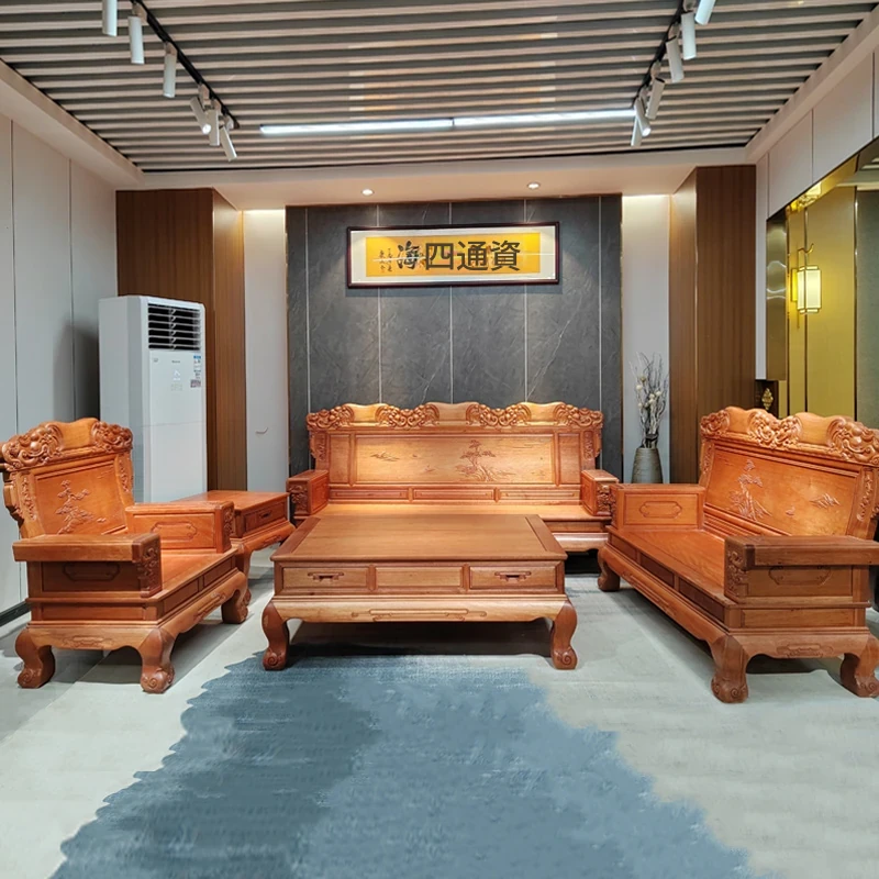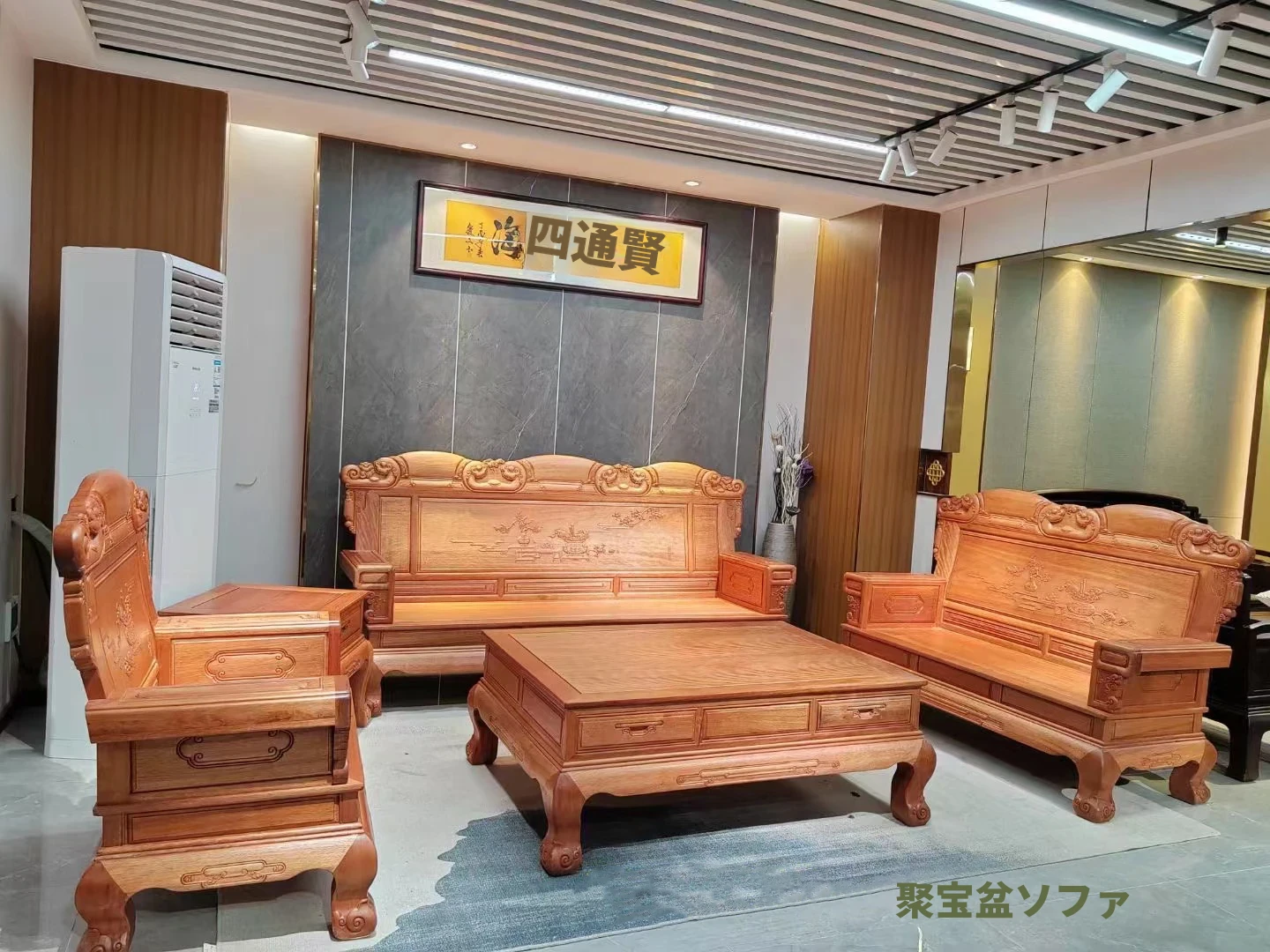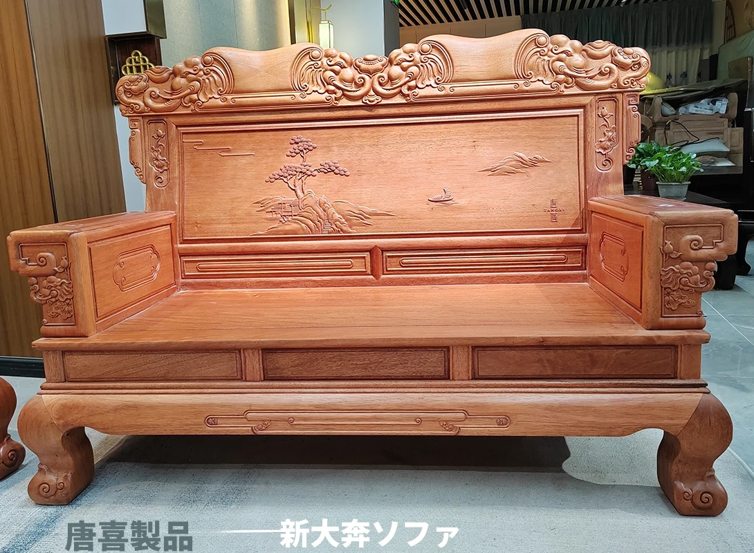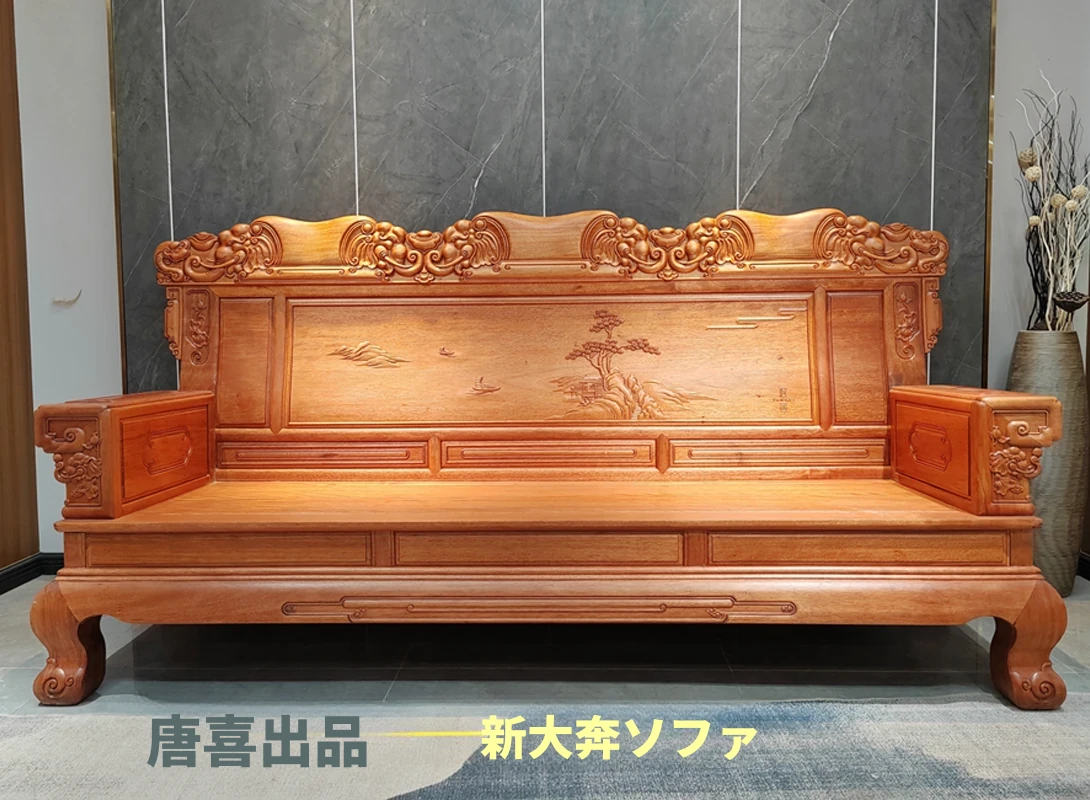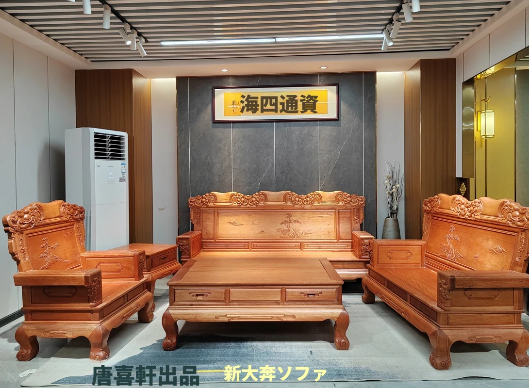 高級紅木大奔ソファー!金花梨木を使用した本格的中式デザイン、耐久性抜群の実木製。菠萝格と大象モチーフのソファ椅子セットで、豪華なリビング空間を演出。送料無料でお届け!