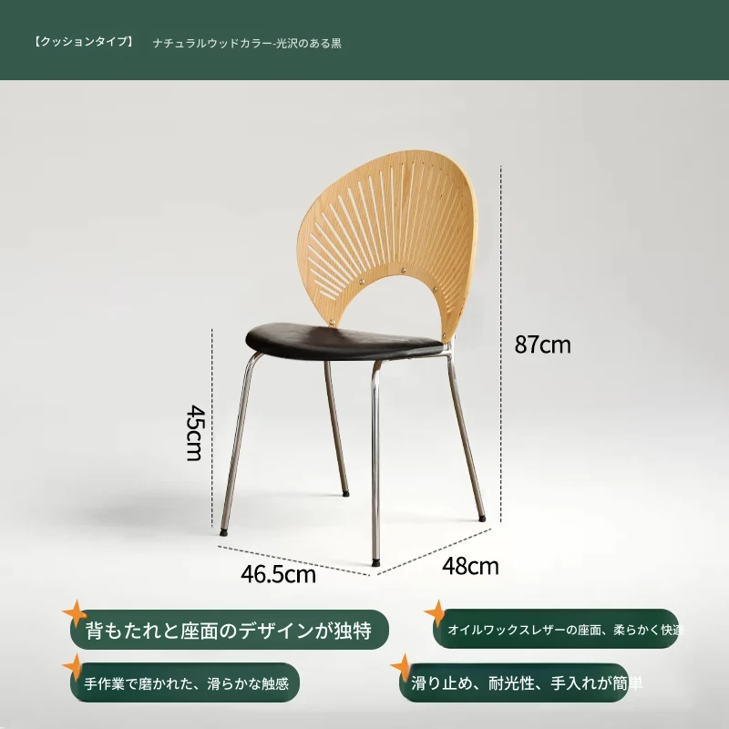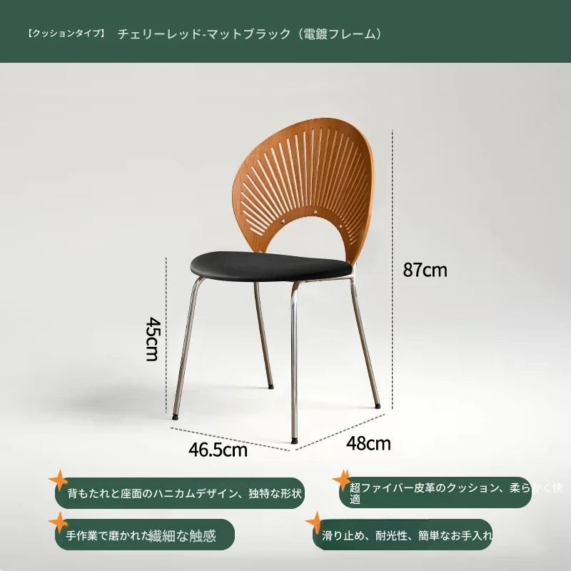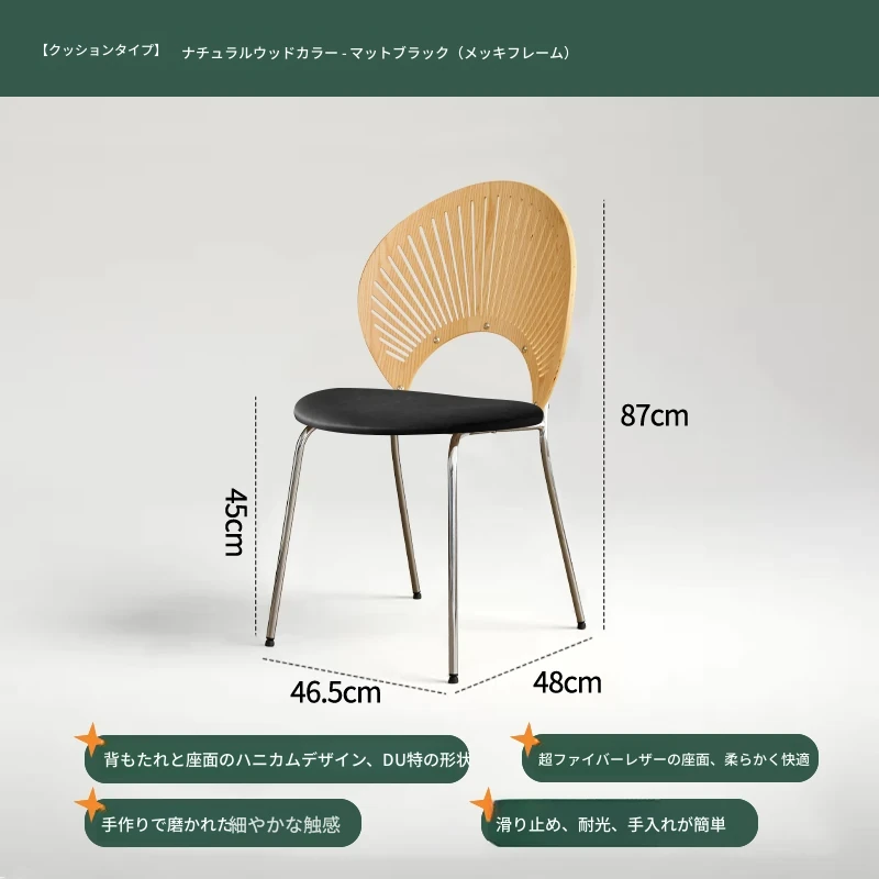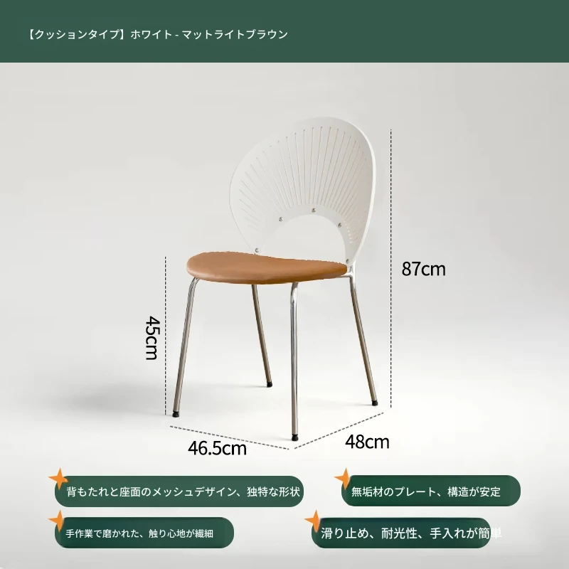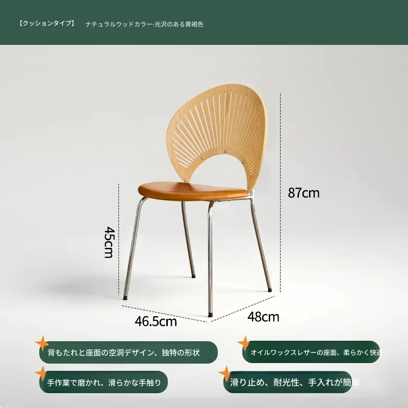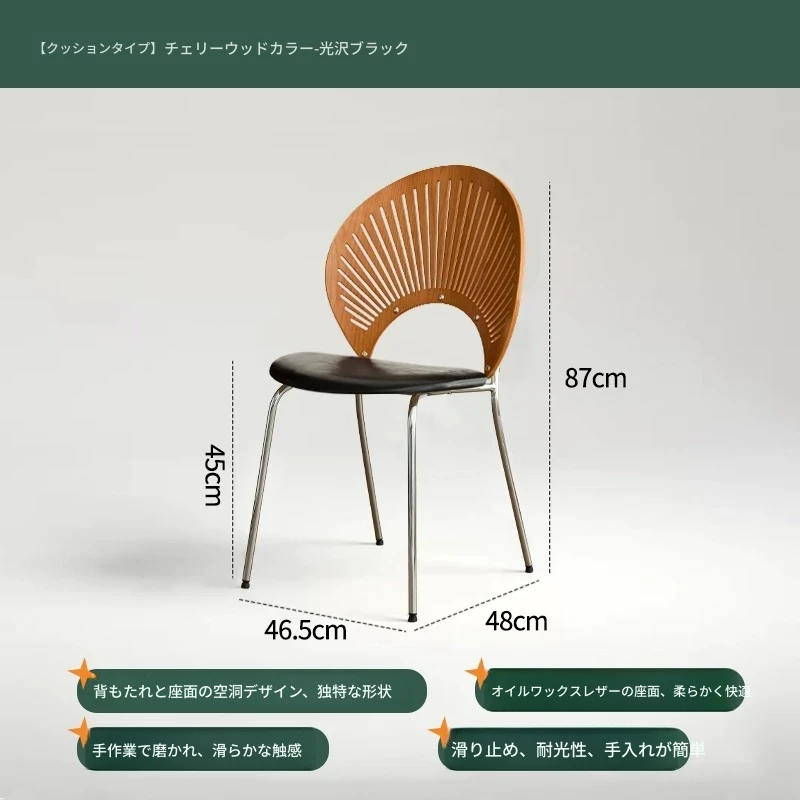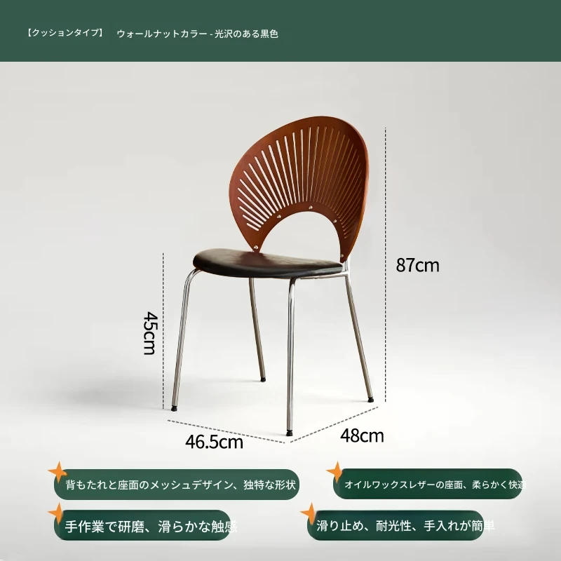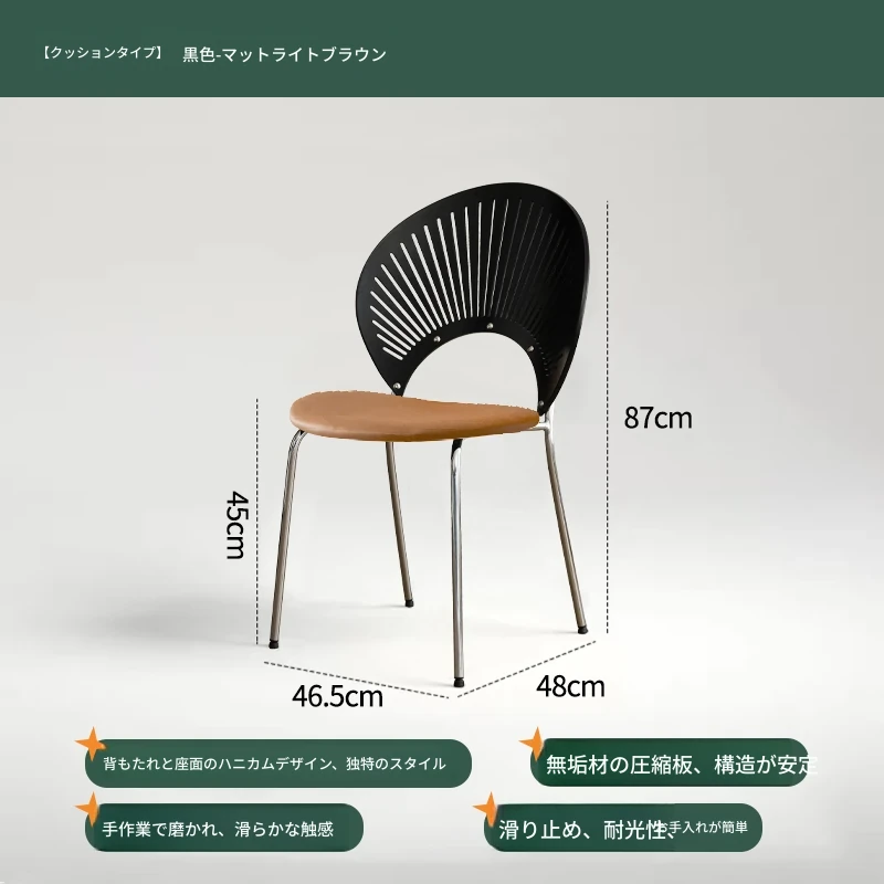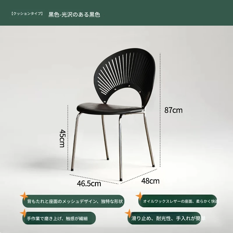 シェルチェア 家庭用 厚手ダイニングチェア シンプルな無垢材使用 商業用 アイアン製 背もたれ付き おしゃれで高級感あふれるリラックスチェア