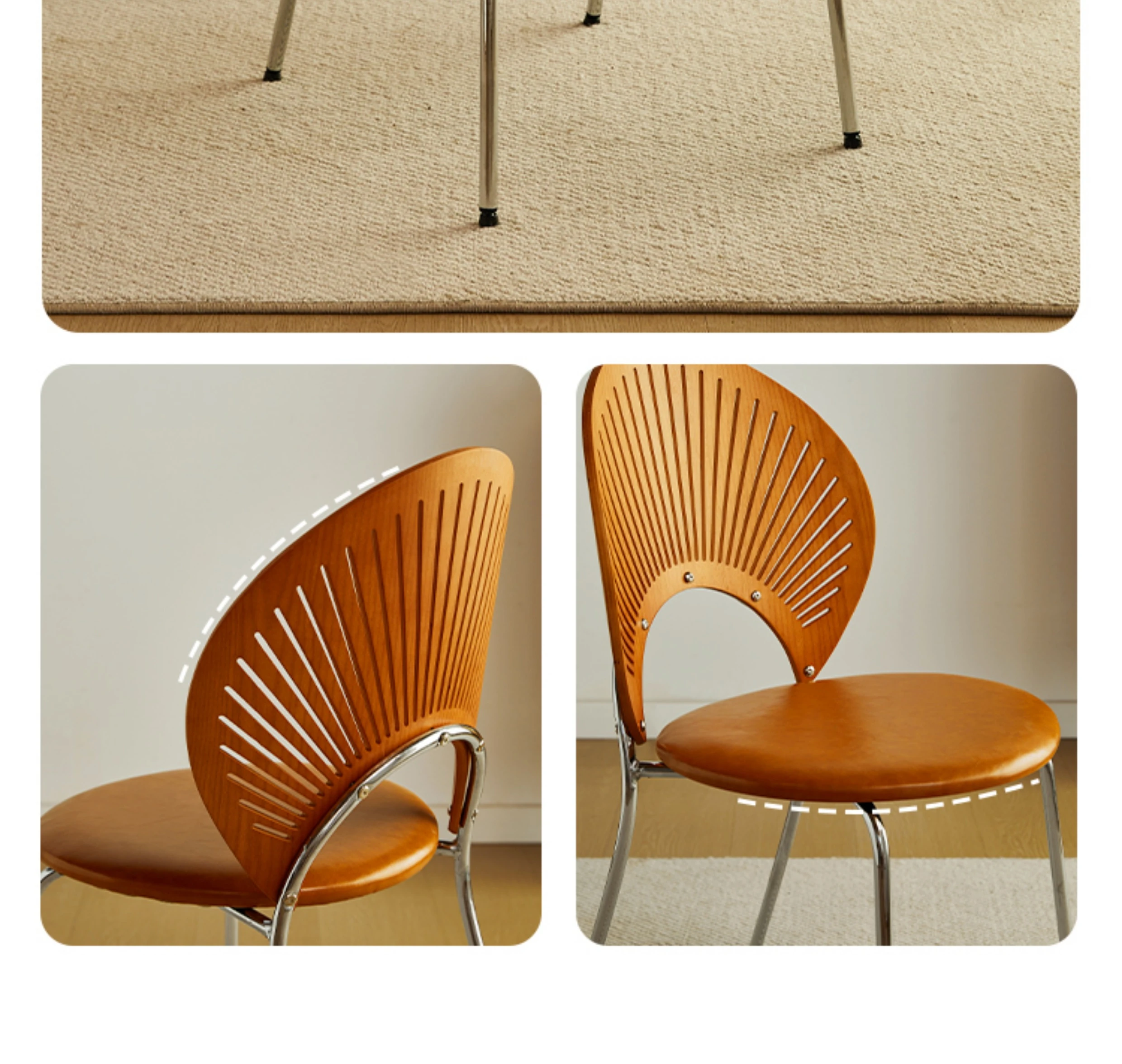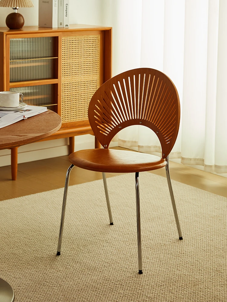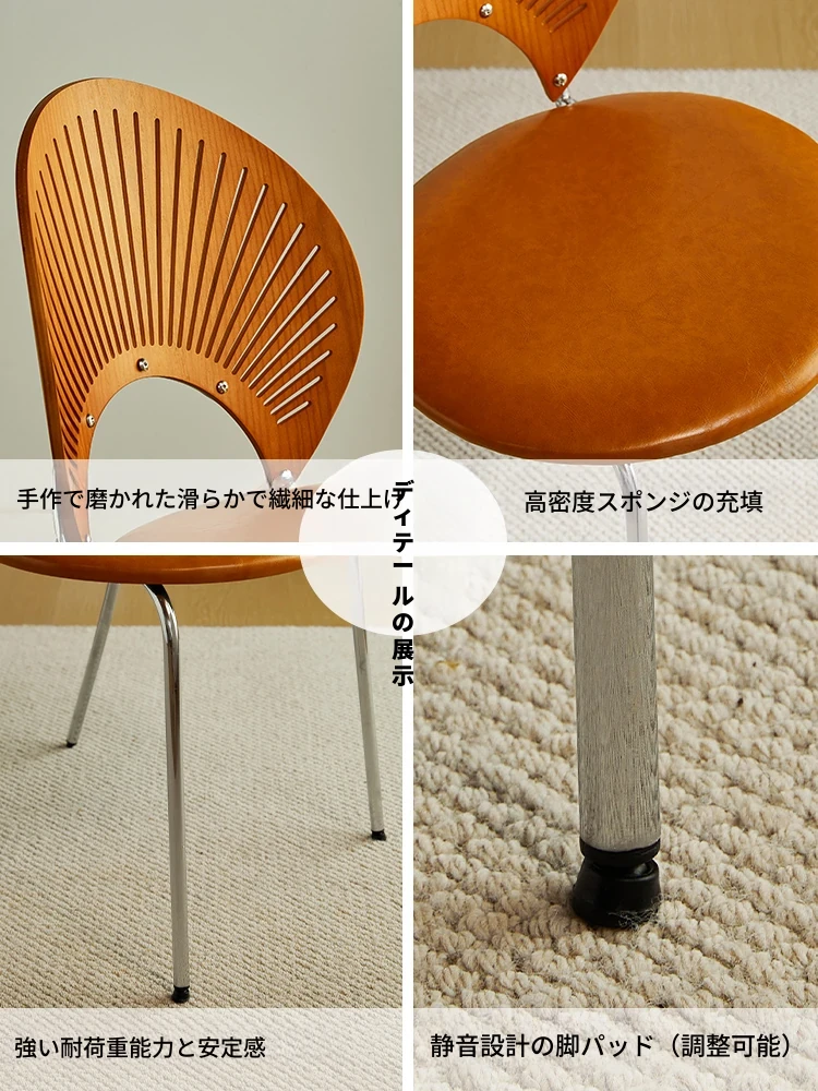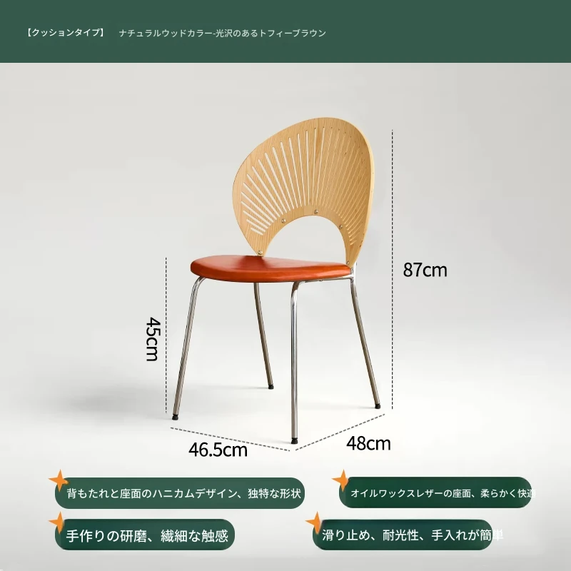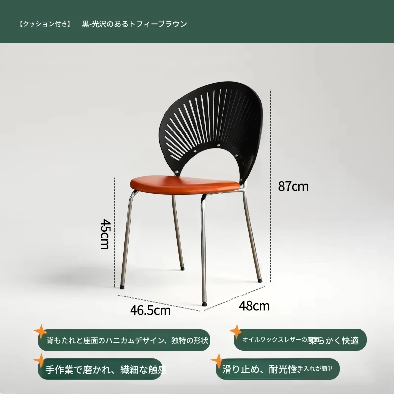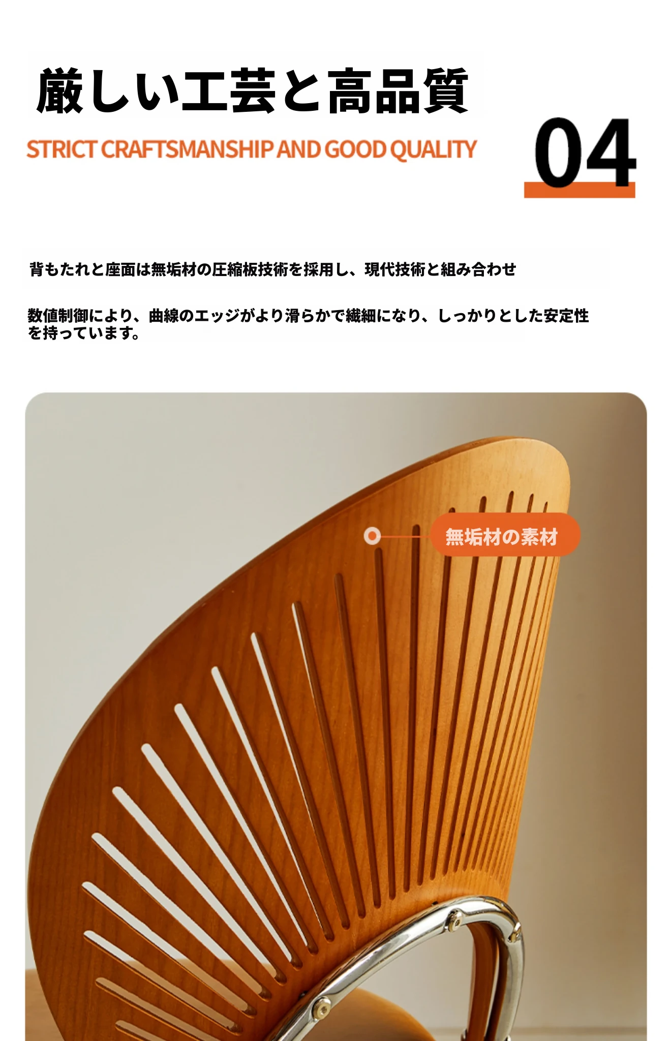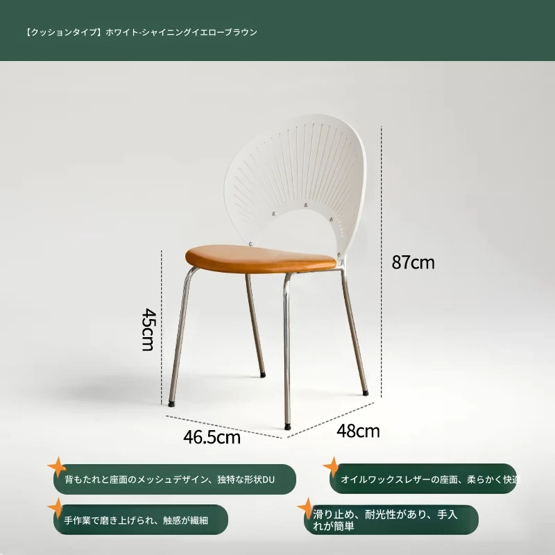 シェルチェア 家庭用 厚手ダイニングチェア シンプルな無垢材使用 商業用 アイアン製 背もたれ付き おしゃれで高級感あふれるリラックスチェア