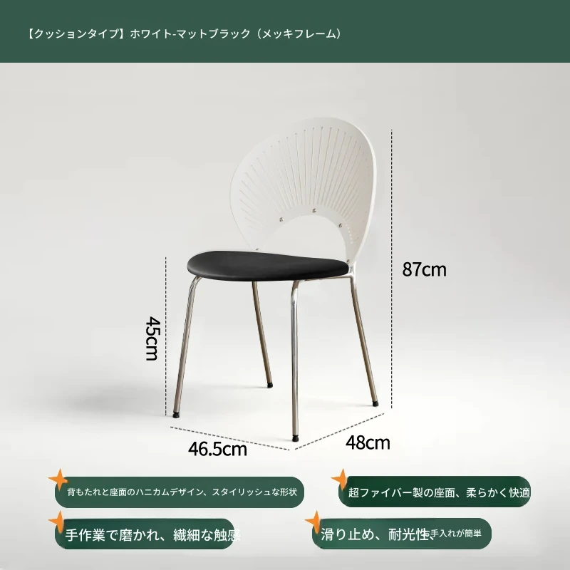 白色★光沢のある黒色クッション【メッキ椅子脚】